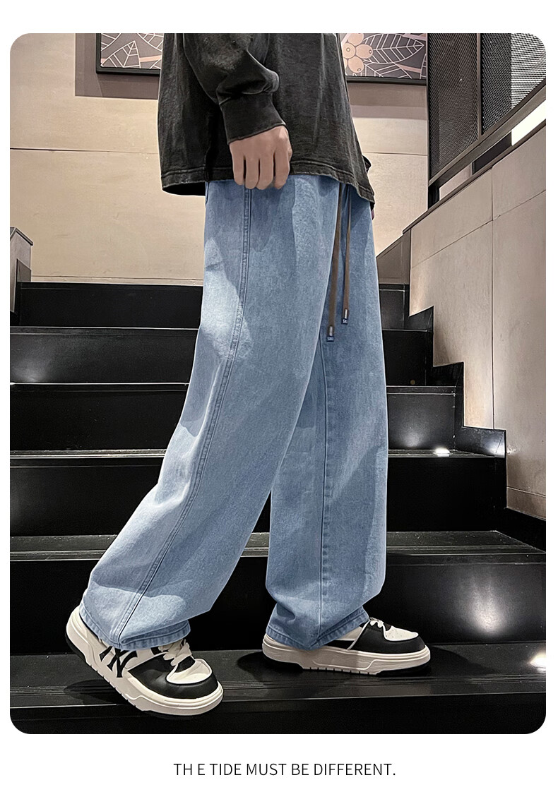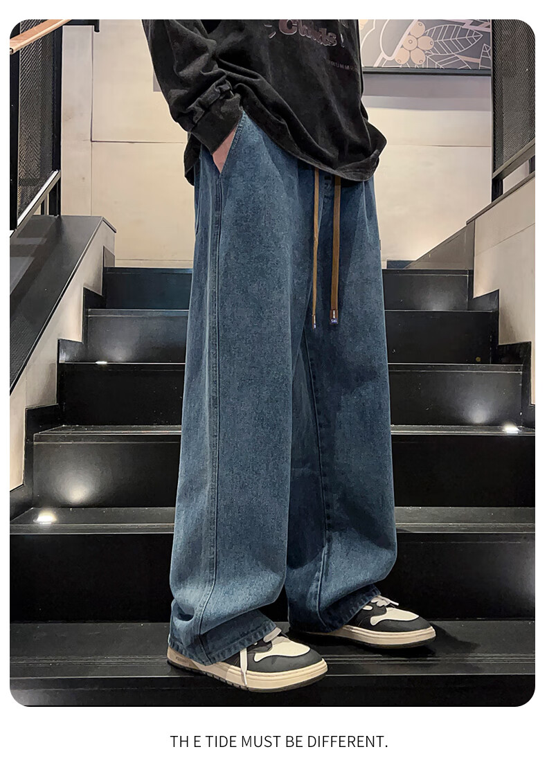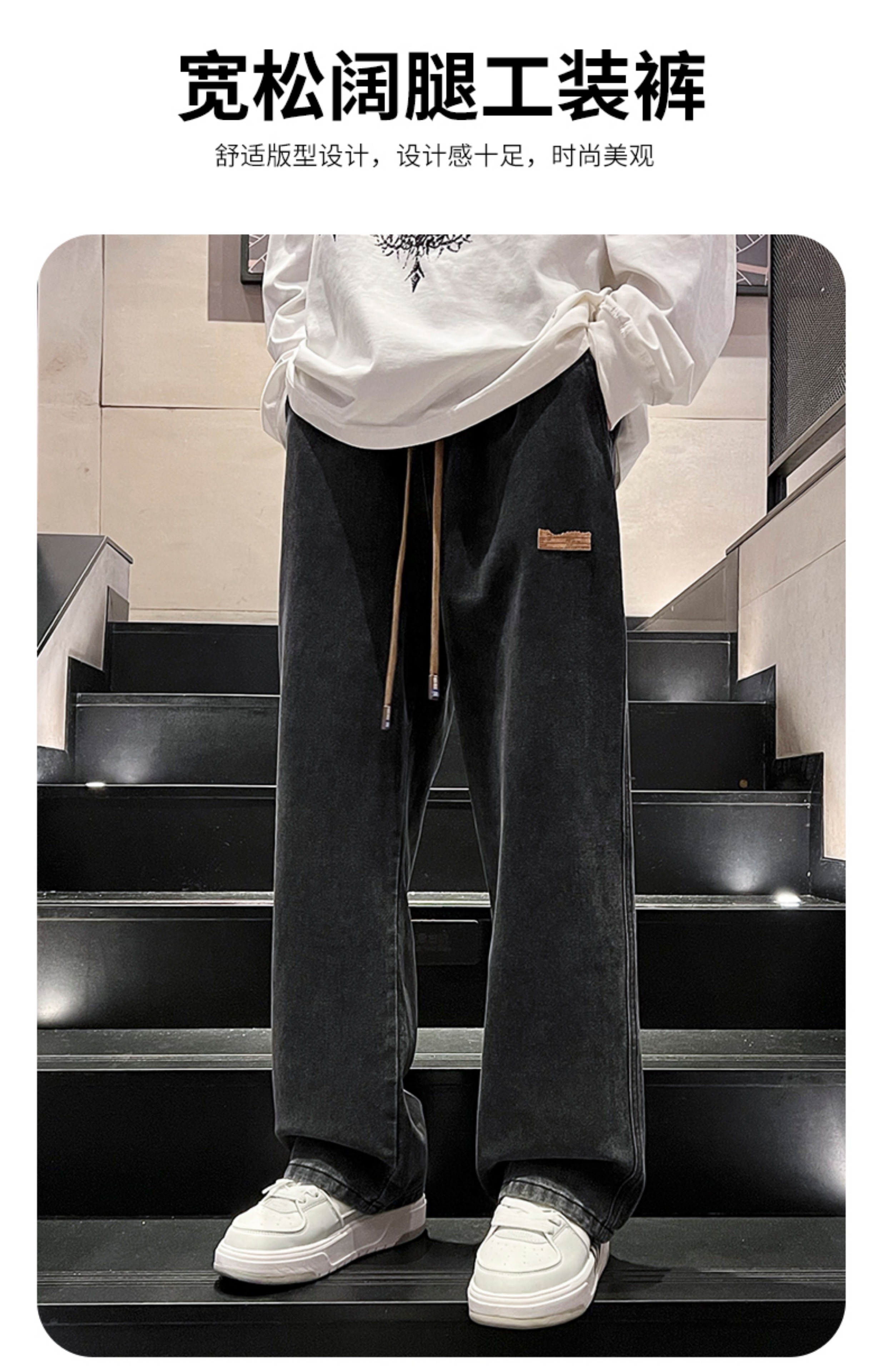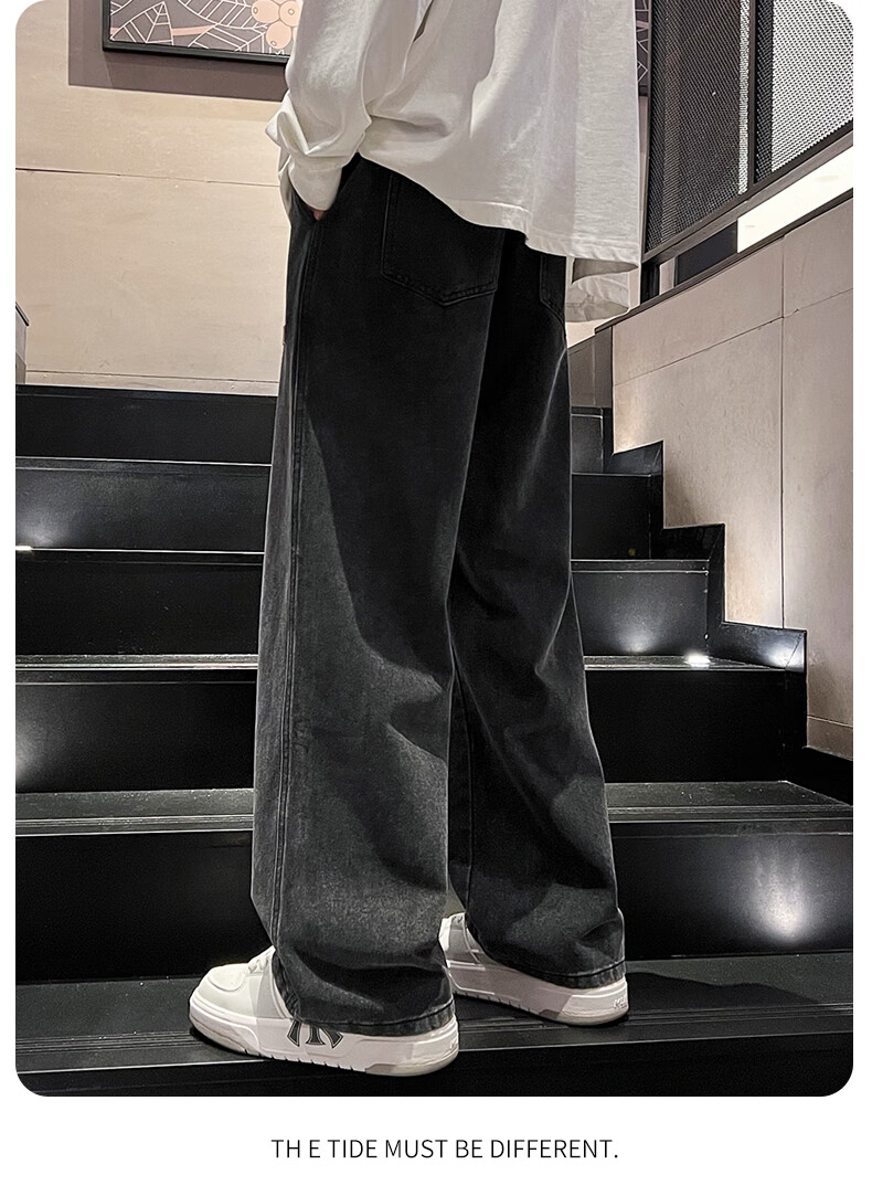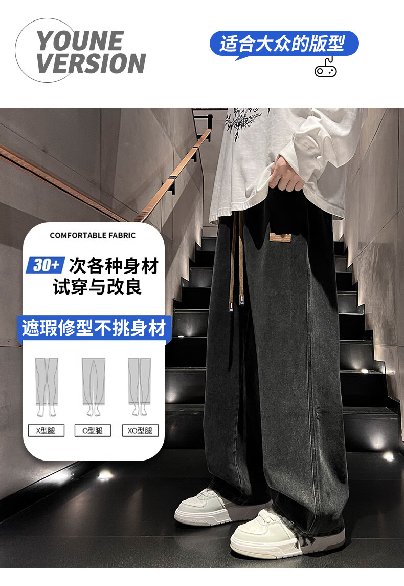 Weijue Jeans Men's New Autumn and Winter Straight Leg Loose Pants Men's Teenagers 2025 Boys' Wide Leg Casual Pants Black Gray XL Size (110Jin Jin is equal to 0.5kg -145Jin Jin is equal to 0.5kg)