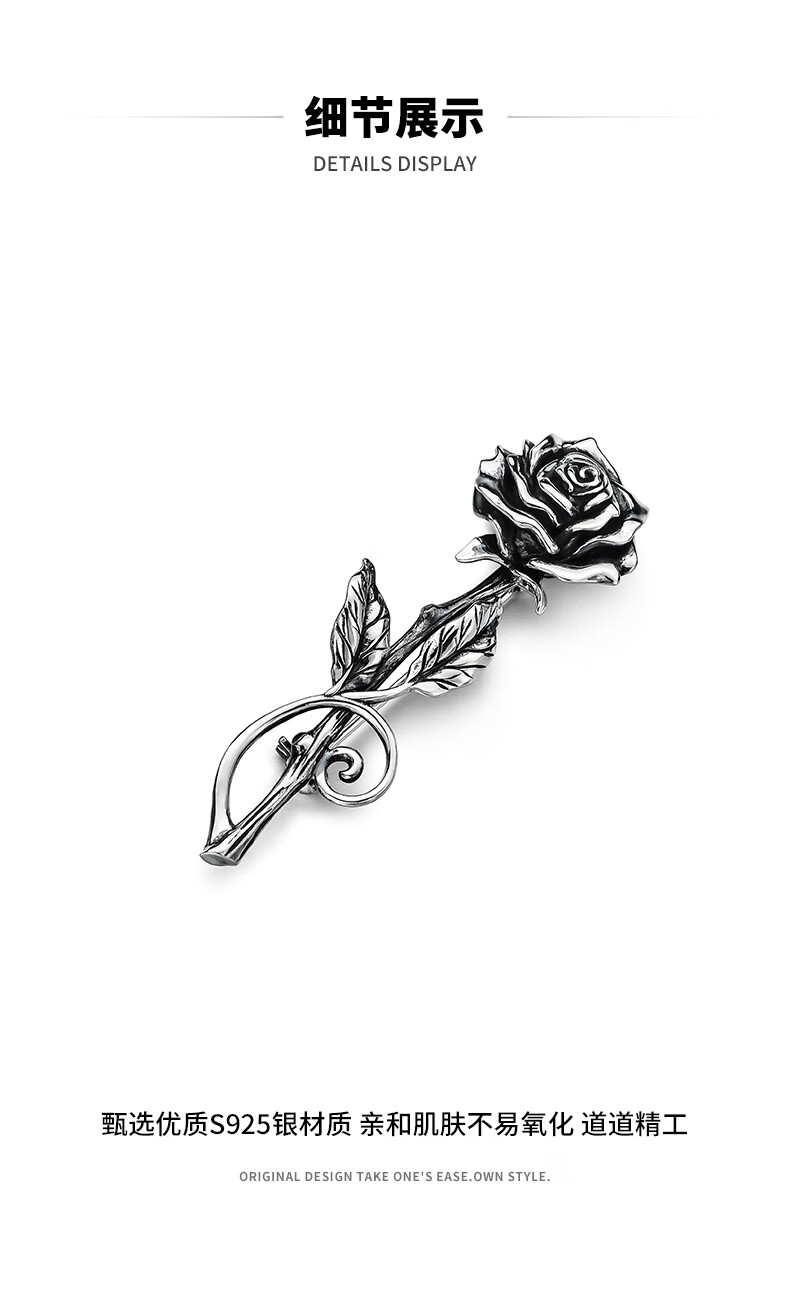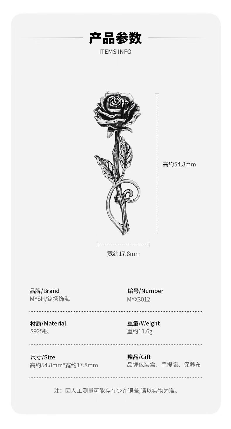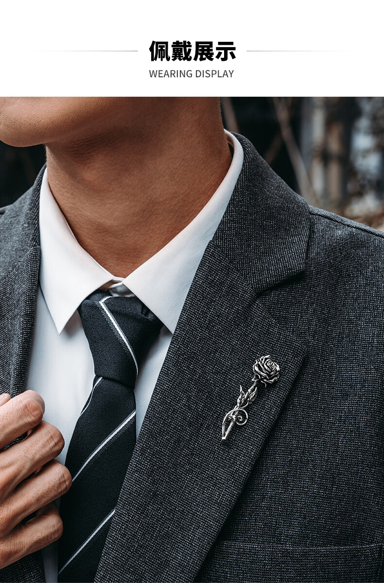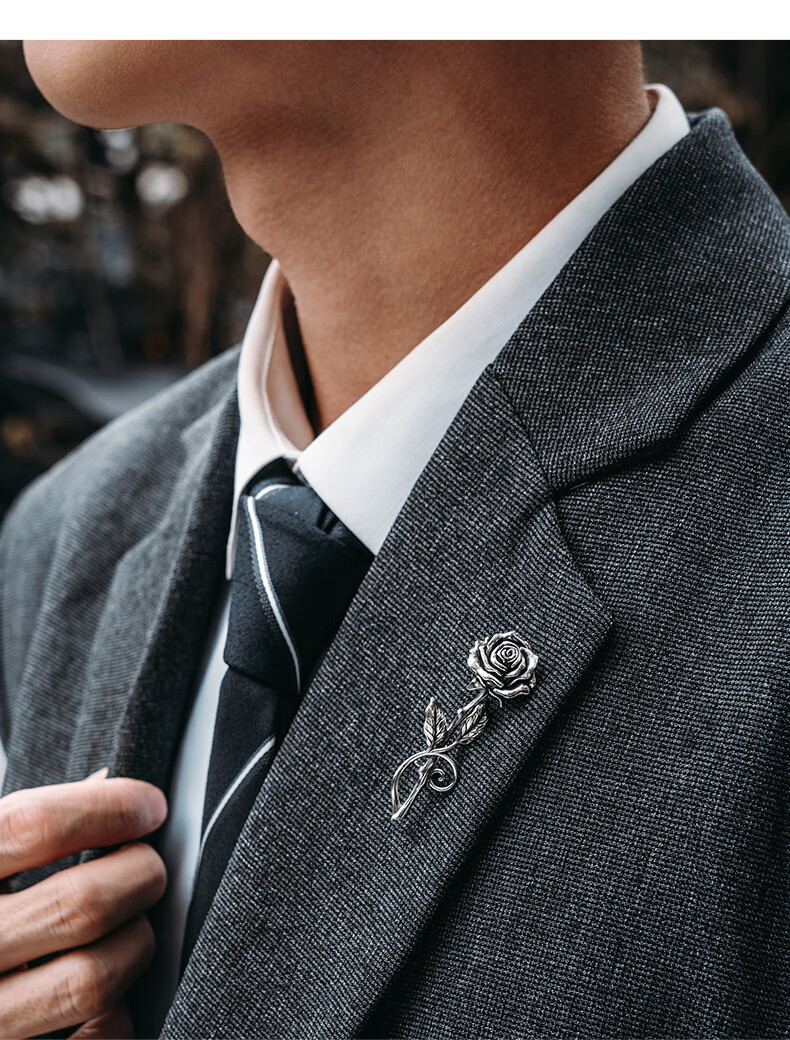 Mingyang Decorative Sea MYSH 925 silver rose brooch men's original retro high-end suit corsage pin birthday gift rose brooch + brand black gift box