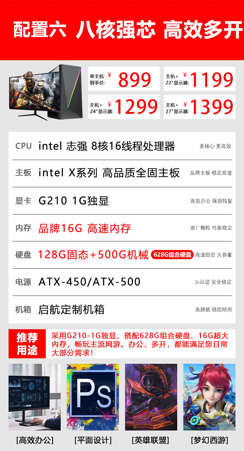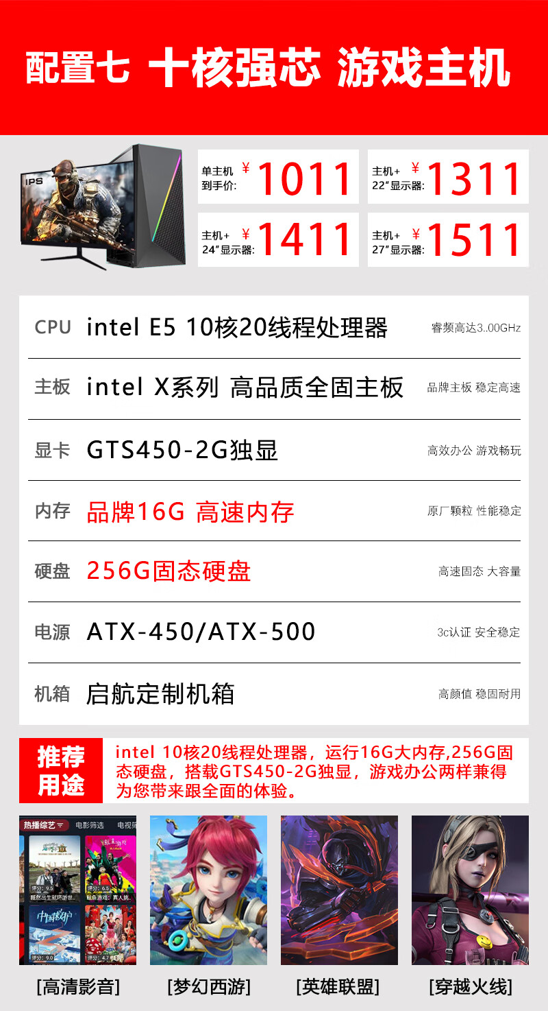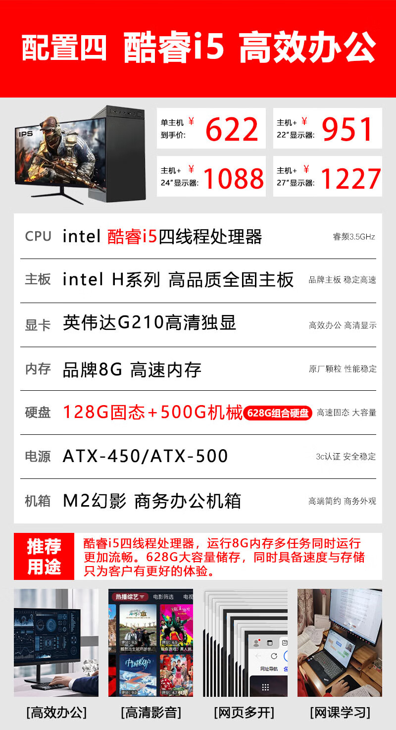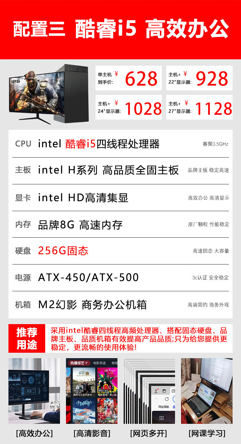 AIWNA Intel desktop computer Core I7 liter twelve core 1650 independent graphics business office design WIFI gaming e-sports desktop host three Core i5/8G memory/256G solid state single host
