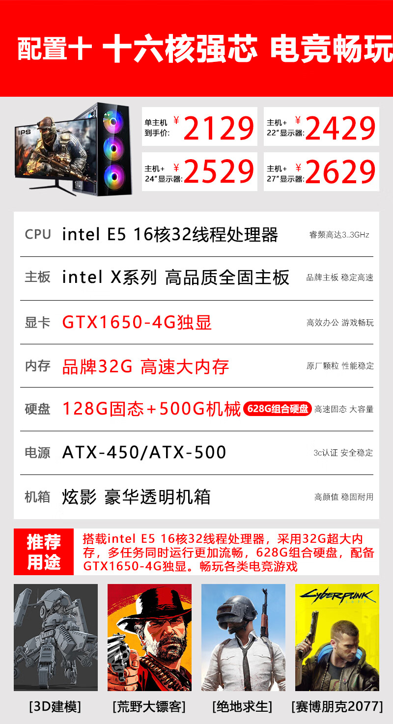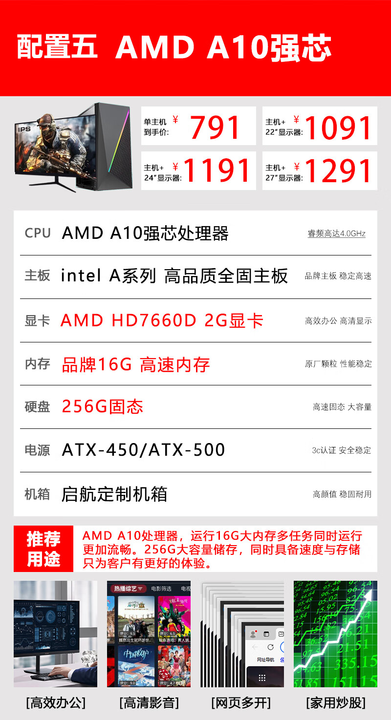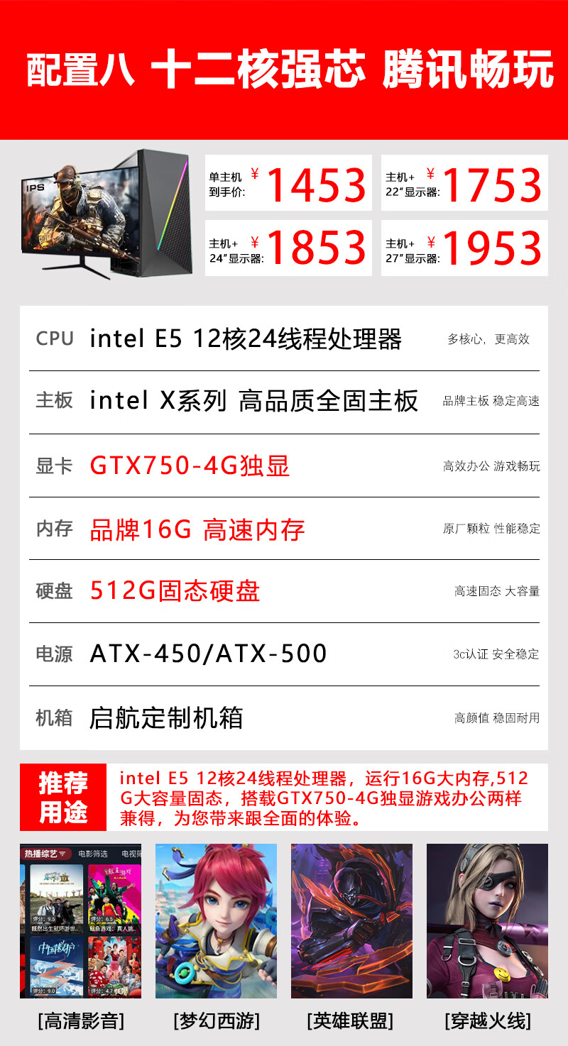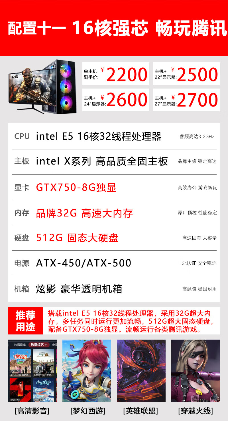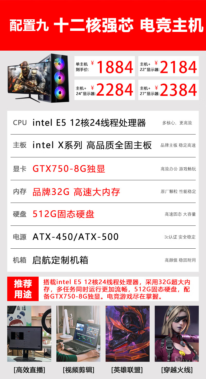 AIWNA Intel desktop computer Core I7 liter twelve core 1650 independent graphics business office design WIFI gaming e-sports desktop host three Core i5/8G memory/256G solid state single host