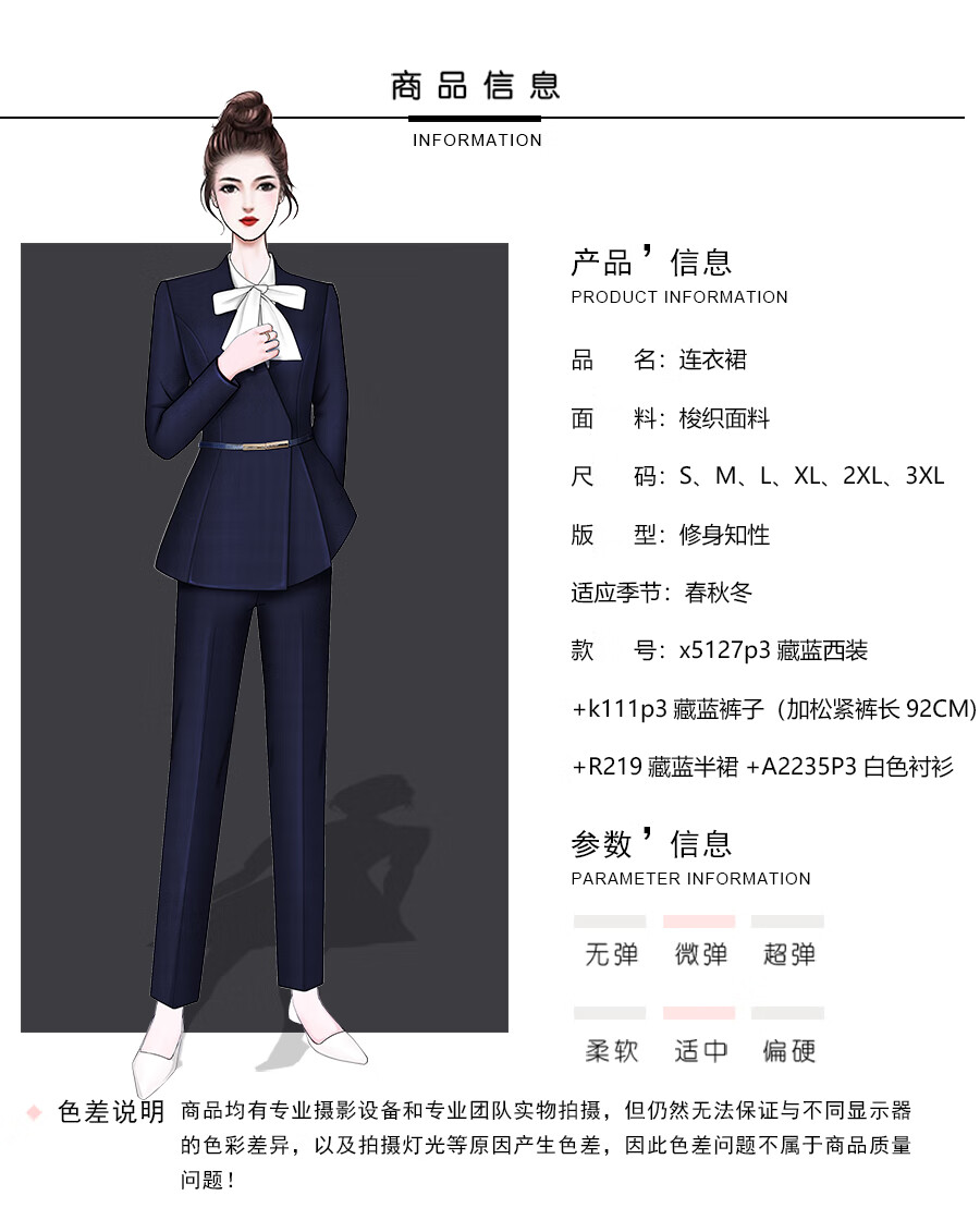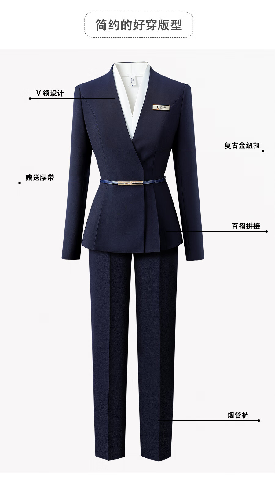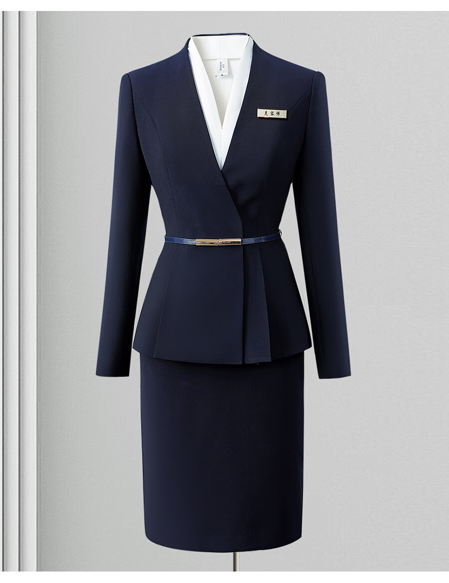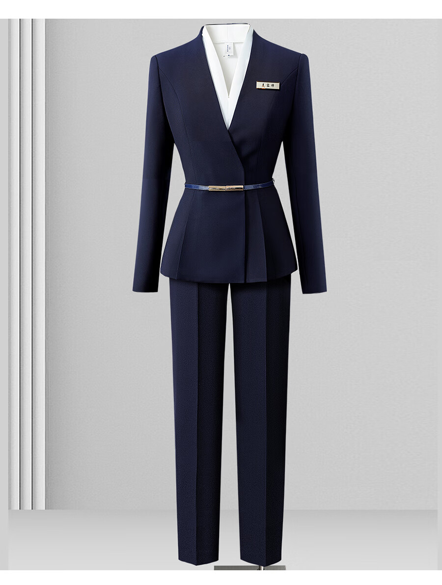 Weishipin professional wear women's suit new spring and autumn small suit temperament jewelry hotel front desk customer service work clothes suit (navy blue) suit + trousers + 403 shirt L recommended 108-117 Jin Jin equals 0.5 kg