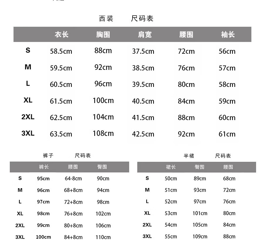 China (cm) 160-165/84-86 165-170 / 88-90 167-172 / 92-96 168-173 / 98-102 170-176 / 106-110