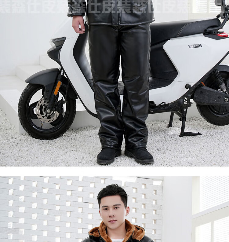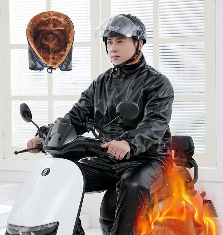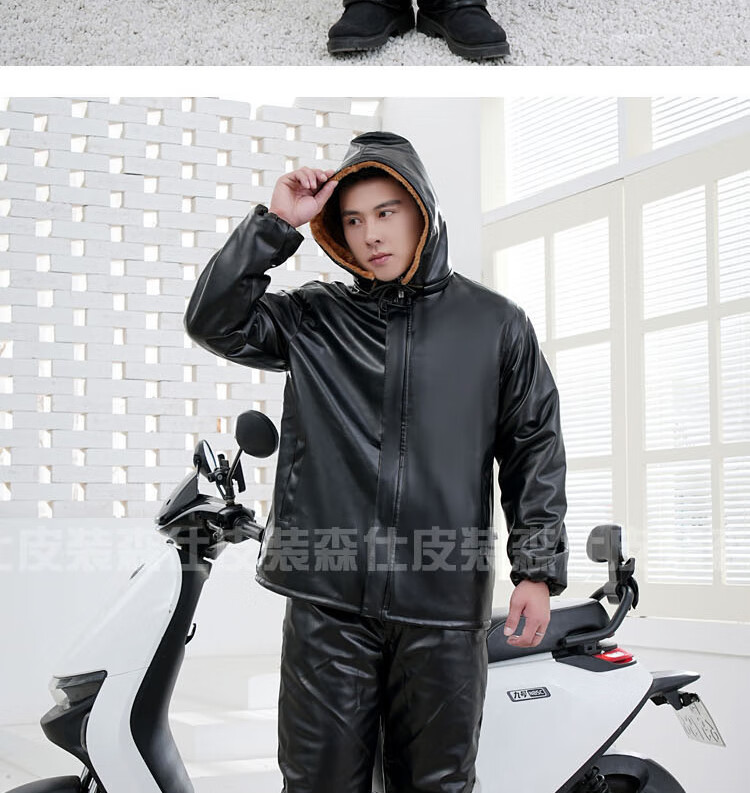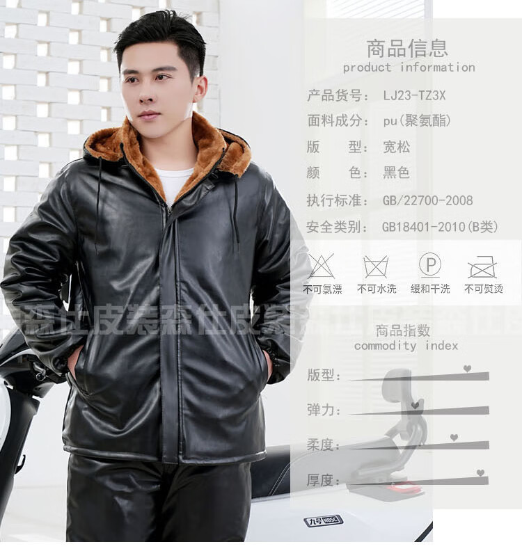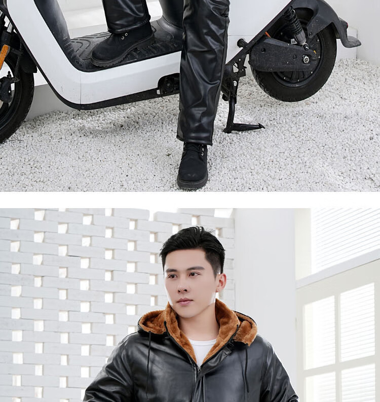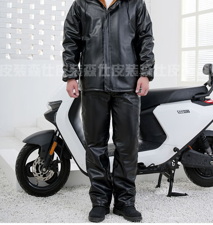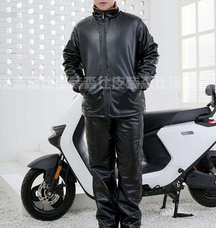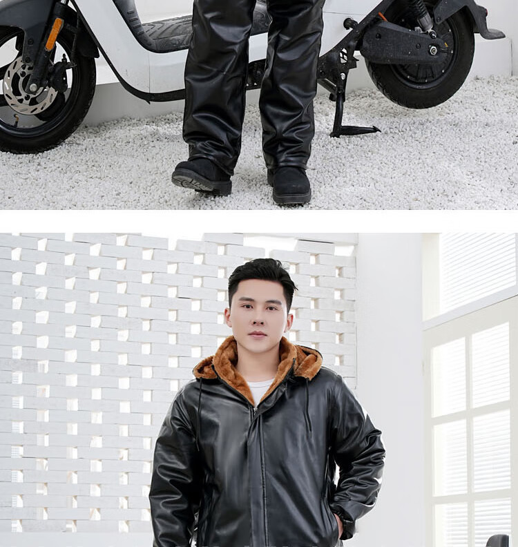 Winter thickened velvet leather jacket for driving, windproof and warm leather suit for men, loose leather pants, cold-proof leather cotton jacket, thickened suit/removable hood leather jacket * elastic waist leather pants, 3XL medium size 140-165Jin Jin is equal to 0.5kg