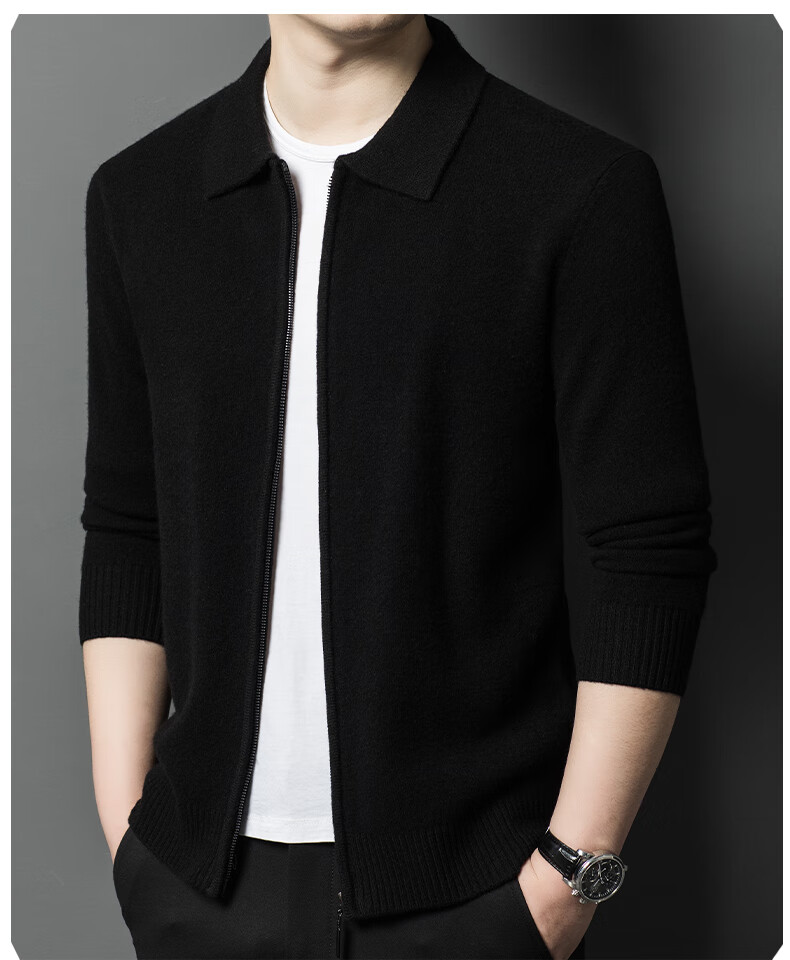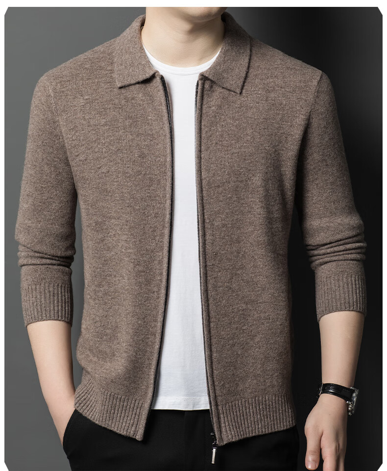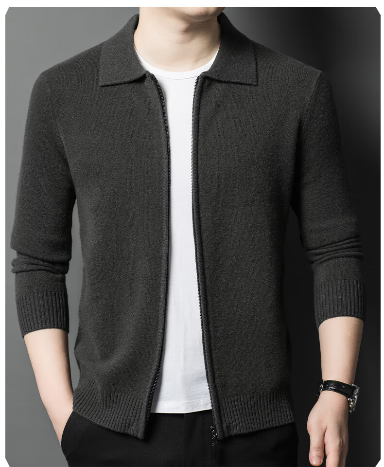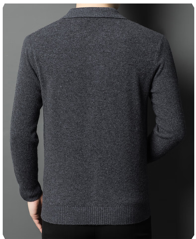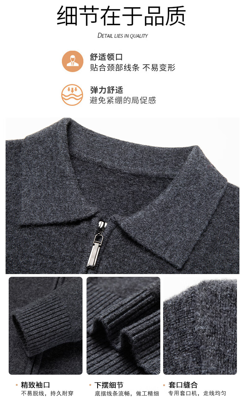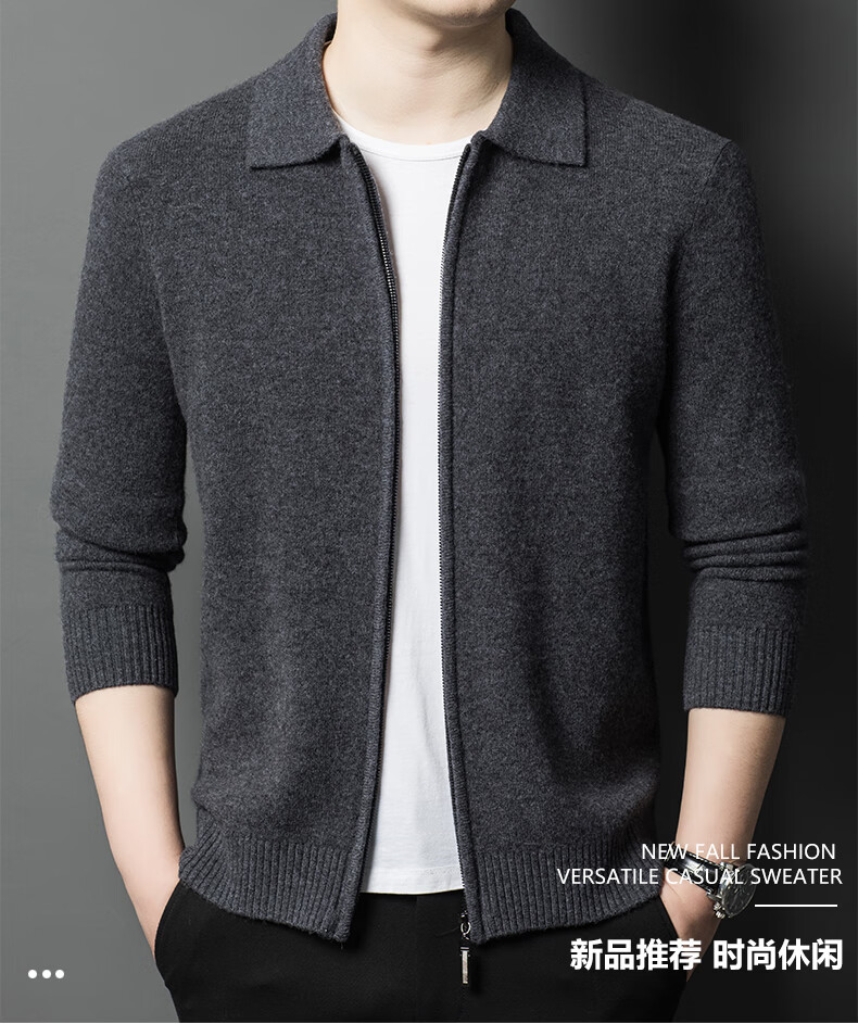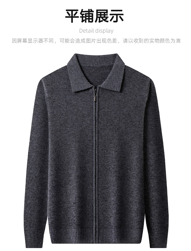 Hengyuanxiang men's premium 100% pure wool coat lapel zipper cardigan middle-aged winter thickened wool sweater 3301 medium gray - lapel 170/L 120-140Jin Jin equals 0.5 kg