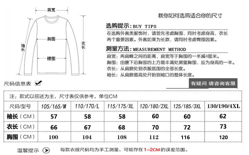 China (cm) 165 / 88-90 170 / 96-98 175 / 108-110 180 / 118-122 185 / 126-130