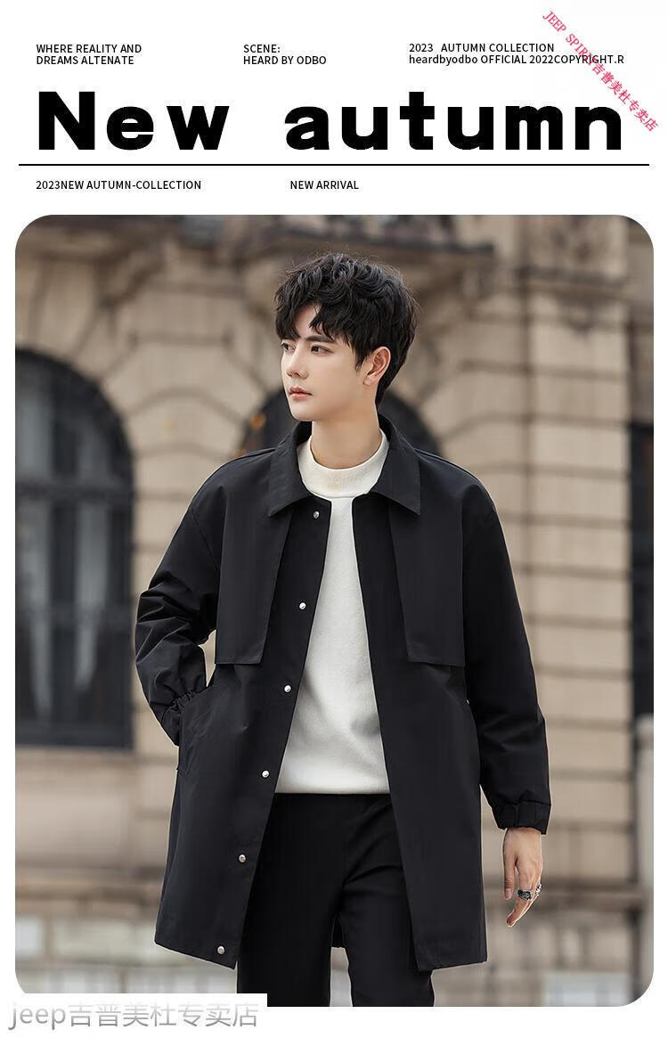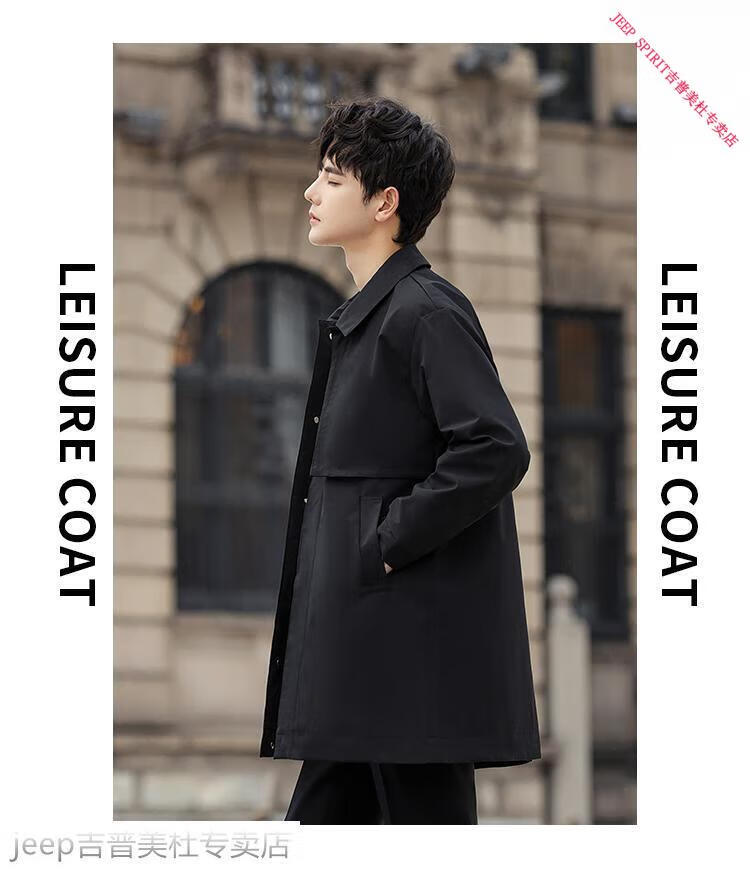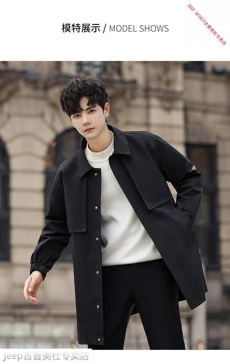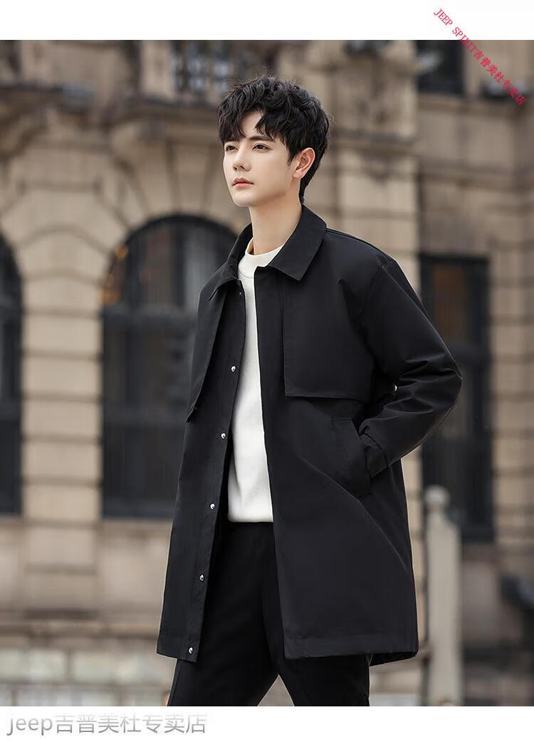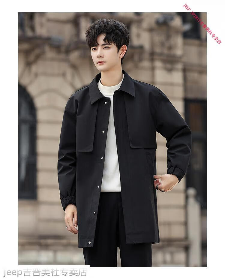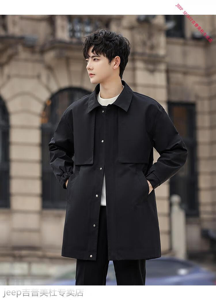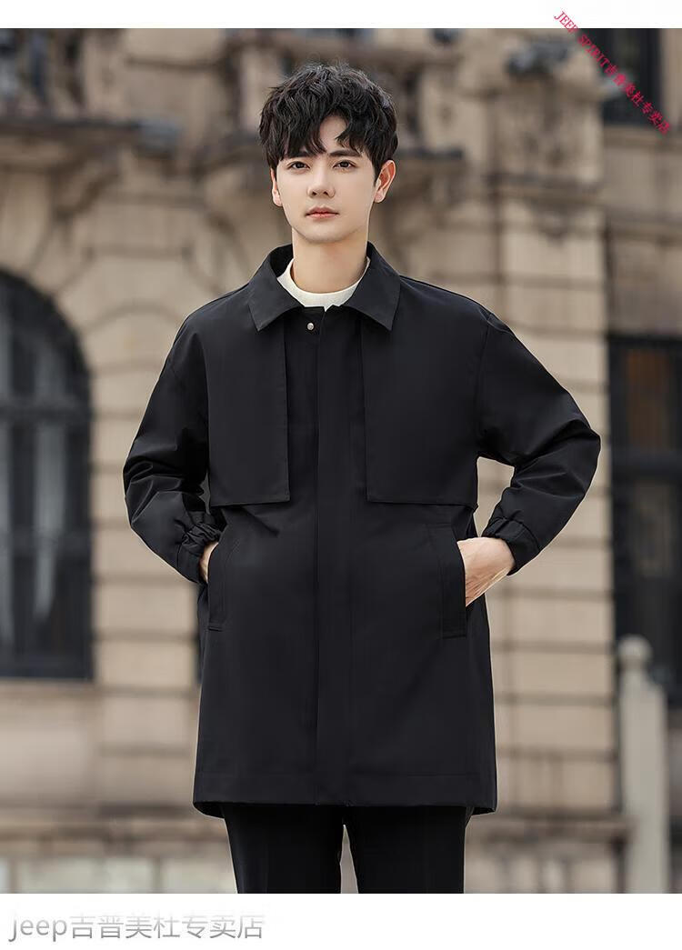 JEEP SPIRIT Jeep Lapel Windbreaker Jacket Men's Mid-Length 2025 Autumn and Winter Advanced Design Simple Versatile Casual Men's Clothing Black XL (140-160Jin Jin equals 0.5kg)