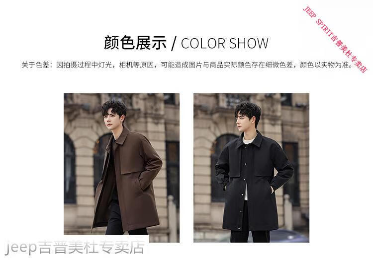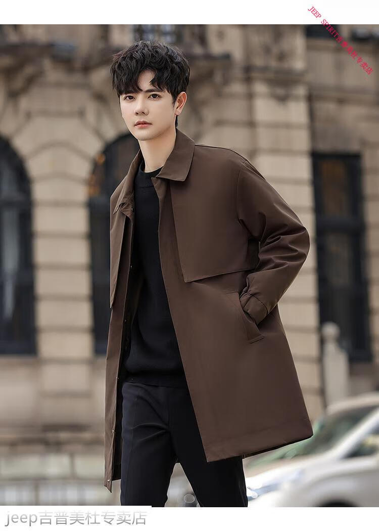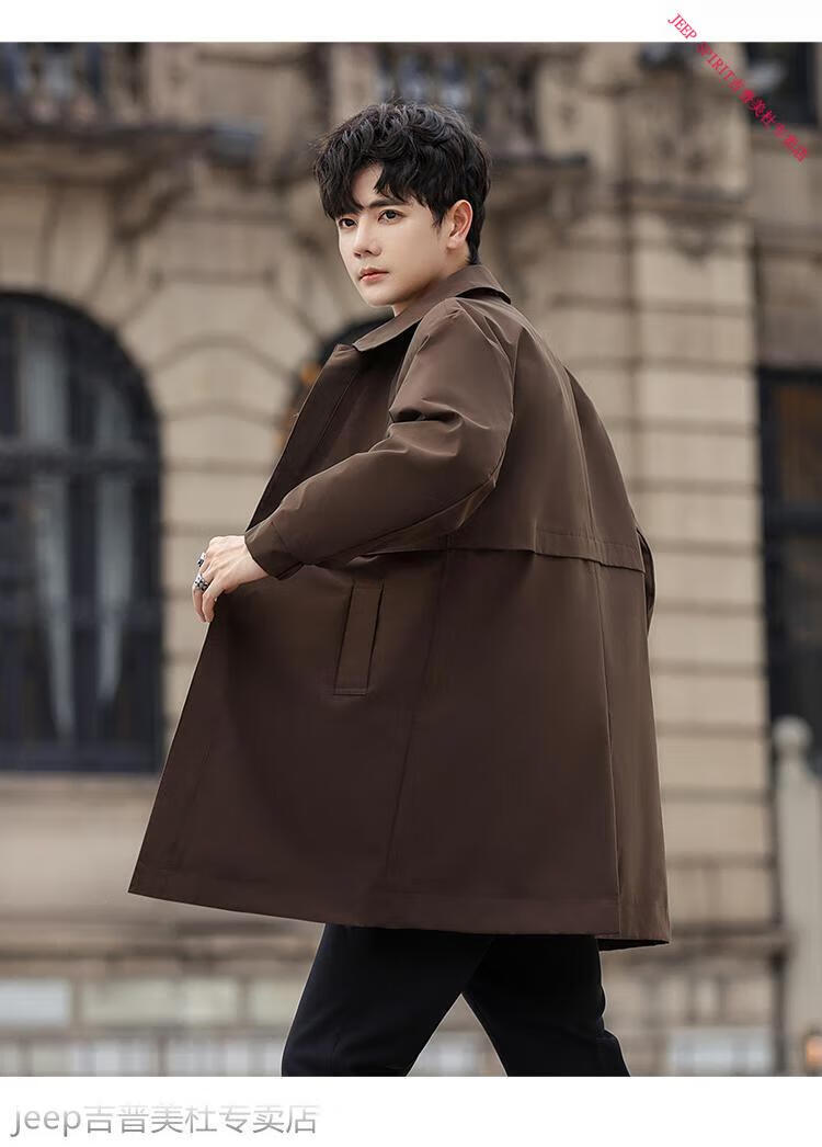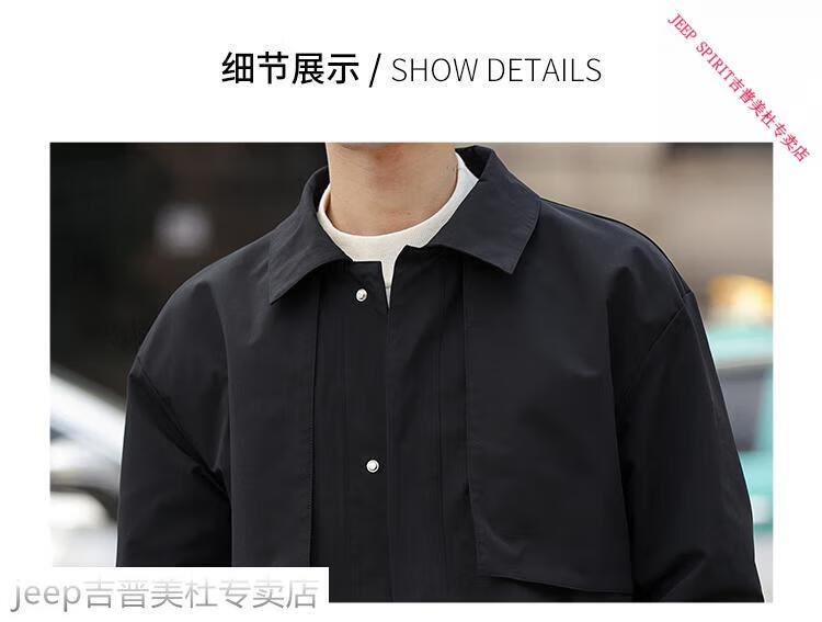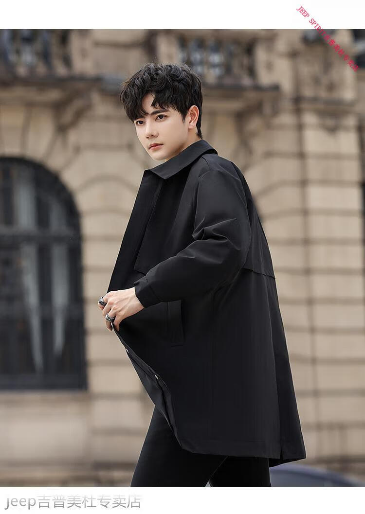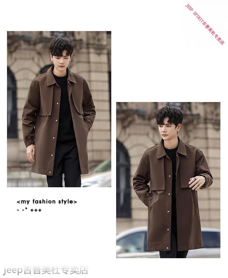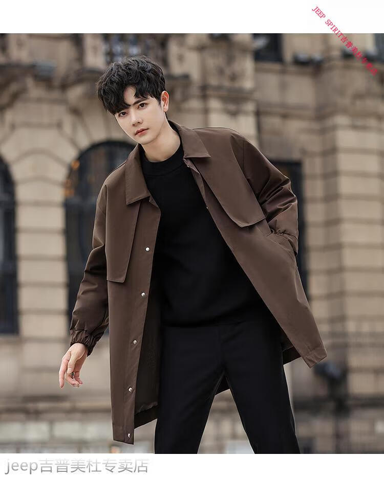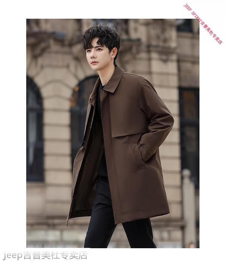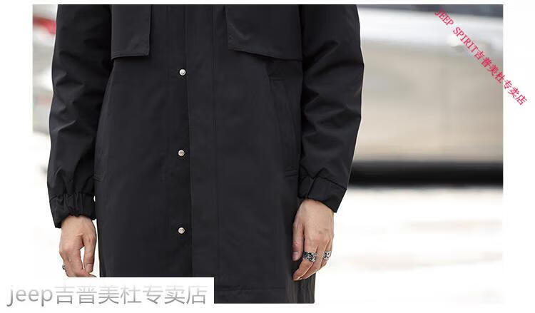 JEEP SPIRIT Jeep Lapel Windbreaker Jacket Men's Mid-Length 2025 Autumn and Winter Advanced Design Simple Versatile Casual Men's Clothing Black XL (140-160Jin Jin equals 0.5kg)