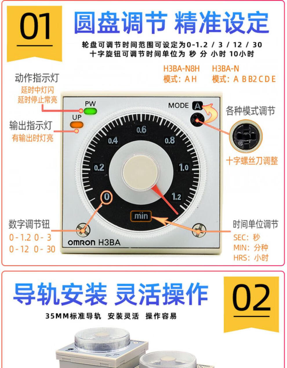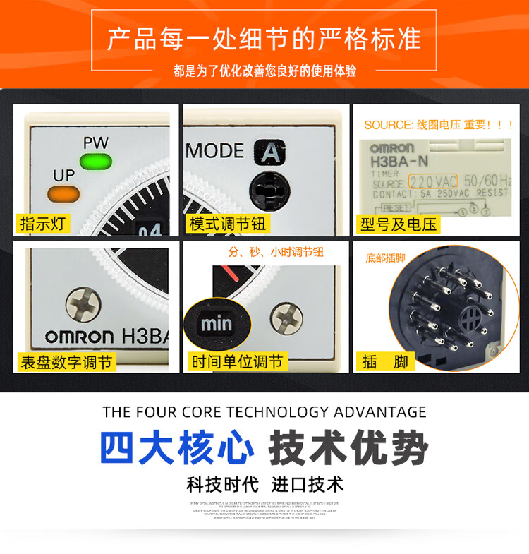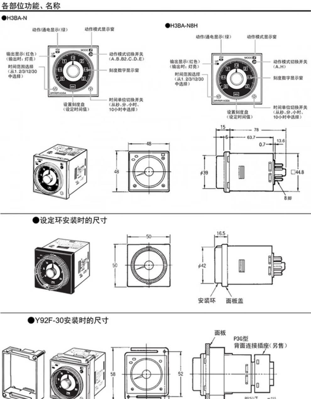 Time relay H3BA-N-N8H power-on delay control DC24V AC220V 8-pin 11-pin panel mounting 8-pin base P3G-08