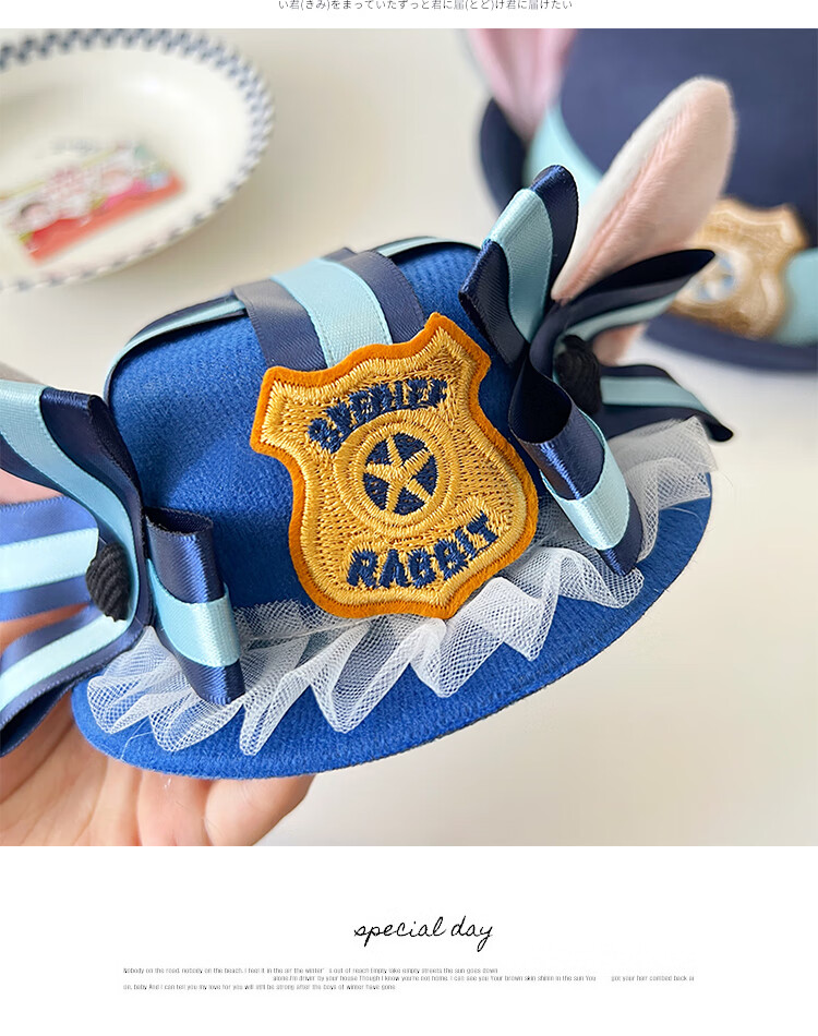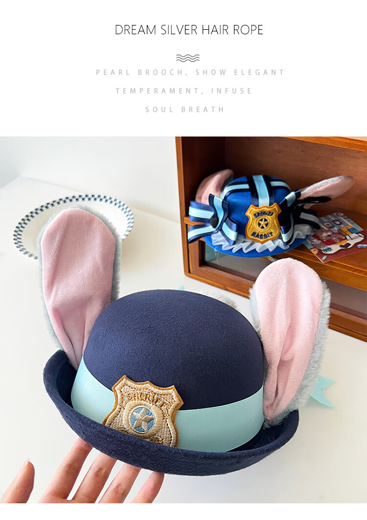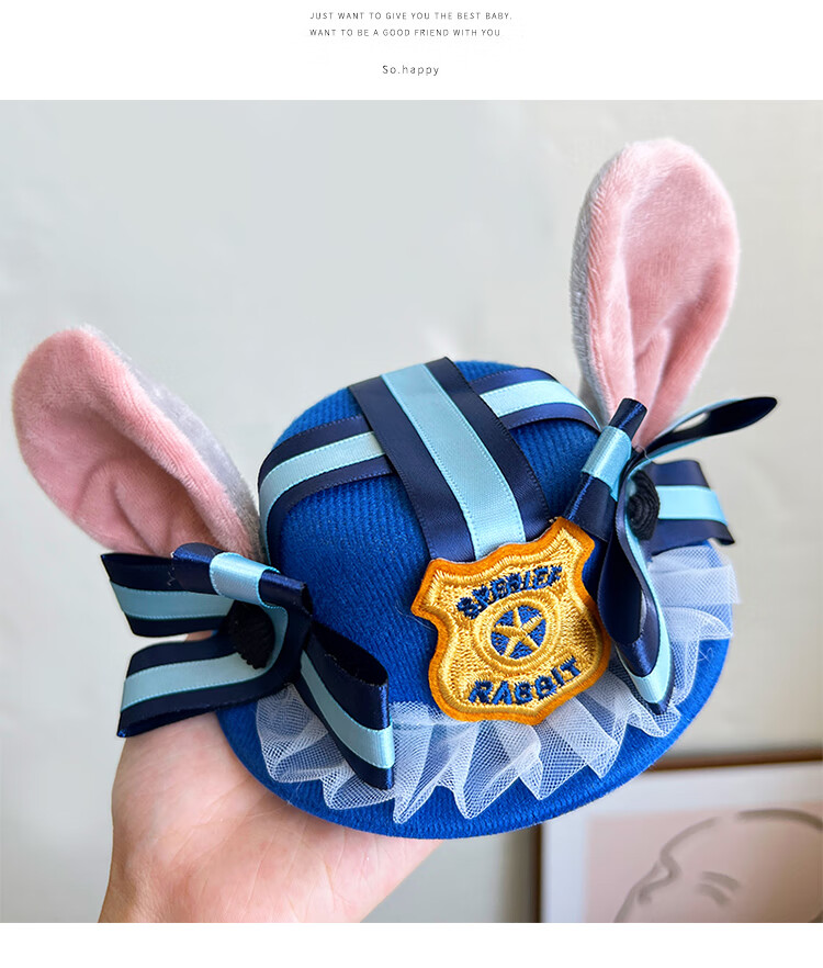 Yan Fangnuo Judy Hat cosplay Rabbit Judy Crazy Animal Headdress Rabbit Police Officer Children's Ear Hat Judy Rabbit 54~57CM Hat
