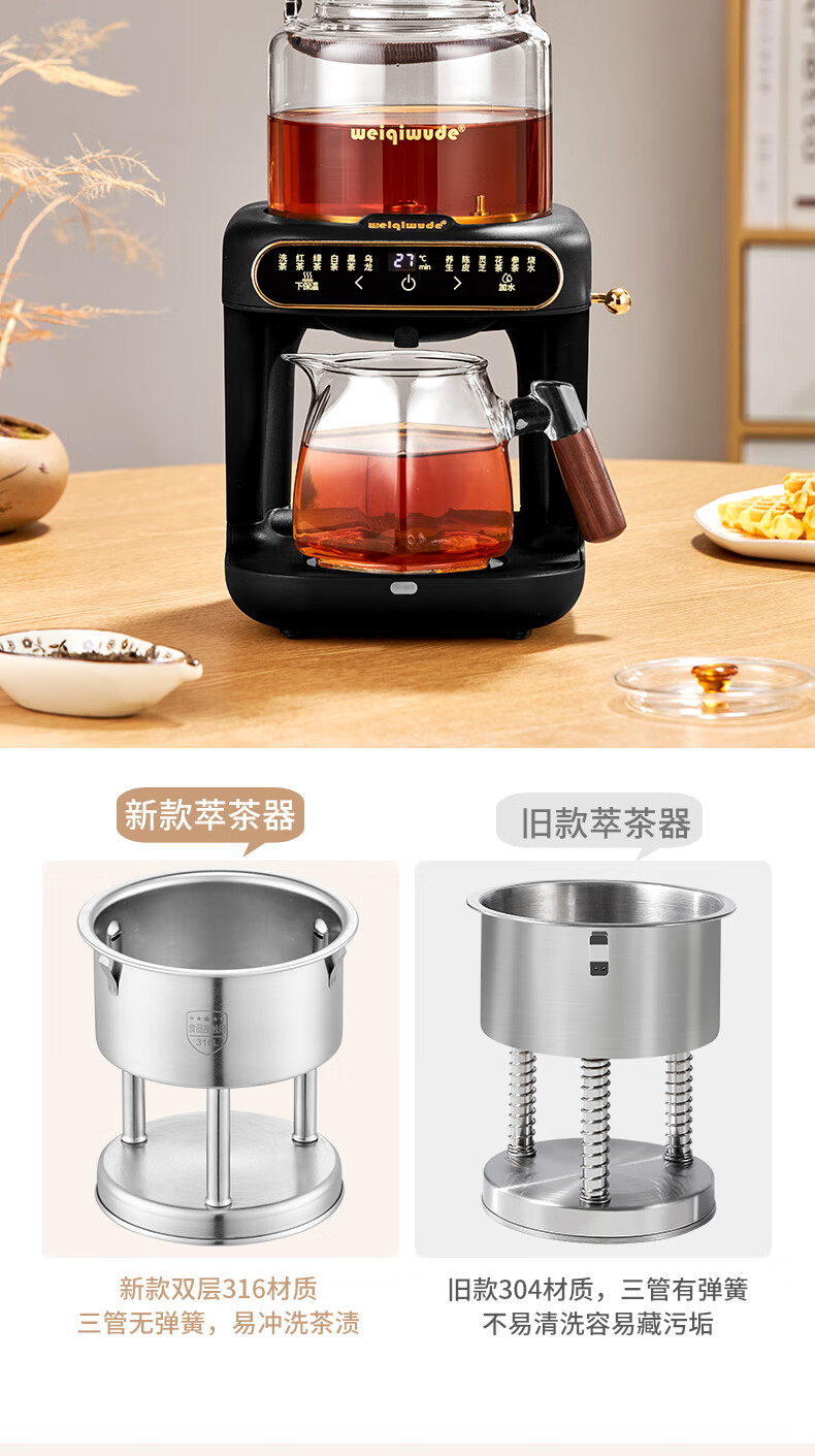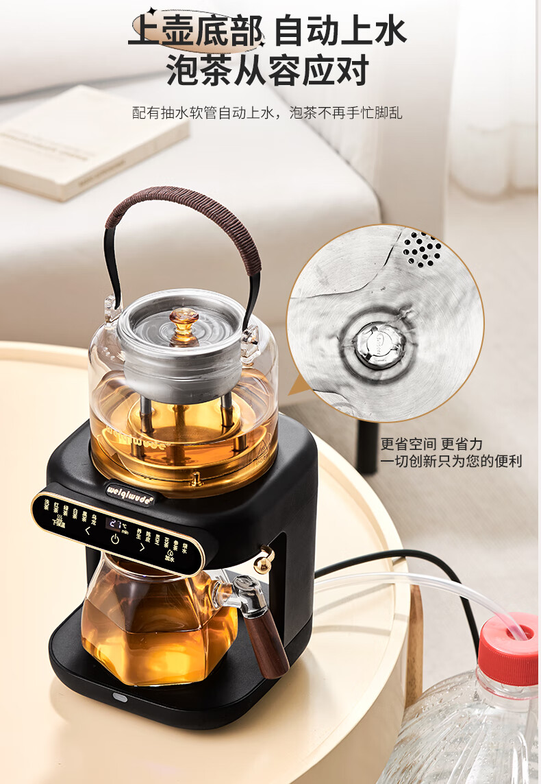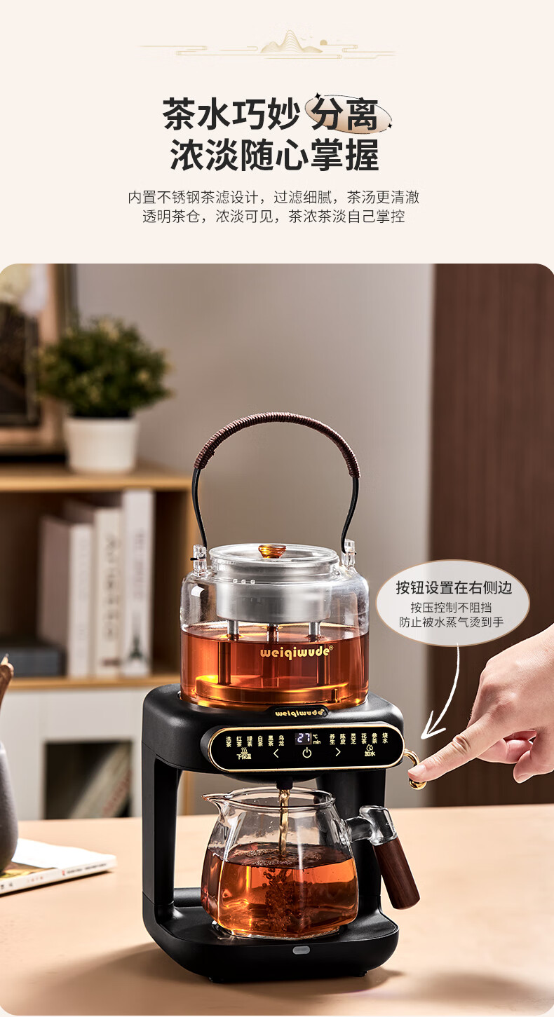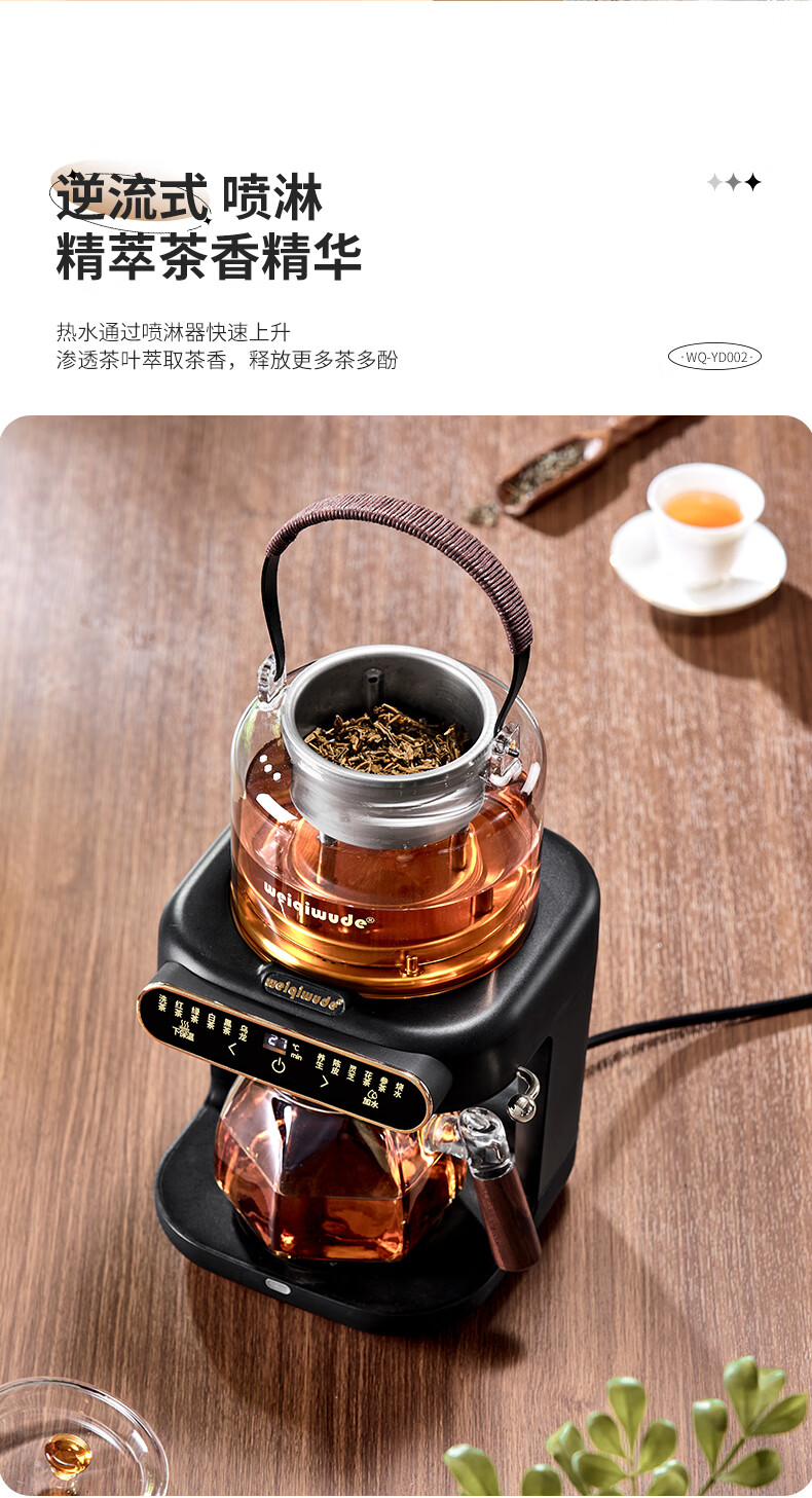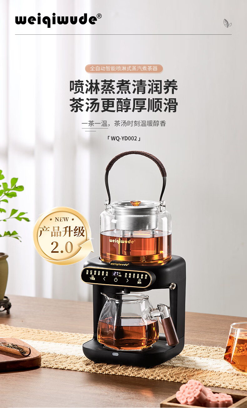WEIQIWUDE teapot black tea teapot spray steaming teapot fully automatic water filling thickened glass scented tea health pot electric boiling water electric teapot 316 material black 0.6L