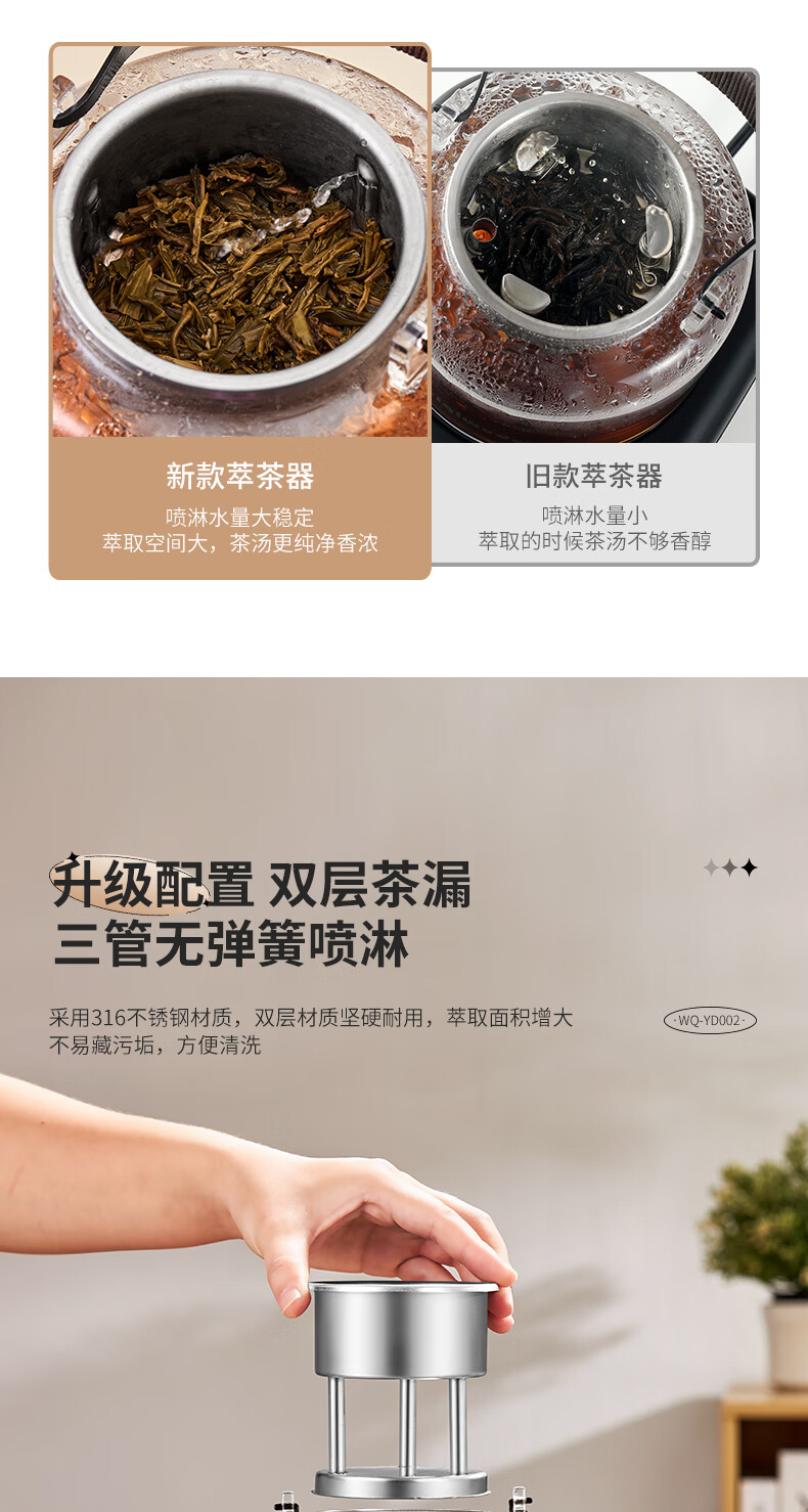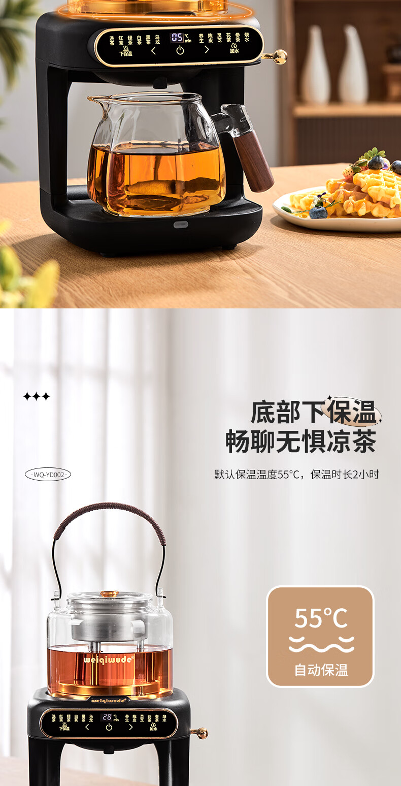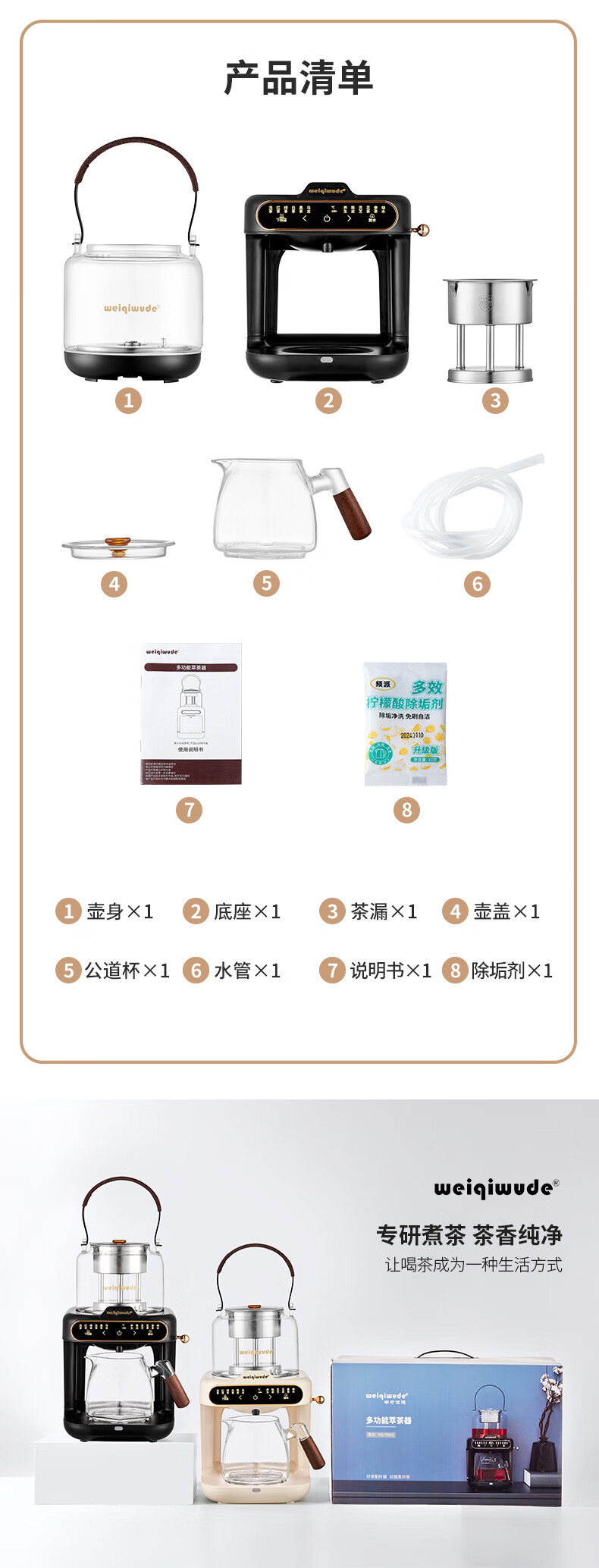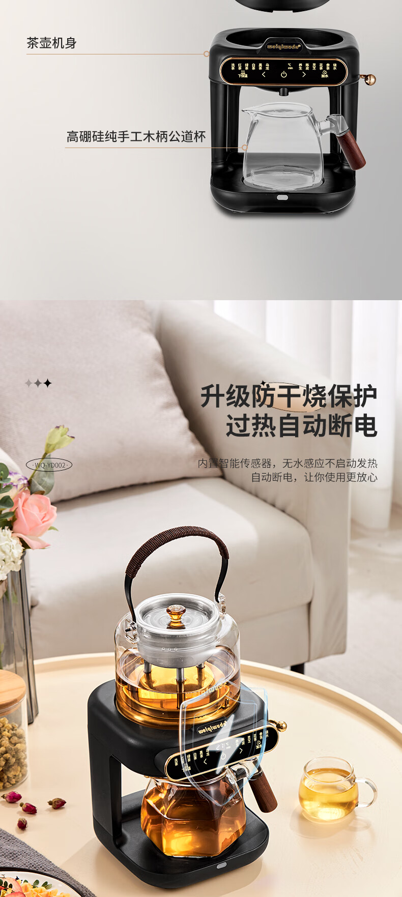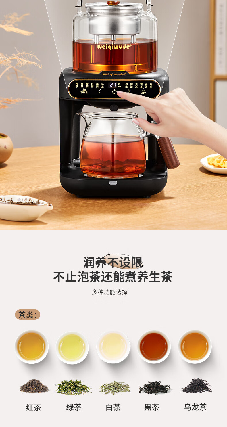 WEIQIWUDE teapot black tea teapot spray steaming teapot fully automatic water filling thickened glass scented tea health pot electric boiling water electric teapot 316 material black 0.6L