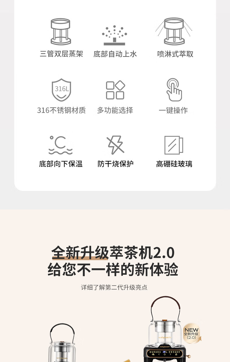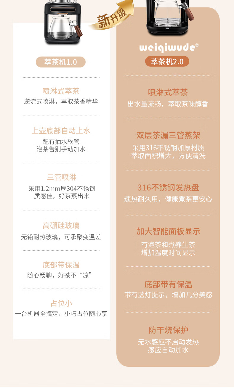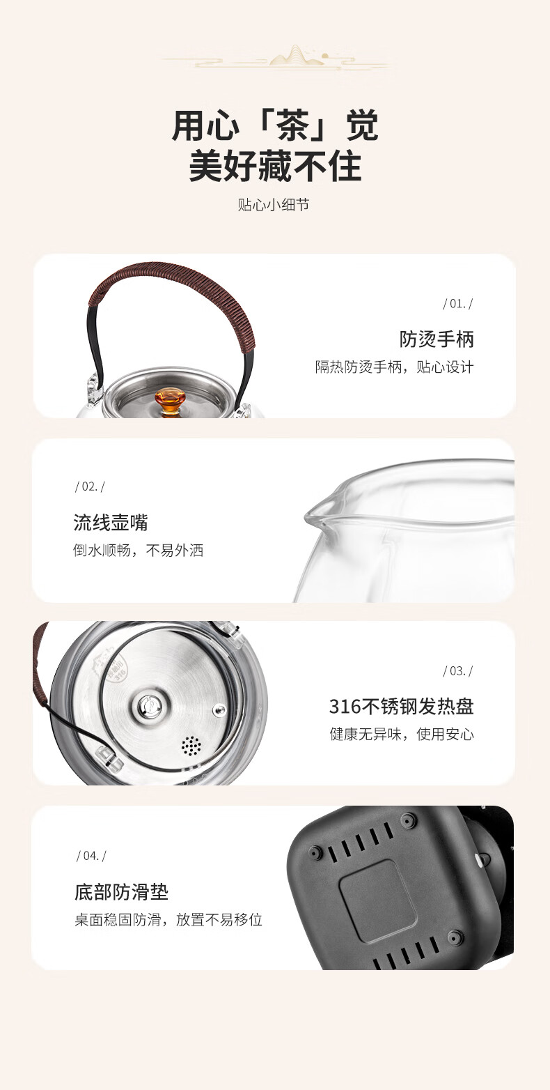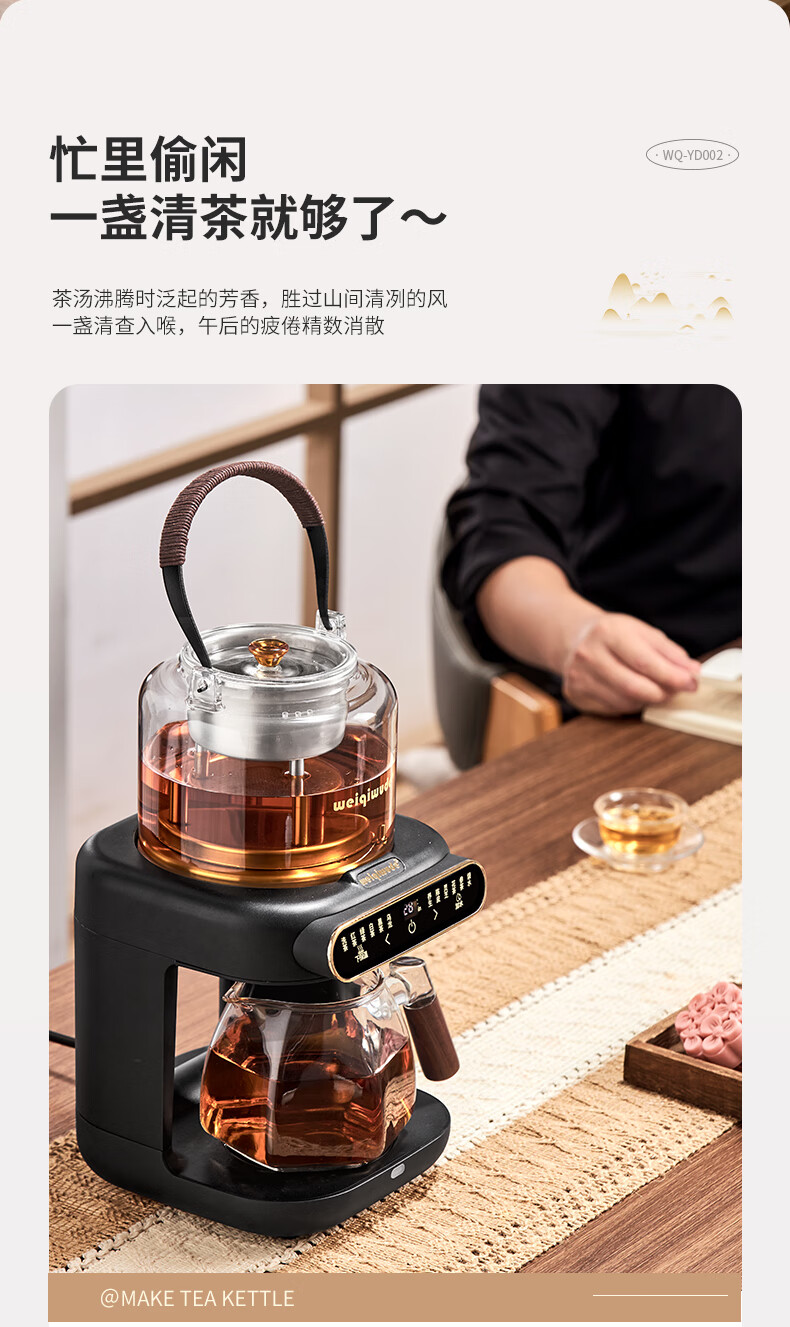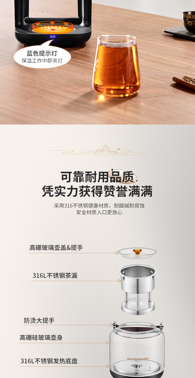 WEIQIWUDE teapot black tea teapot spray steaming teapot fully automatic water filling thickened glass scented tea health pot electric boiling water electric teapot 316 material black 0.6L