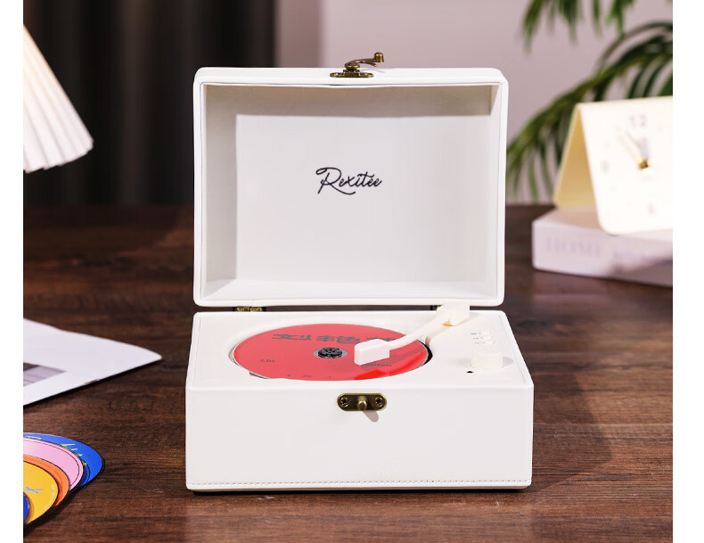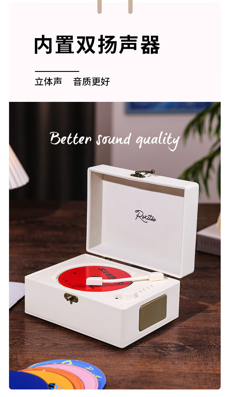 Rexitee Hot Selling TOP1 Nostalgic Retro CD Player Portable Bluetooth Speaker Music Album Disc Player Lossless Sound Quality Home Rechargeable Vinyl CD Birthday Gift Dual Speakers with Diaphragms Comparable to HIFI Sound Quality Rechargeable Model - Brown