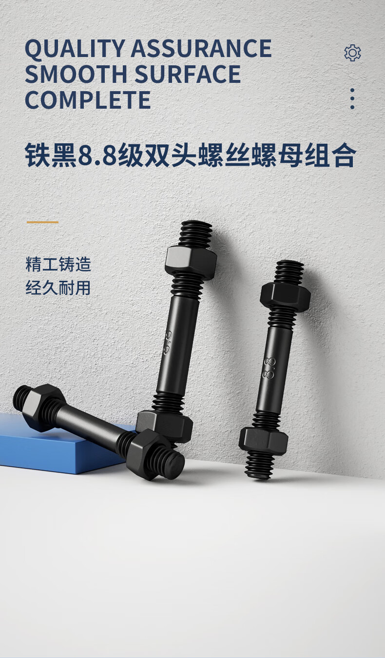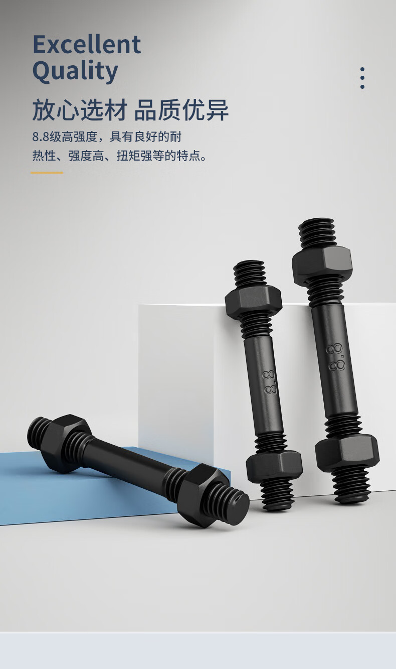 Guwanji 8.8 grade double-headed screw nut set combination two-headed tooth bolt high-strength double-headed screw screw extension M12x90 5 sets
