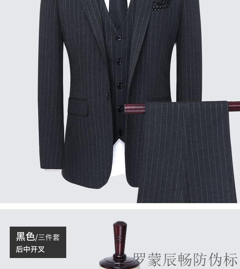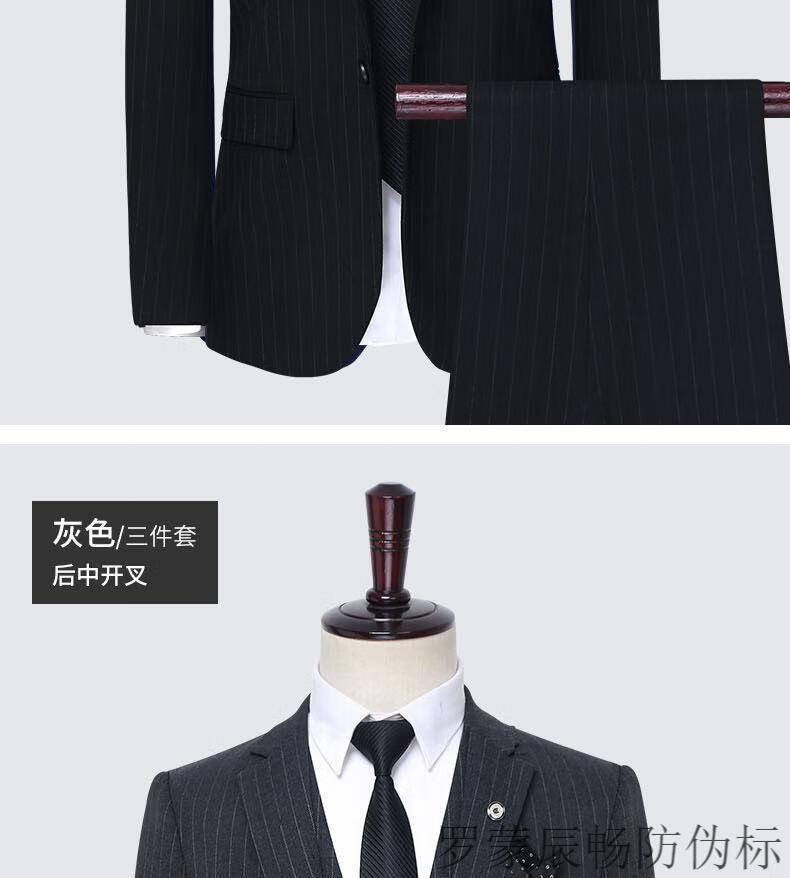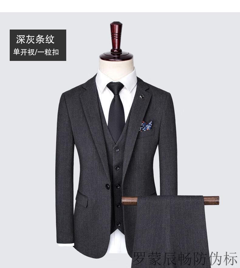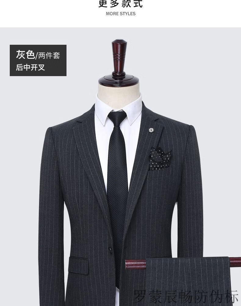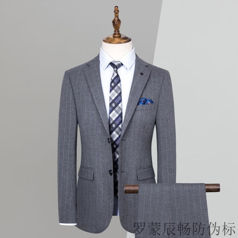 ROMON suit men's three-piece striped groomsmen groomsmen wedding dress Korean version slim business suit TZ2031 gray-three-piece suit vest pants L 175 (120-135) Jin Jin is equal to 0.5 kg