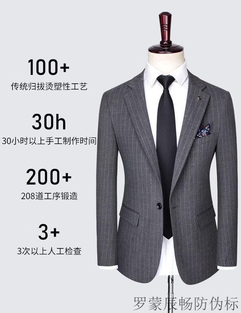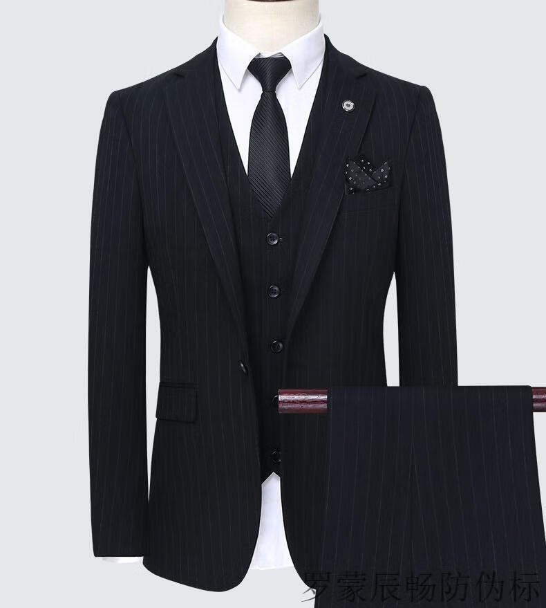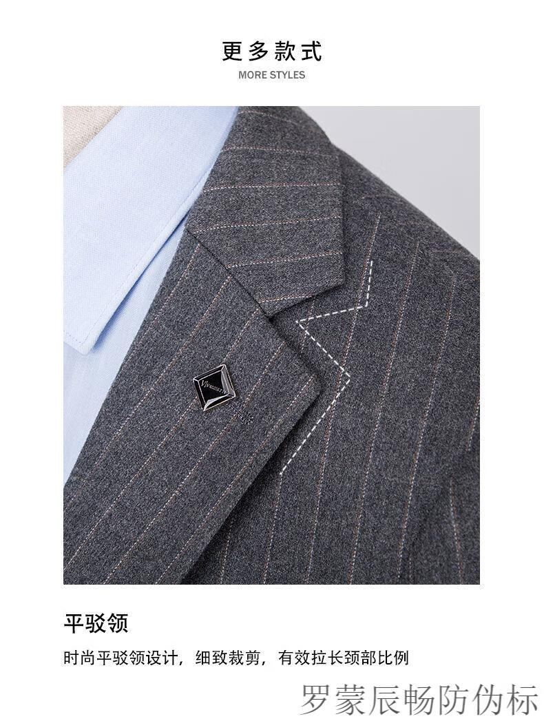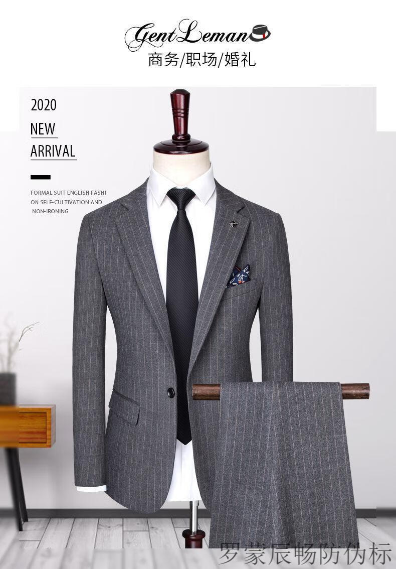 ROMON suit men's three-piece striped groomsmen groomsmen wedding dress Korean version slim business suit TZ2031 gray-three-piece suit vest pants L 175 (120-135) Jin Jin is equal to 0.5 kg