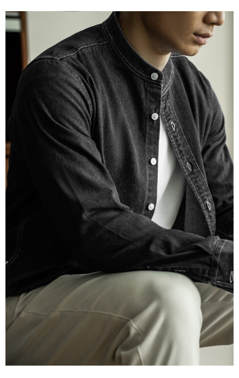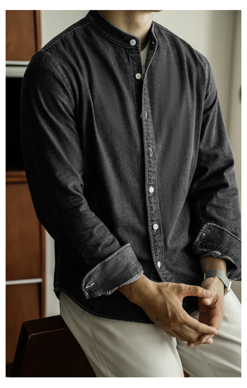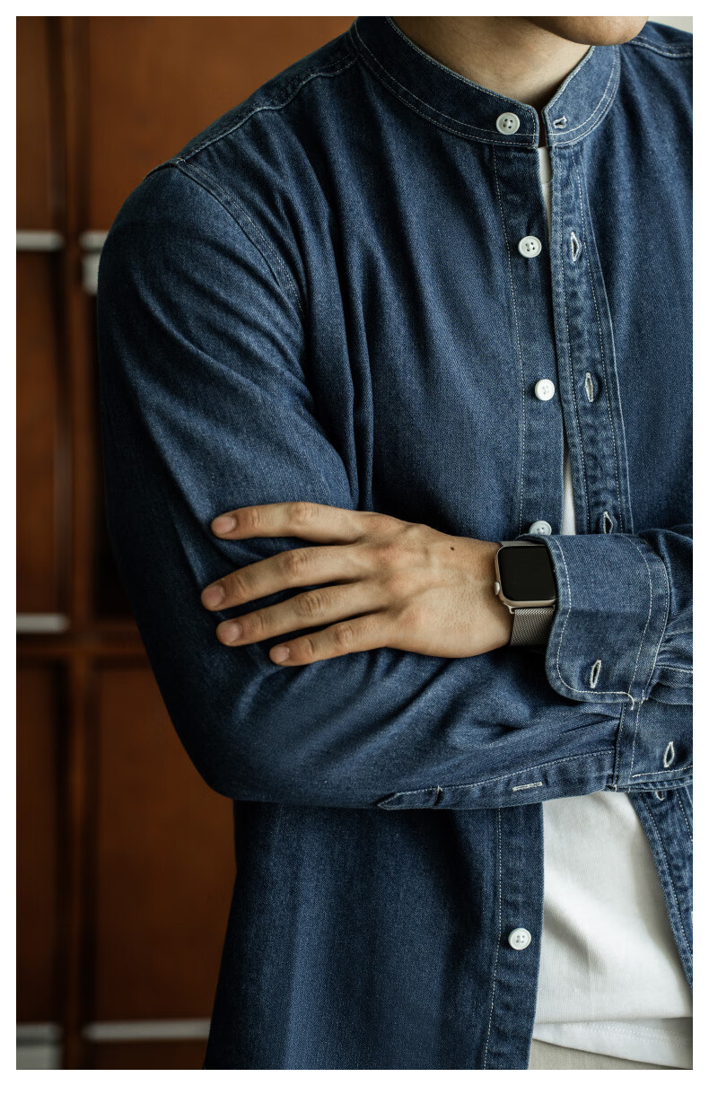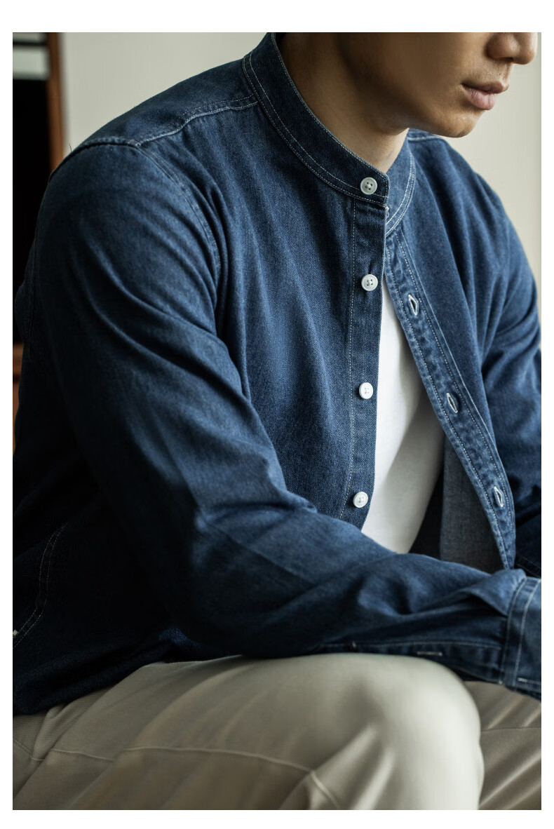 UBV American Retro Henry Collar Denim Shirt Men's 2024 Autumn New Casual Commuting Casual Jacket Shirt Blue XL