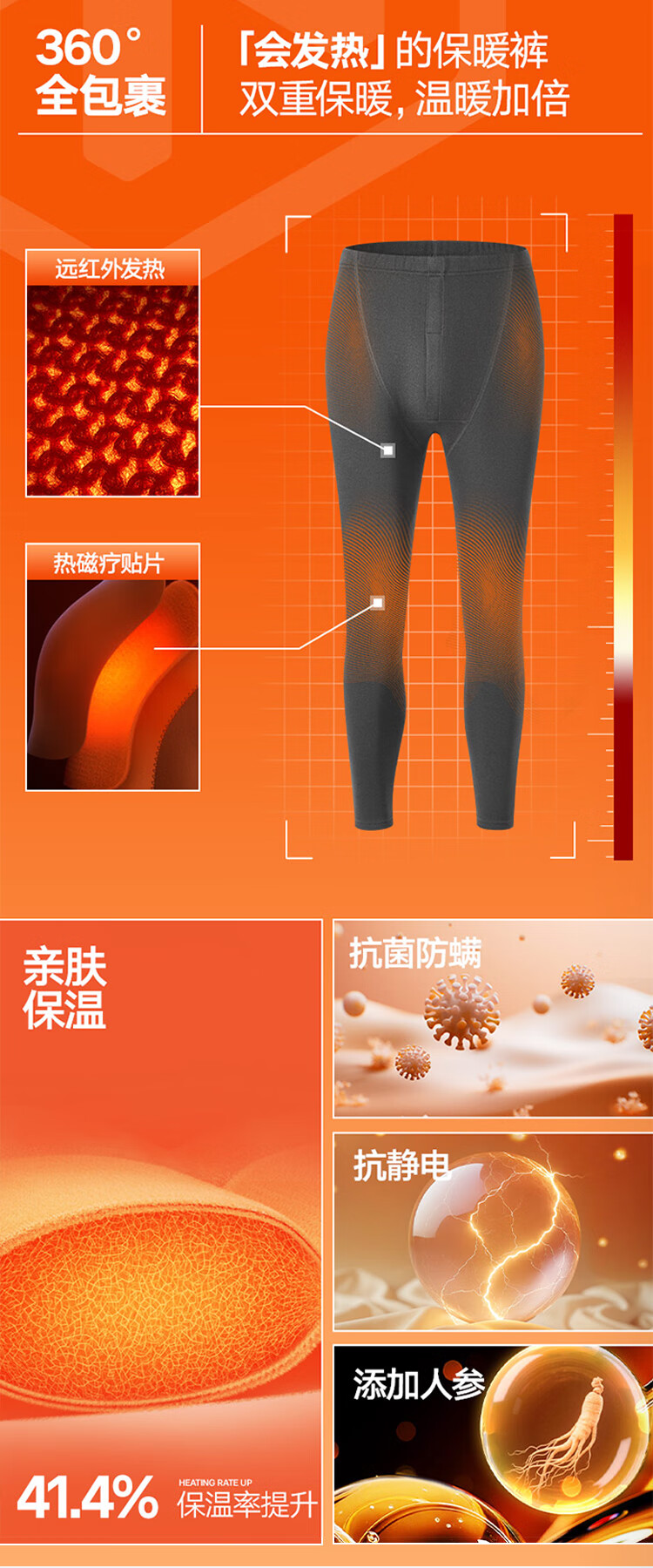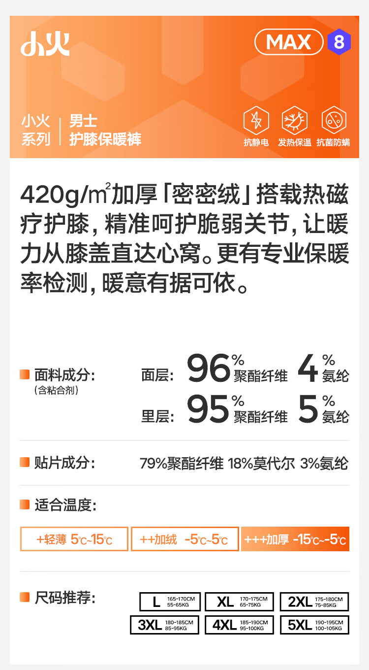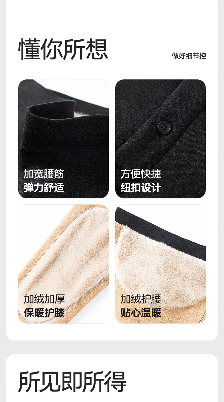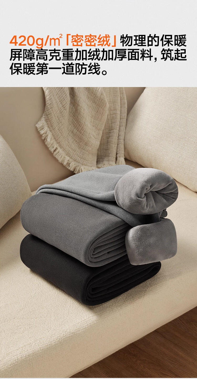 Heilan House (HLA) Men's Warm Pants Men's Velvet Thickened Knee Pads 420g 10A Antibacterial and Antistatic Wool Pants Cotton Pants Leggings 420g Velvet Thickened Antibacterial Antistatic - Dark Gray XL /175 (130-150Jin Jin is equal to 0.5kg)