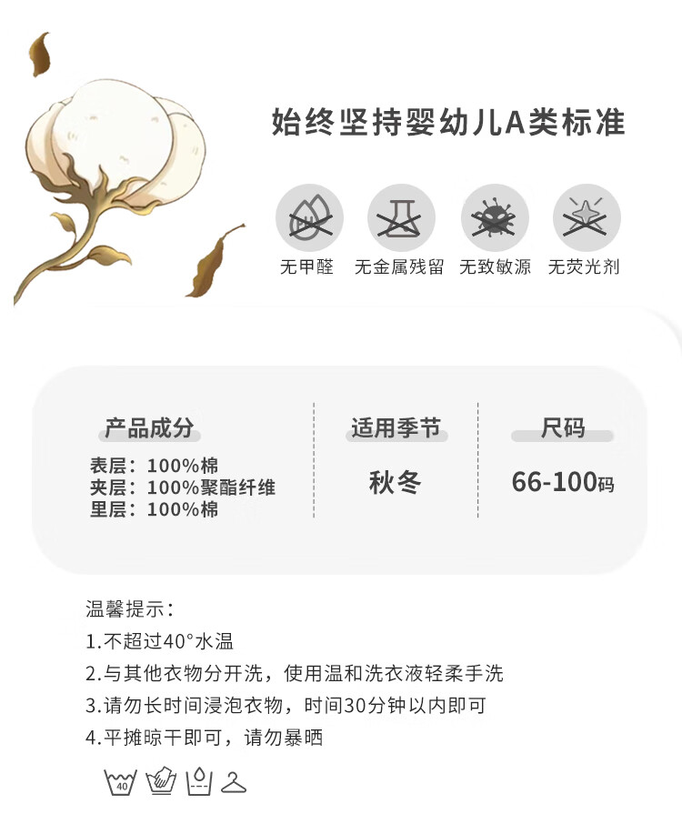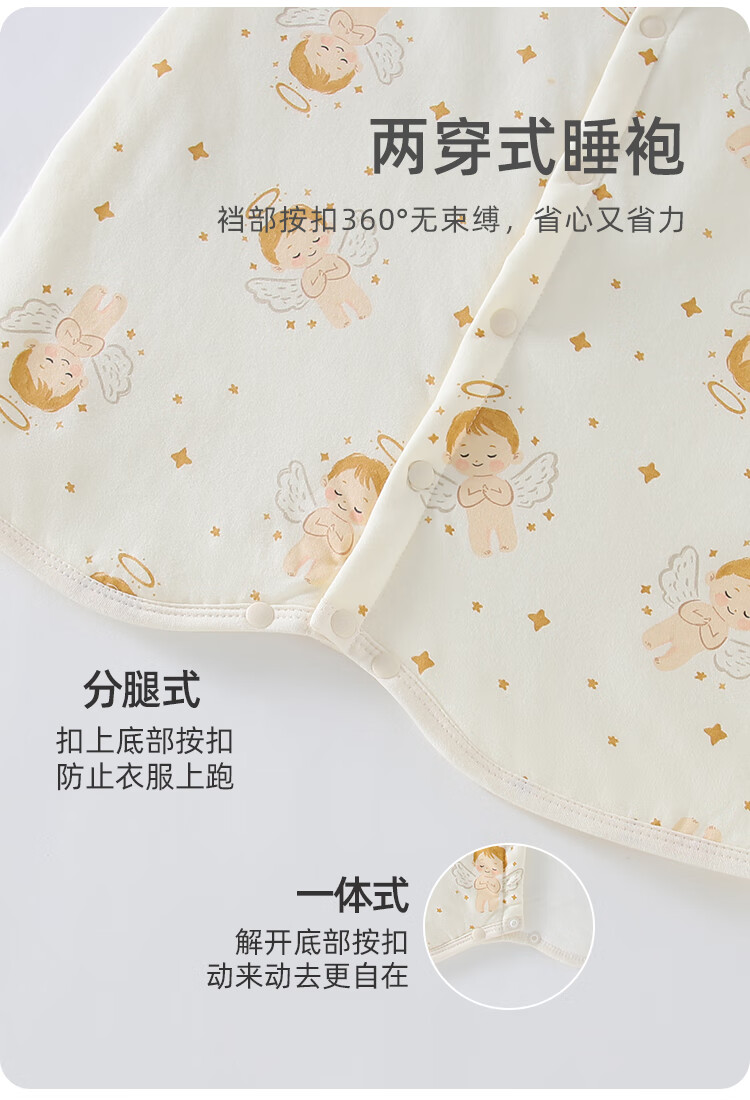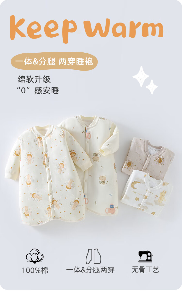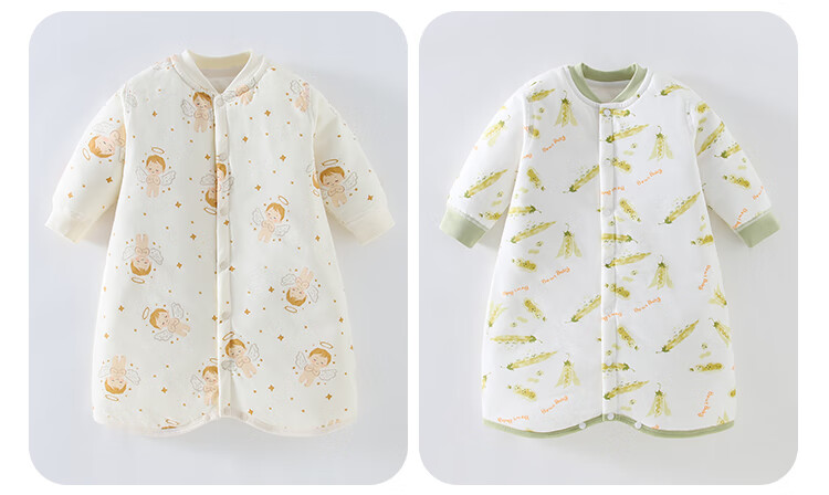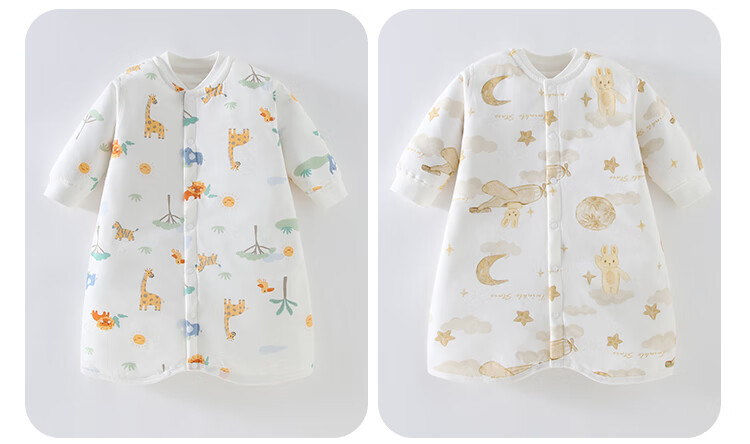 Baby clothes, newborn onesie, sleeping bag, quilted autumn and winter full moon baby close-fitting nightgown, spring and autumn style, Kiss Rabbit (40g thin quilted) 66cm (recommended to take one size larger)