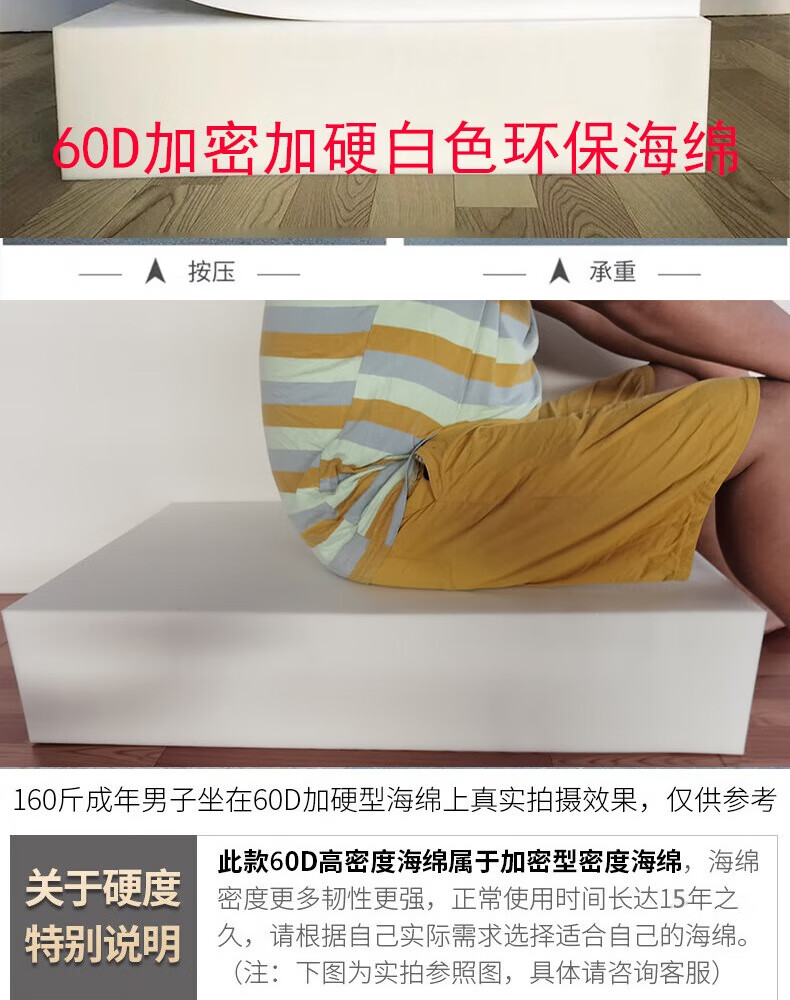 Caixiangju custom-made 60D high-density sponge sofa cushion thickened and hardened mahogany bay window cushion buttocks cushion solid wood sofa cushion 60D high-density sponge (encrypted and hardened) customized special shot (contact customer service to calculate the price)