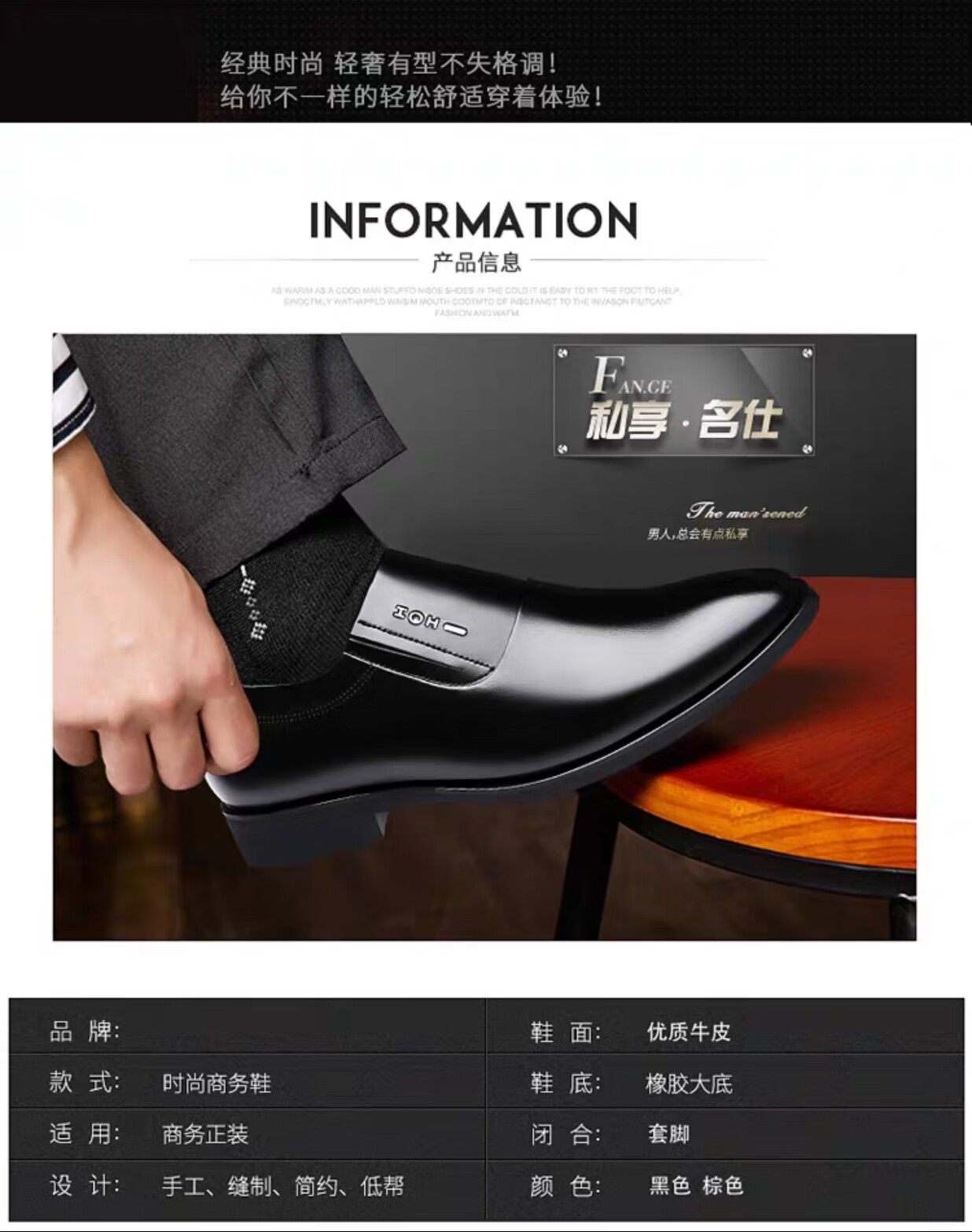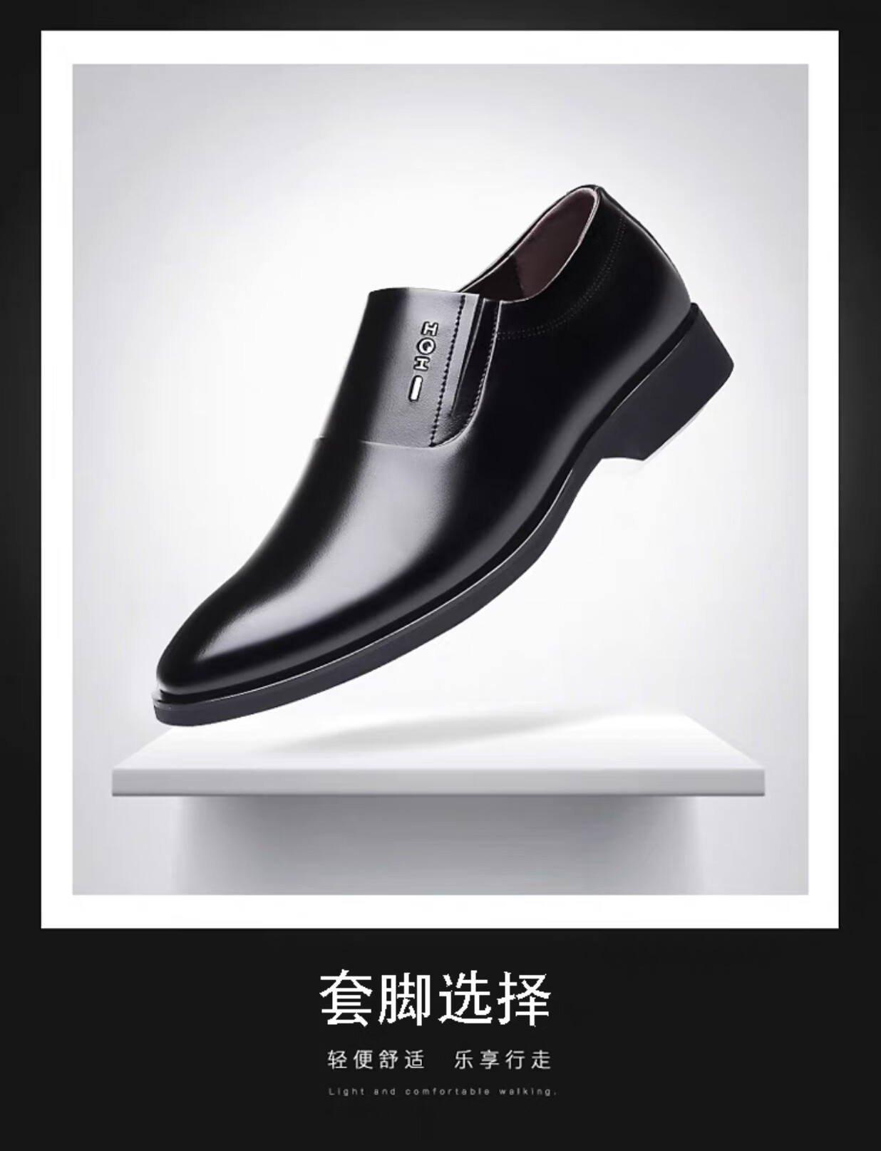 Star-headed woodpecker leather shoes for men, 100% cowhide business formal wear, genuine leather soft-soled slip-on casual shoes for men, wedding and groom shoes 9608 black 42