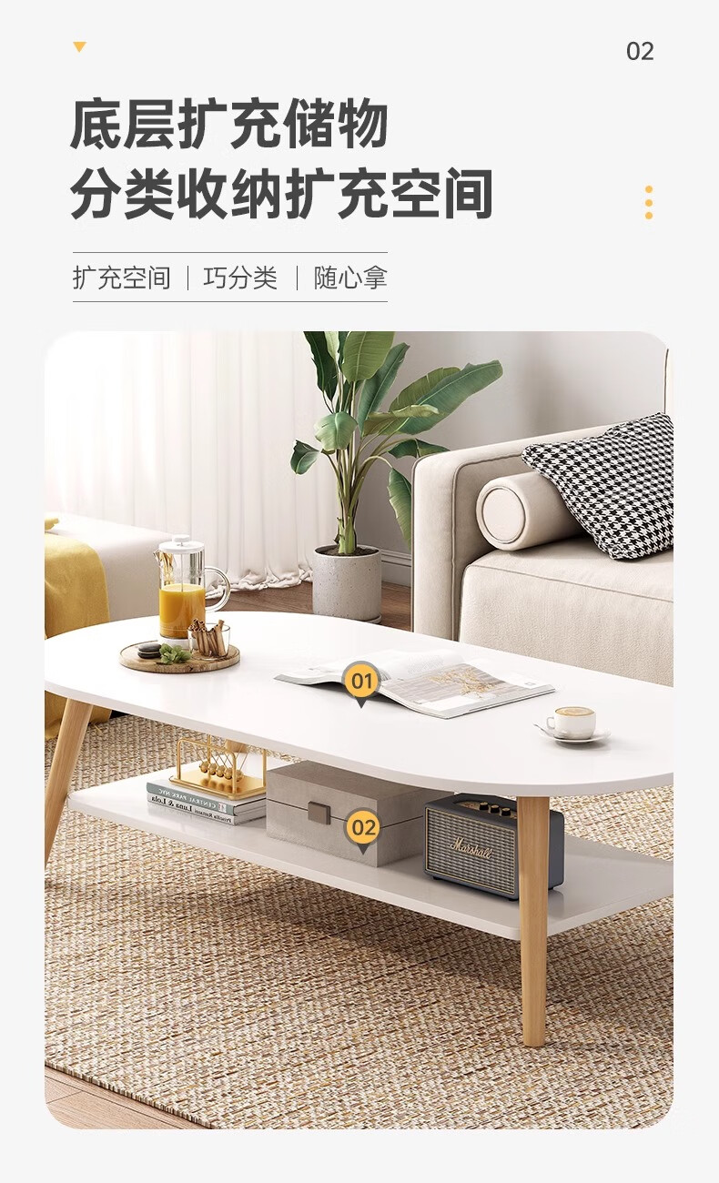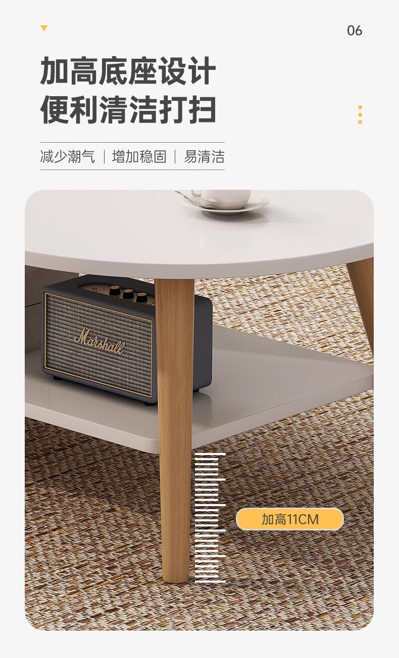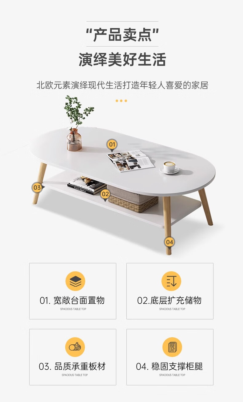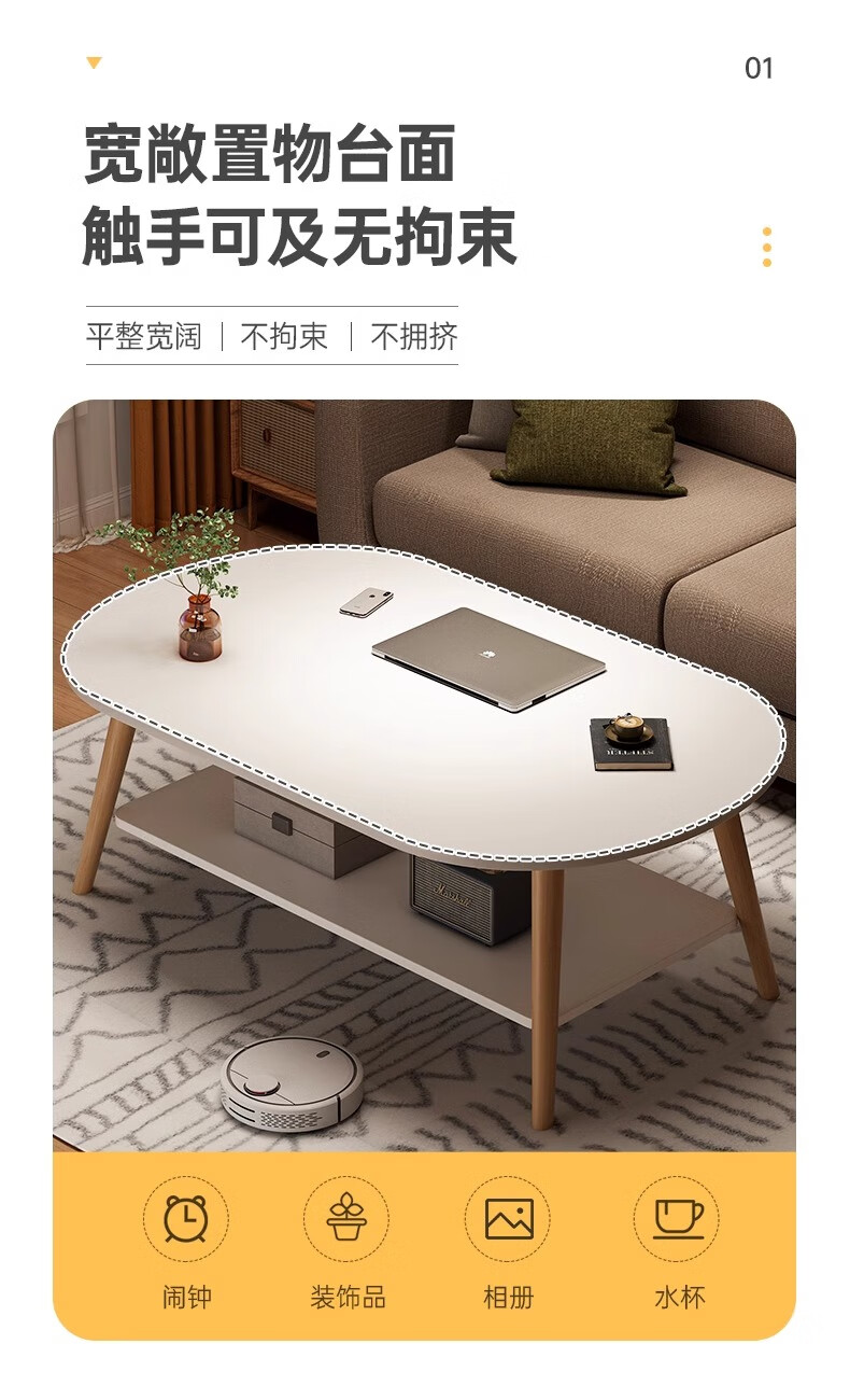Fengxing Tianxia Living Room Small Tea Table Simple Modern Small Household Tea Table Simple Bedroom Rental House Multifunctional Small Side Table Recommended Double-Arc Model 80 Warm White