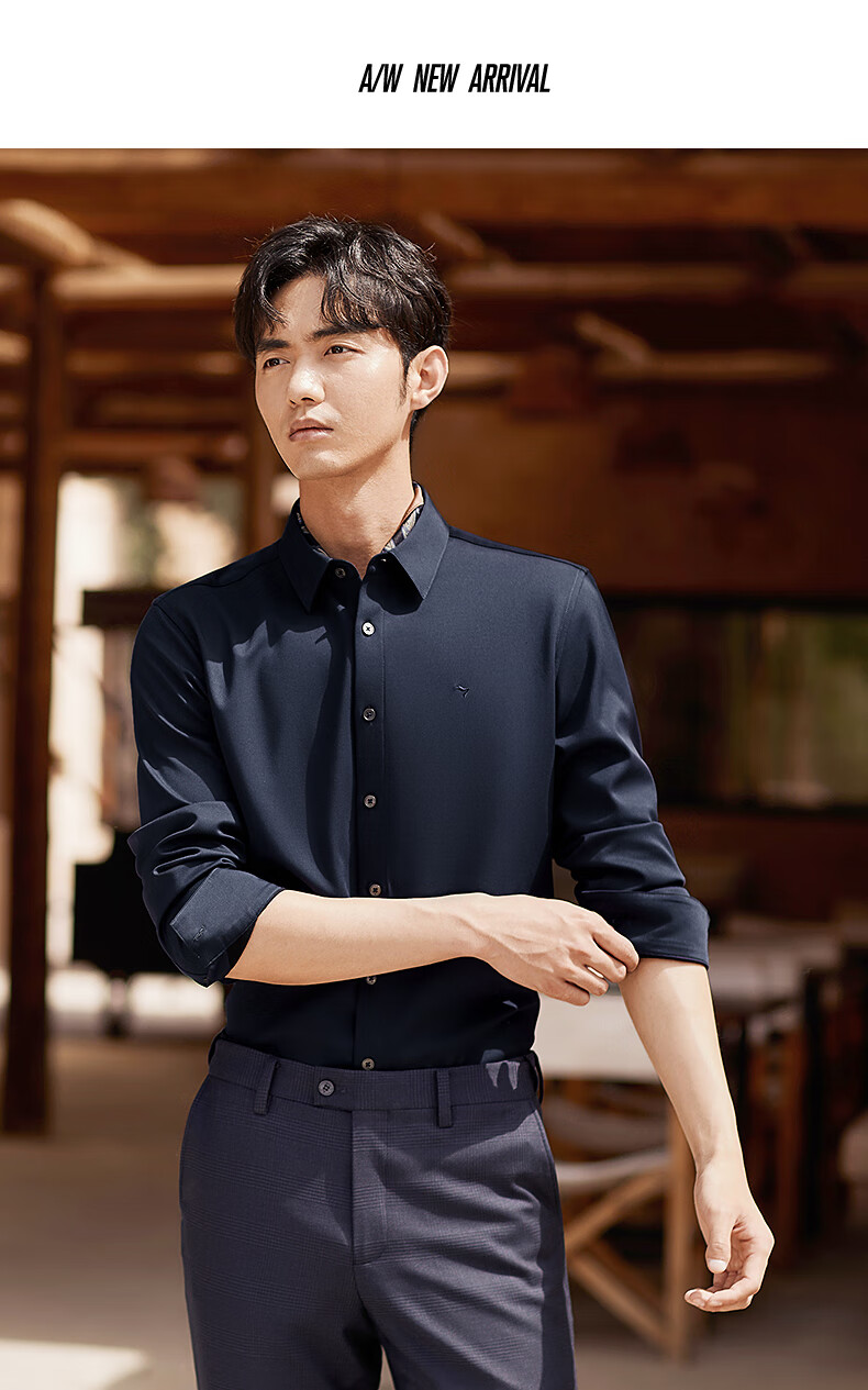Qipai composite velvet long-sleeved shirt men's winter new business casual professional formal wear thick men's shirt Navy 41