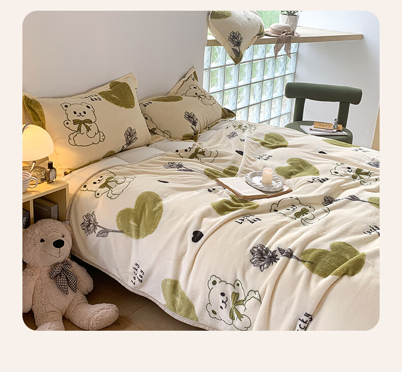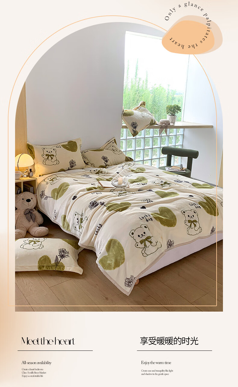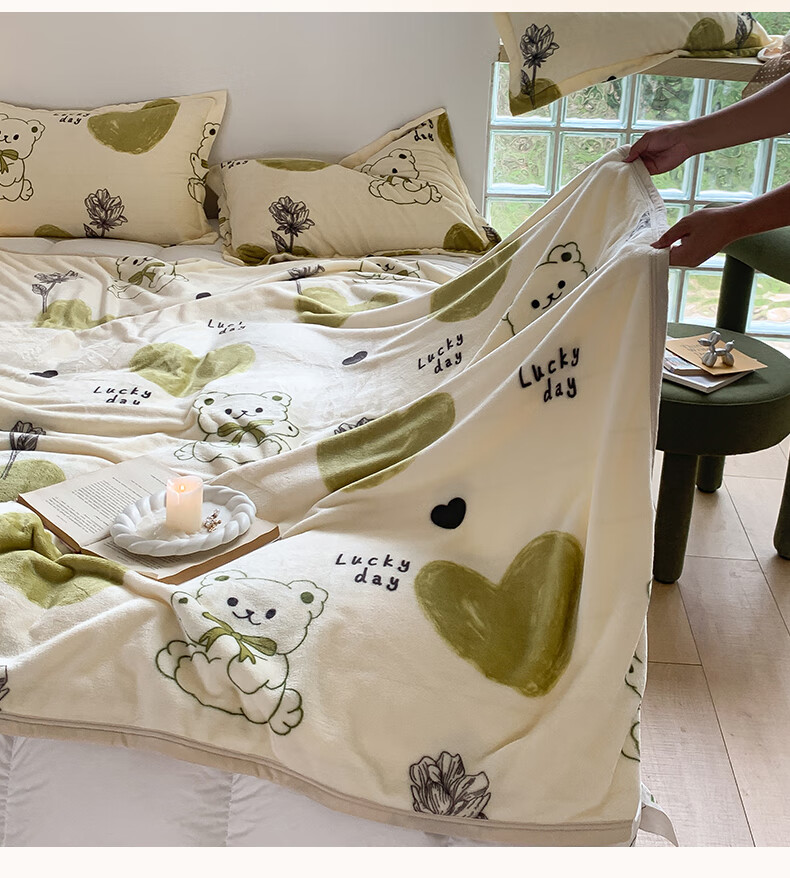 Yalu Double-layer Milk Velvet Blanket Air Conditioning Blanket Towel Quilt Office Sofa Nap Blanket Shawl Throw Blanket Universal for All Seasons Dim Sum Bear Multi-purpose Blanket Can Be Paved or Covered 120*200cm Single Blanket