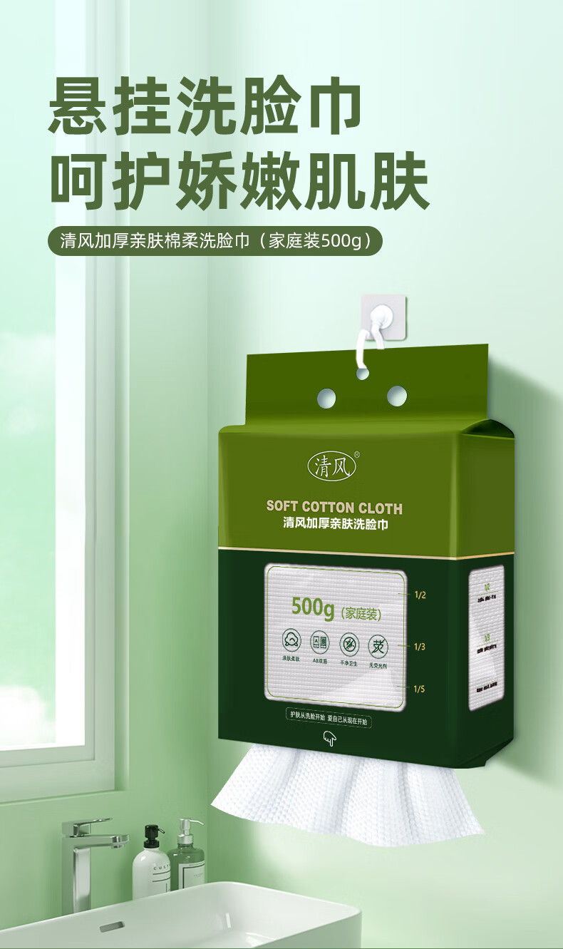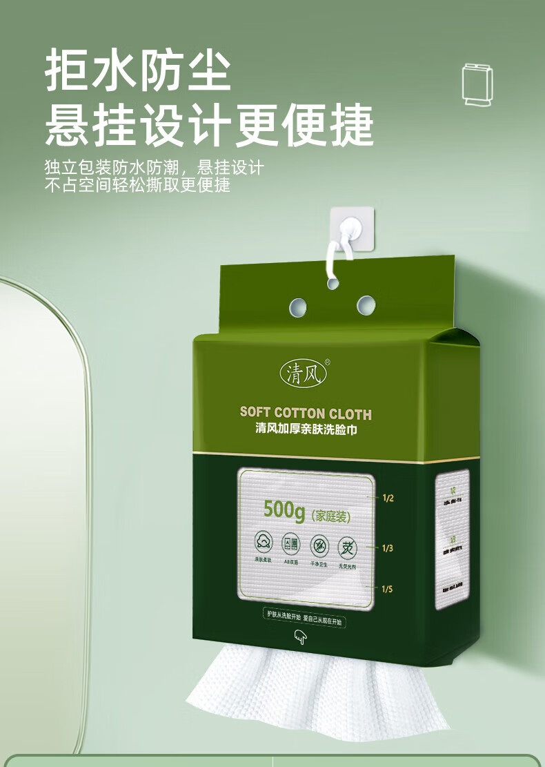 Qingfeng hanging family size cotton soft face washcloth removable thickened skin-friendly disposable cleansing and absorbent face washcloth Qingfeng cotton soft face washcloth 3 pack