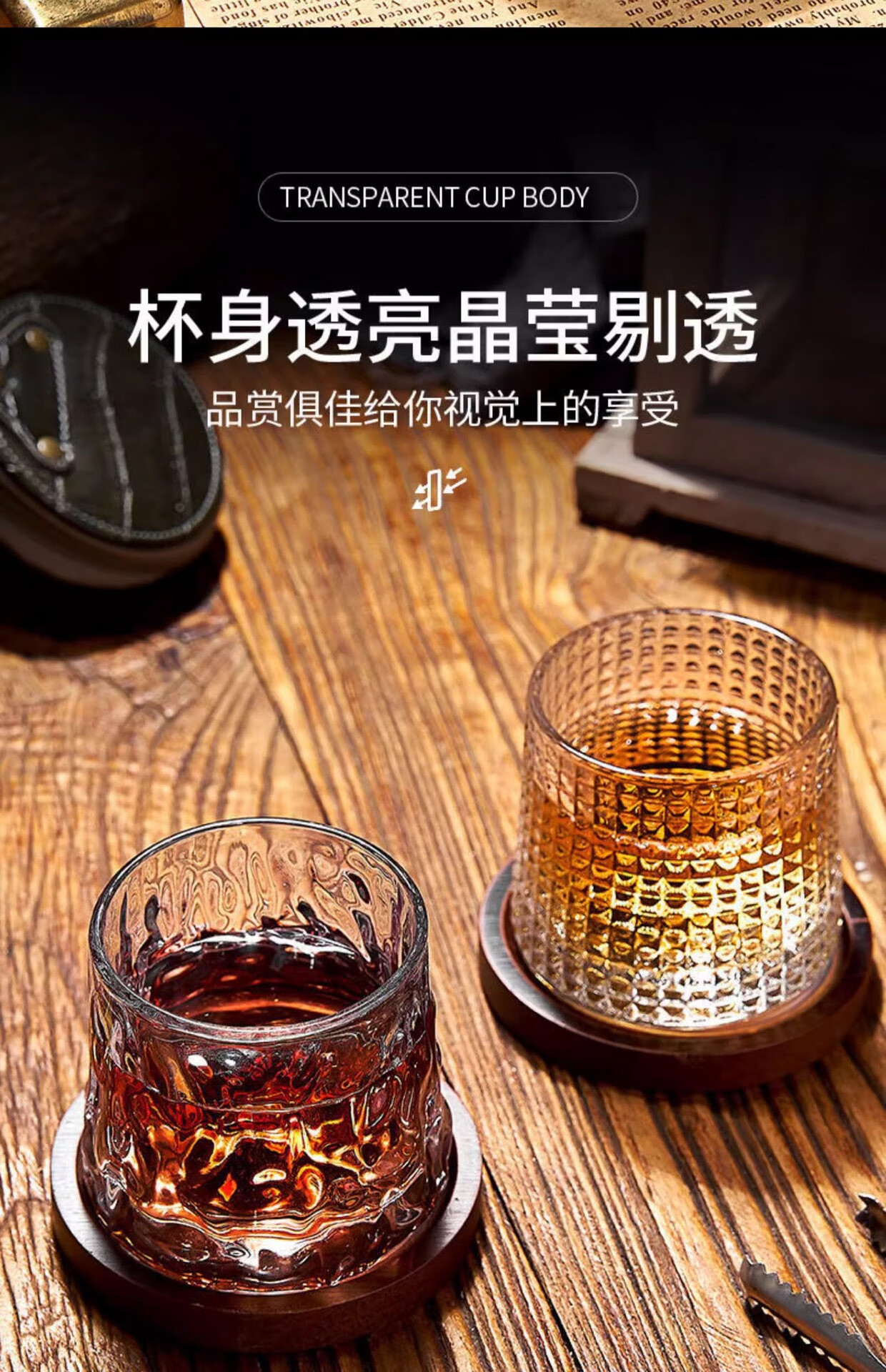 Export to domestic sales rotating glass wine glass tumbler beer glass foreign wine glass ice ball whiskey cup hammered whiskey rotating wine glass 180ml 1 piece