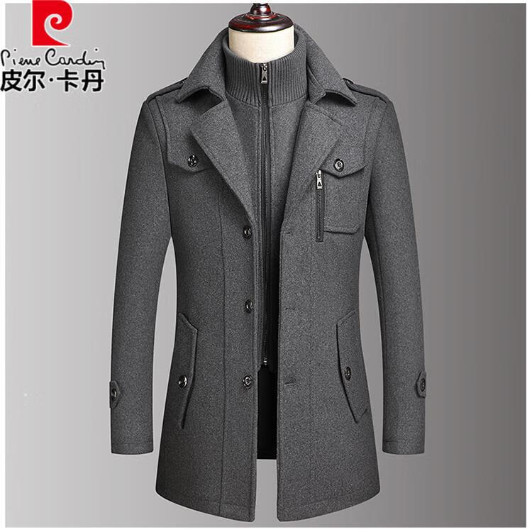 Pierre Cardin high-end winter new product middle-aged men's woolen coat jacket casual middle-aged and elderly woolen jacket dad's outfit gray 185 recommended 146-160Jin Jin equals 0.5 kg