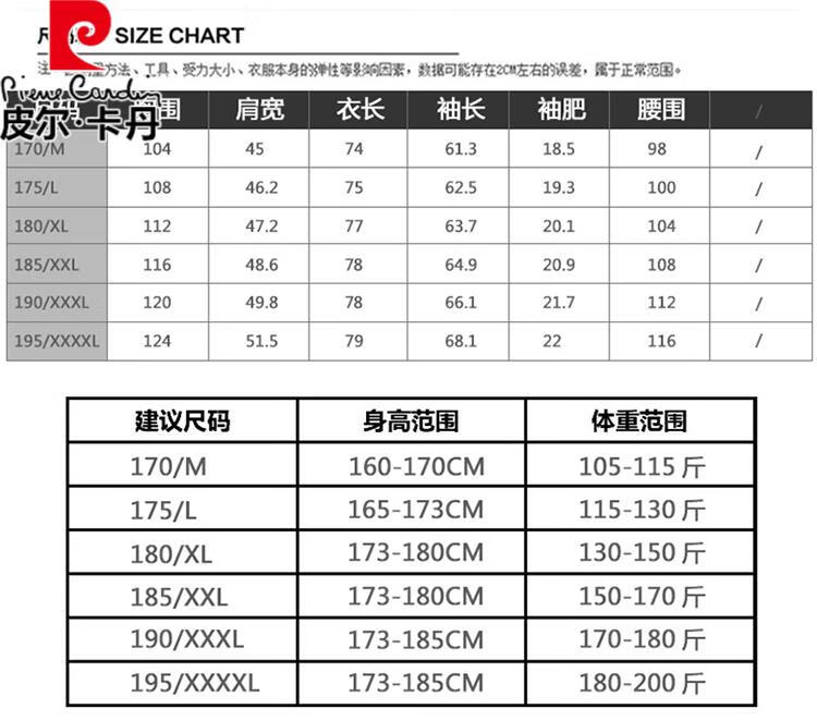 China (cm) 165 / 88-90 170 / 96-98 175 / 108-110 180 / 118-122 185 / 126-130