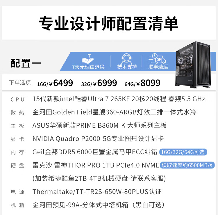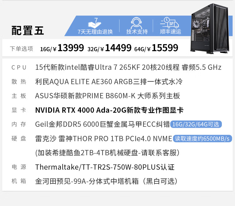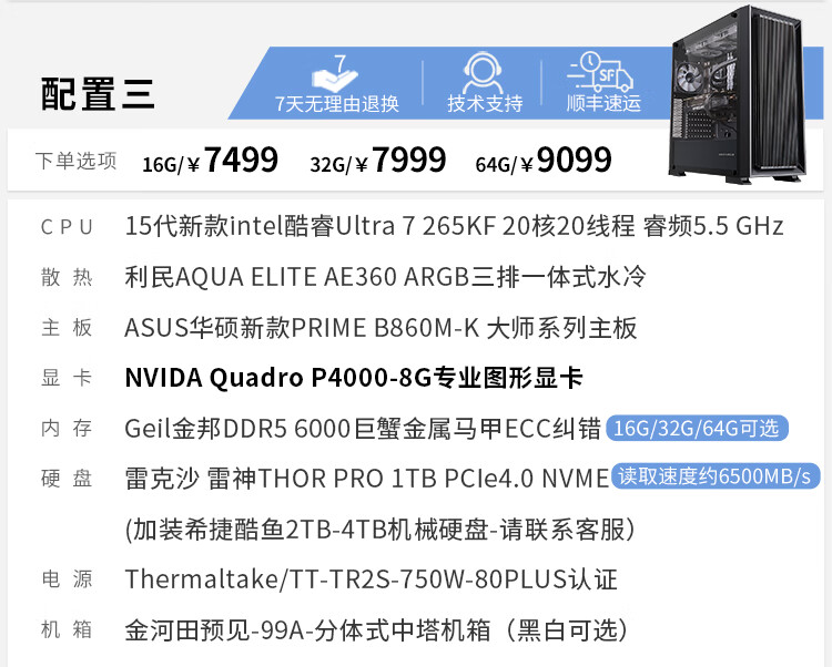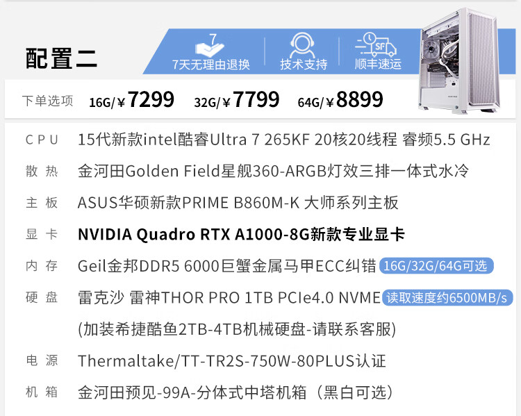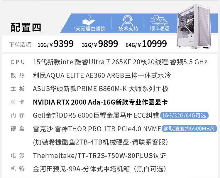 Yituyuntian 15th generation U7 265KF high-end RTX 2000Ada A4000Ada designer's dedicated computer graphics workstation graphic design 3D modeling rendering DIY assembly host 64G configuration four U7 265KF+2000Ada