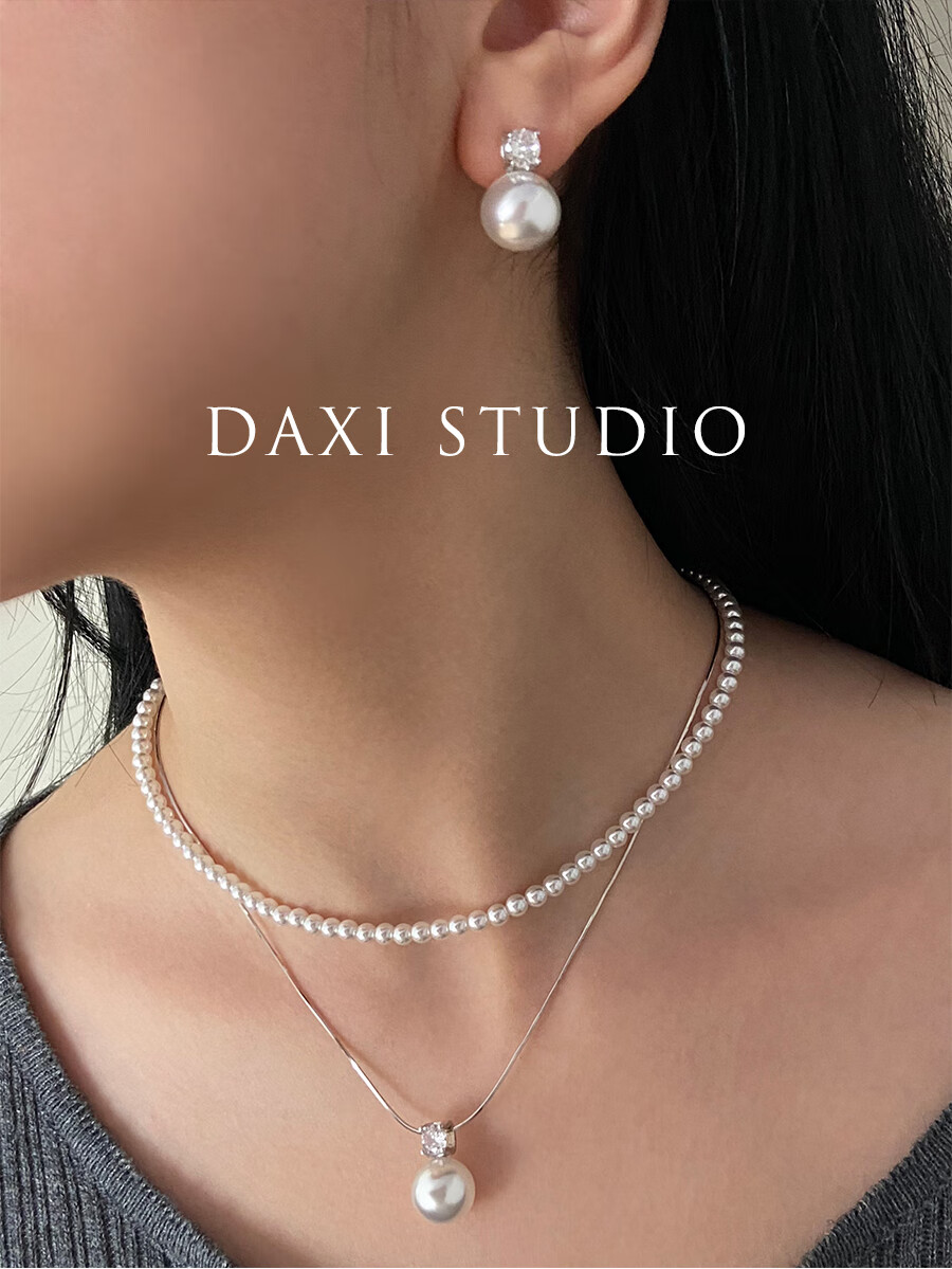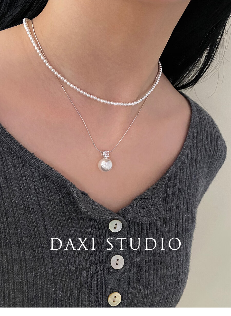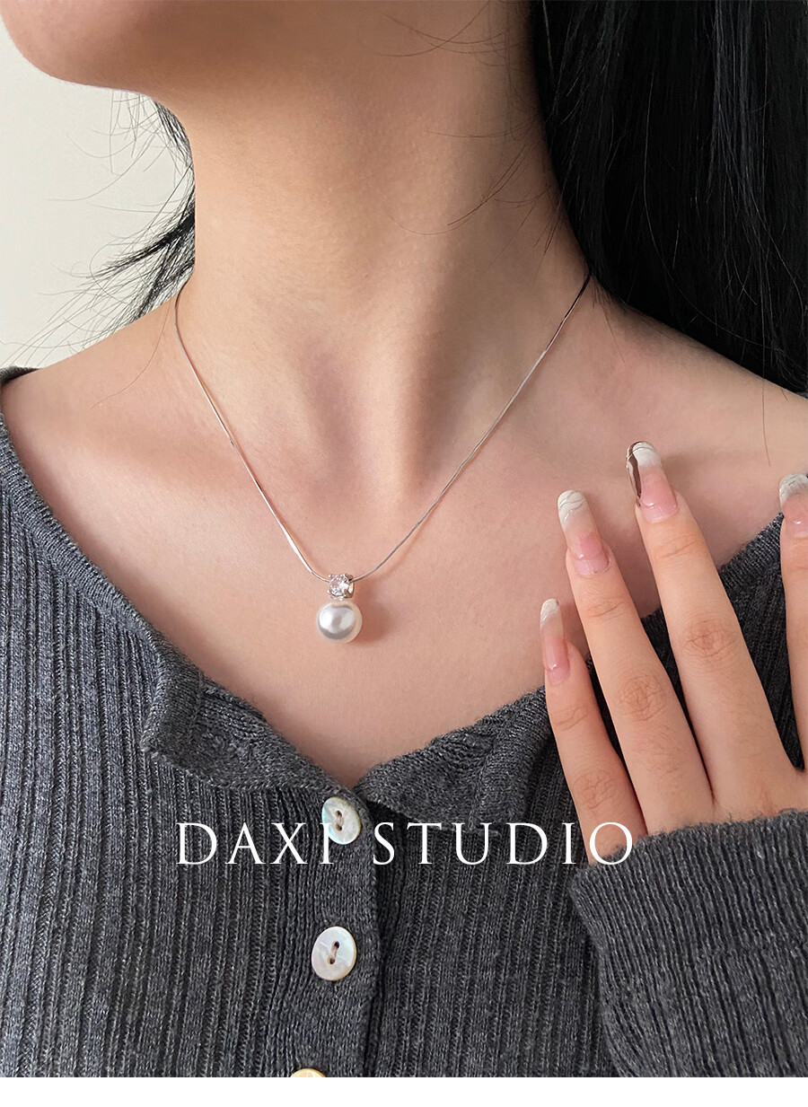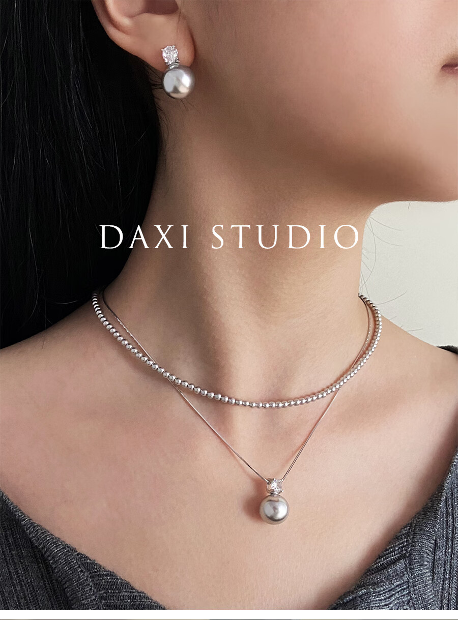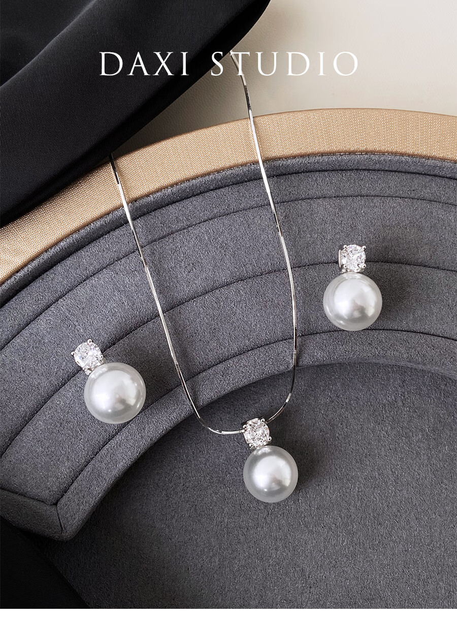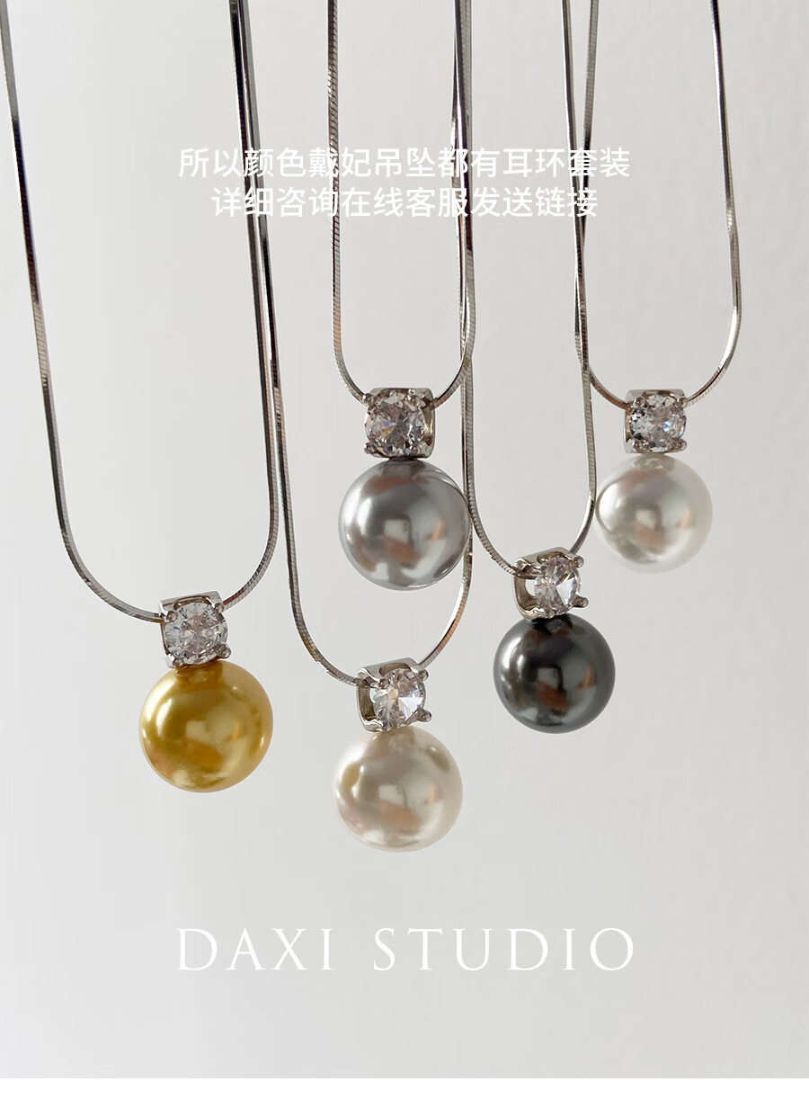 DL 1998 Fat Donglai same style true hemp pendant Princess Diana Australian white pearl necklace women's light luxury gray milk white clavicle chain silver snake Tahiti black suit (12mm earrings + 40CM pendant