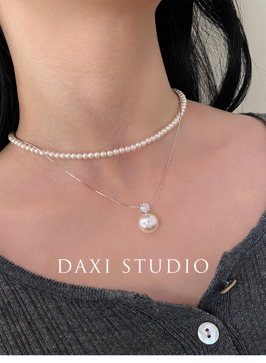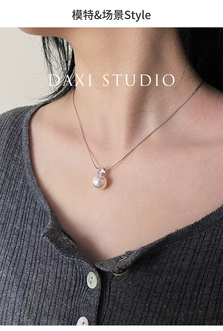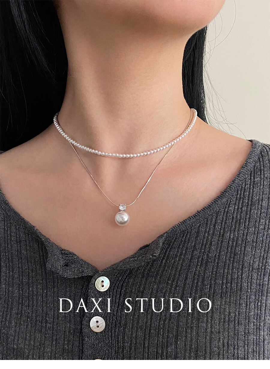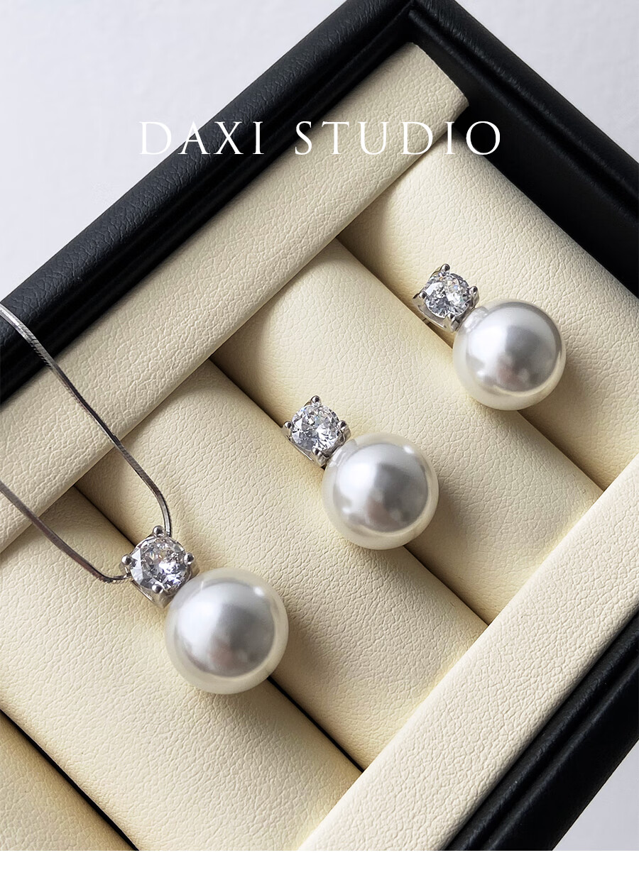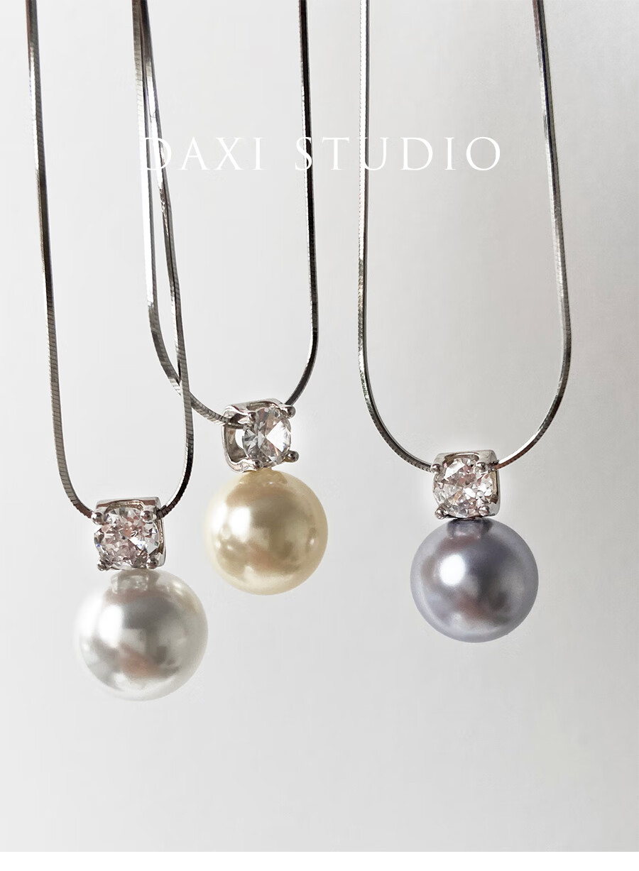 DL 1998 Fat Donglai same style true hemp pendant Princess Diana Australian white pearl necklace women's light luxury gray milk white clavicle chain silver snake Tahiti black suit (12mm earrings + 40CM pendant