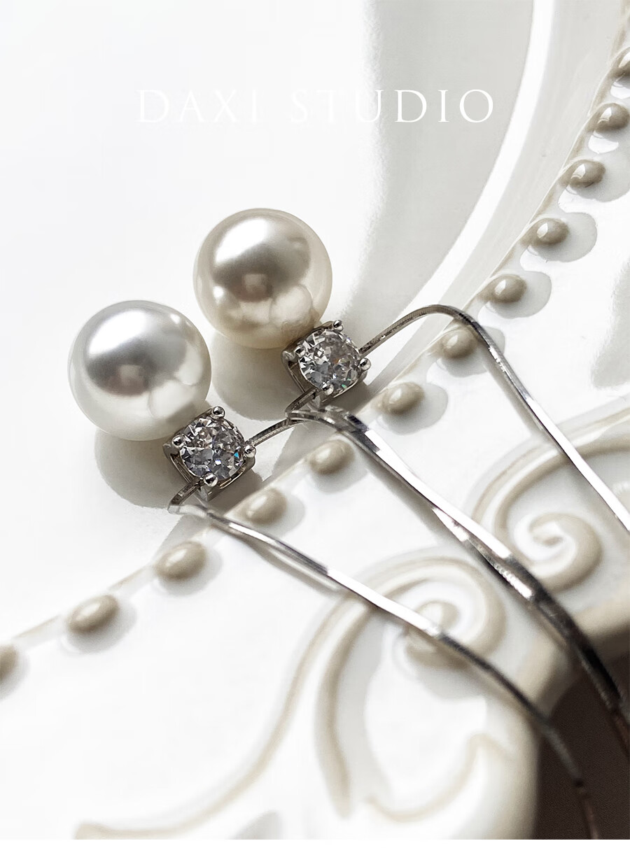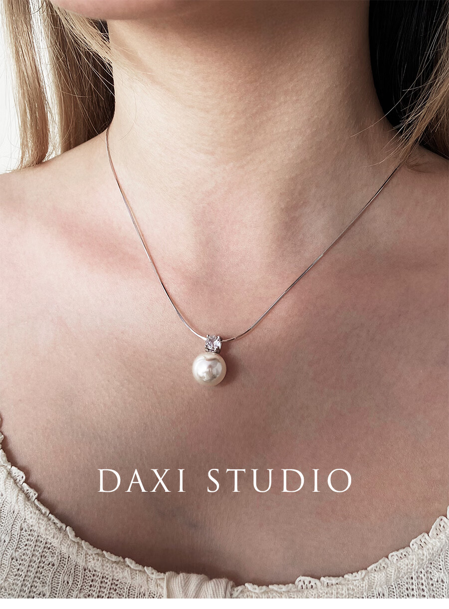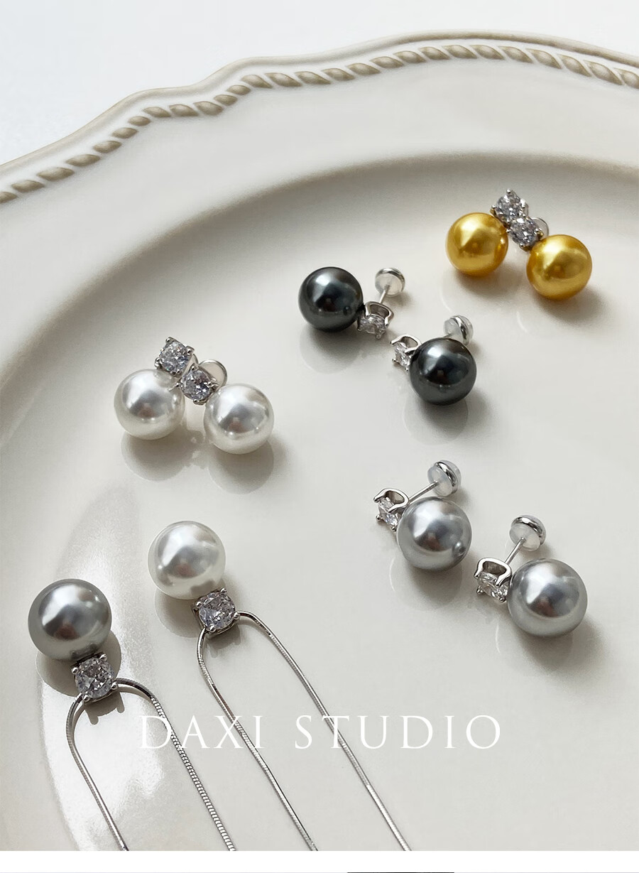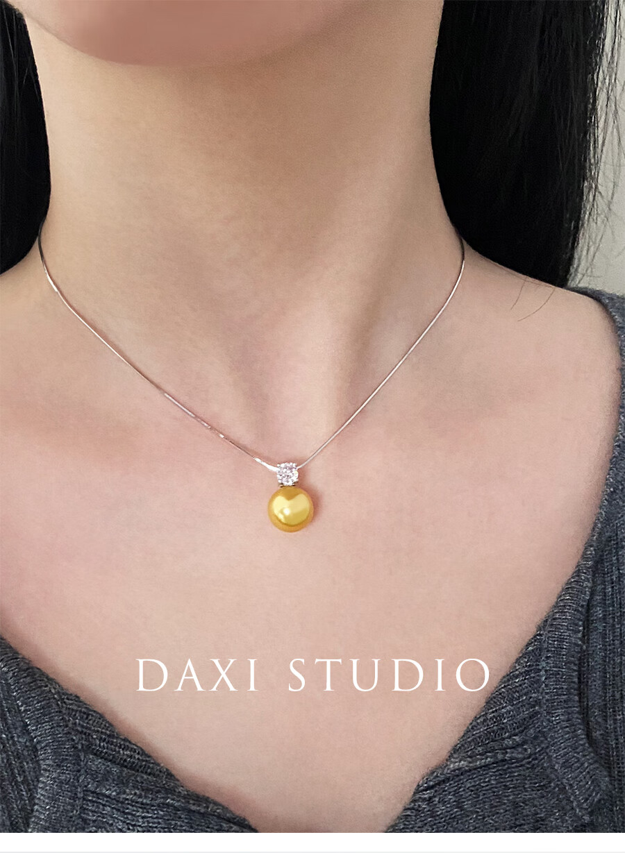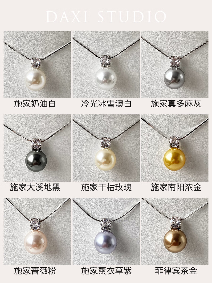 DL 1998 Fat Donglai same style true hemp pendant Princess Diana Australian white pearl necklace women's light luxury gray milk white clavicle chain silver snake Tahiti black suit (12mm earrings + 40CM pendant