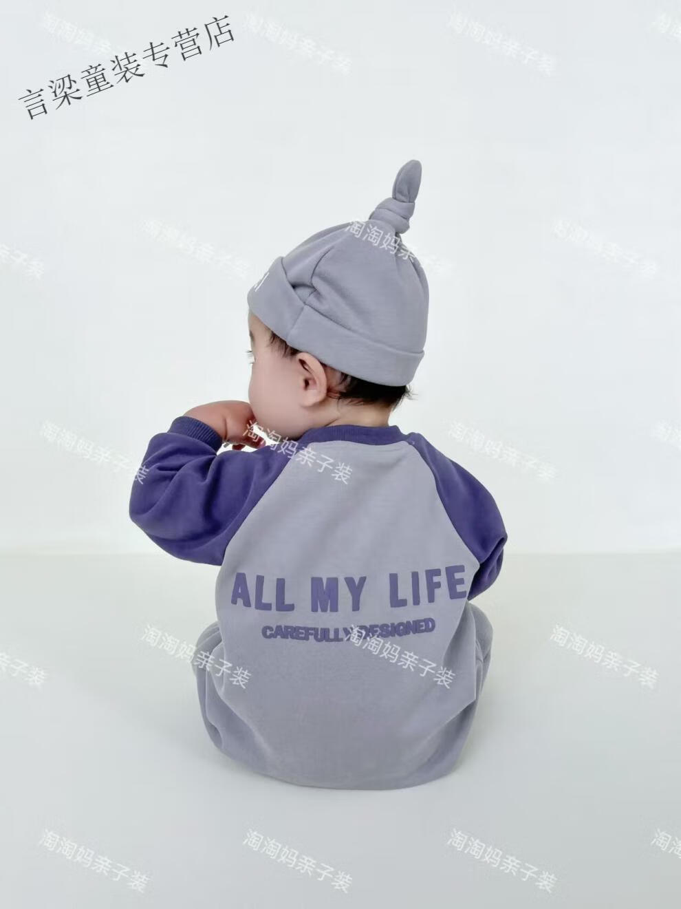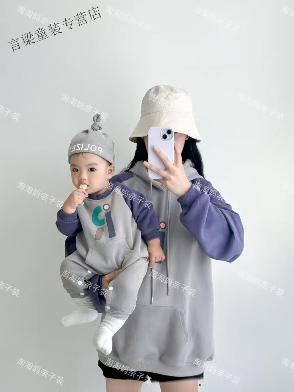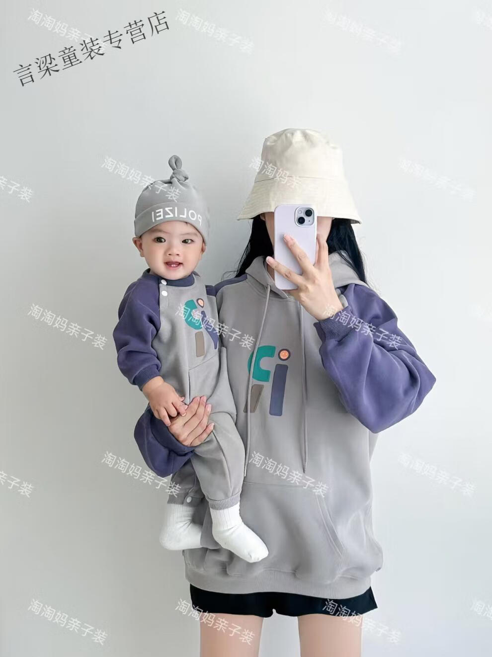 G.duck little yellow duck parent-child clothing for a family of three hooded sweatshirts high-end 2024 new spring clothing mother and child mother and daughter for four autumn and winter without velvet (splicing purple) baby one-piece romper 80 size
