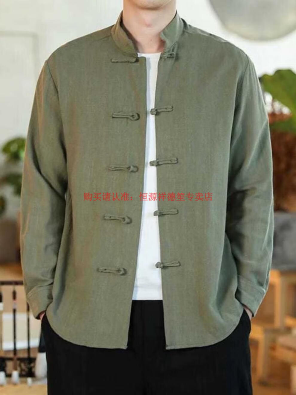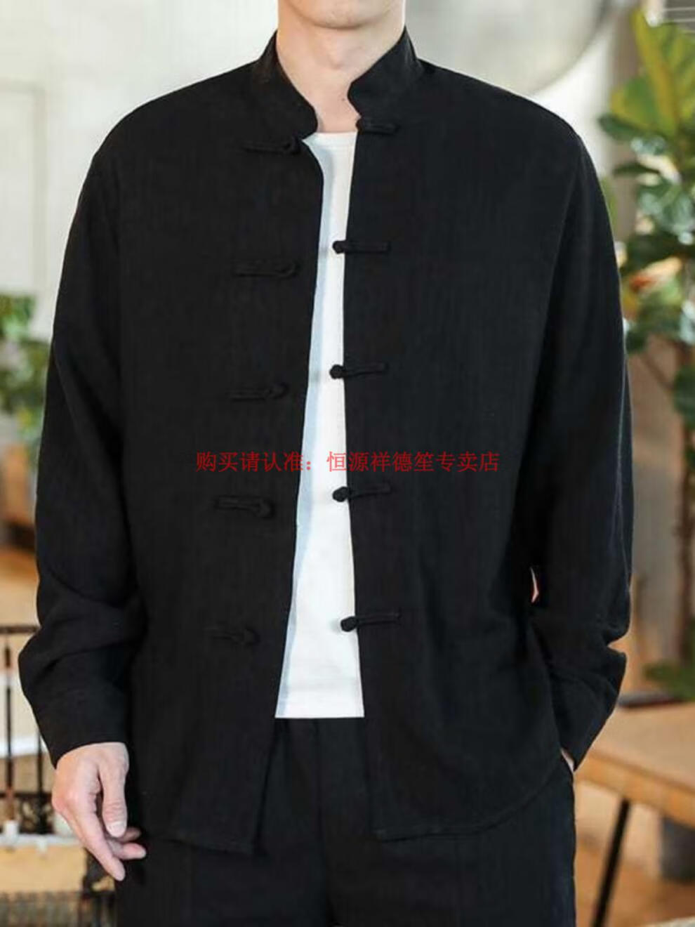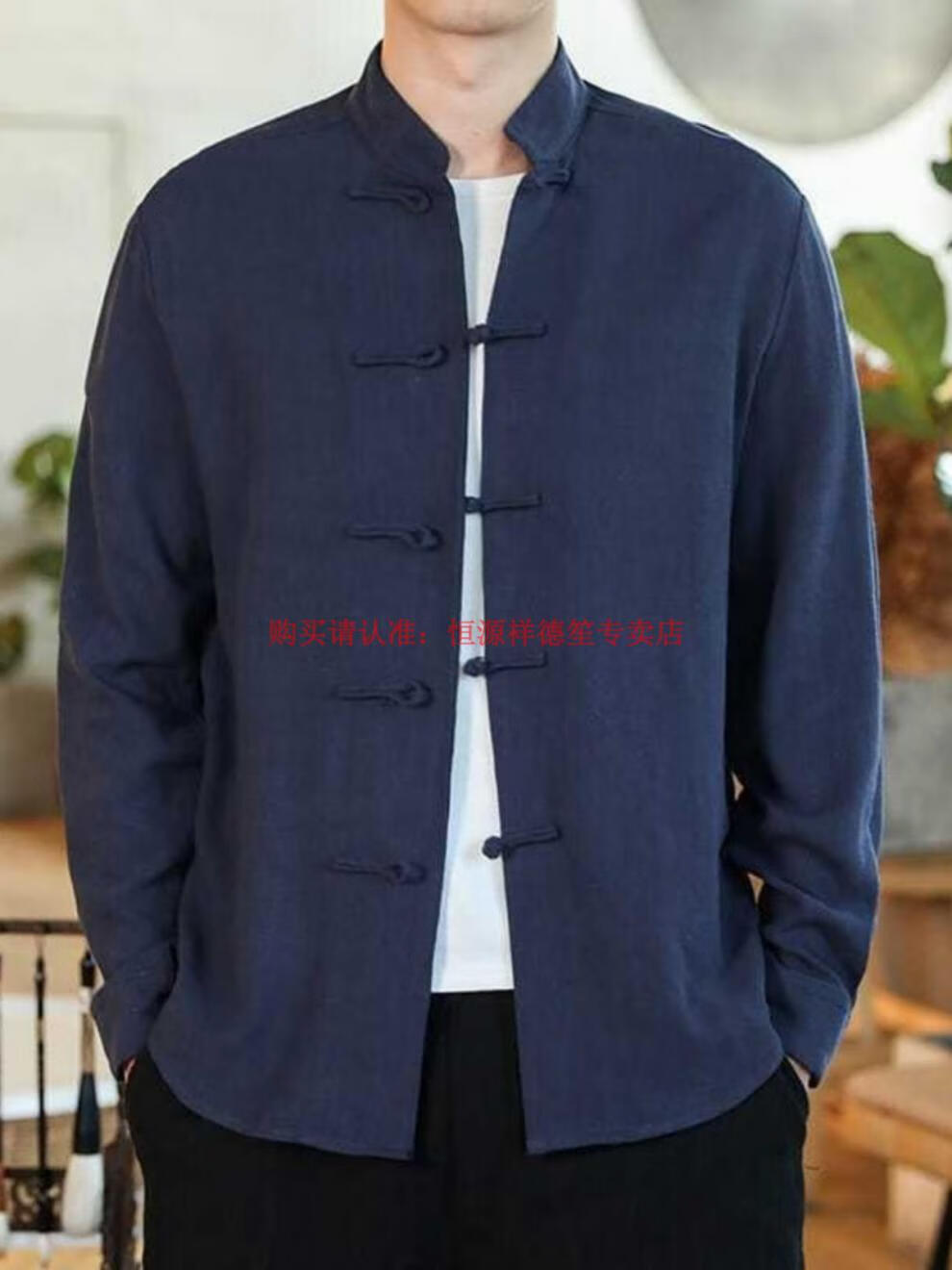 Hengyuanxiang 2024 Chinese Autumn Button Tang Suit Shirt Retro Casual Large Size Layman Suit Long Sleeve Chinese Style Men's Clothing Versatile Cotton and Linen - Navy Blue 3XL 140-155Jin Jin is equal to 0.5 kg