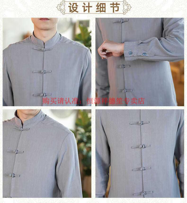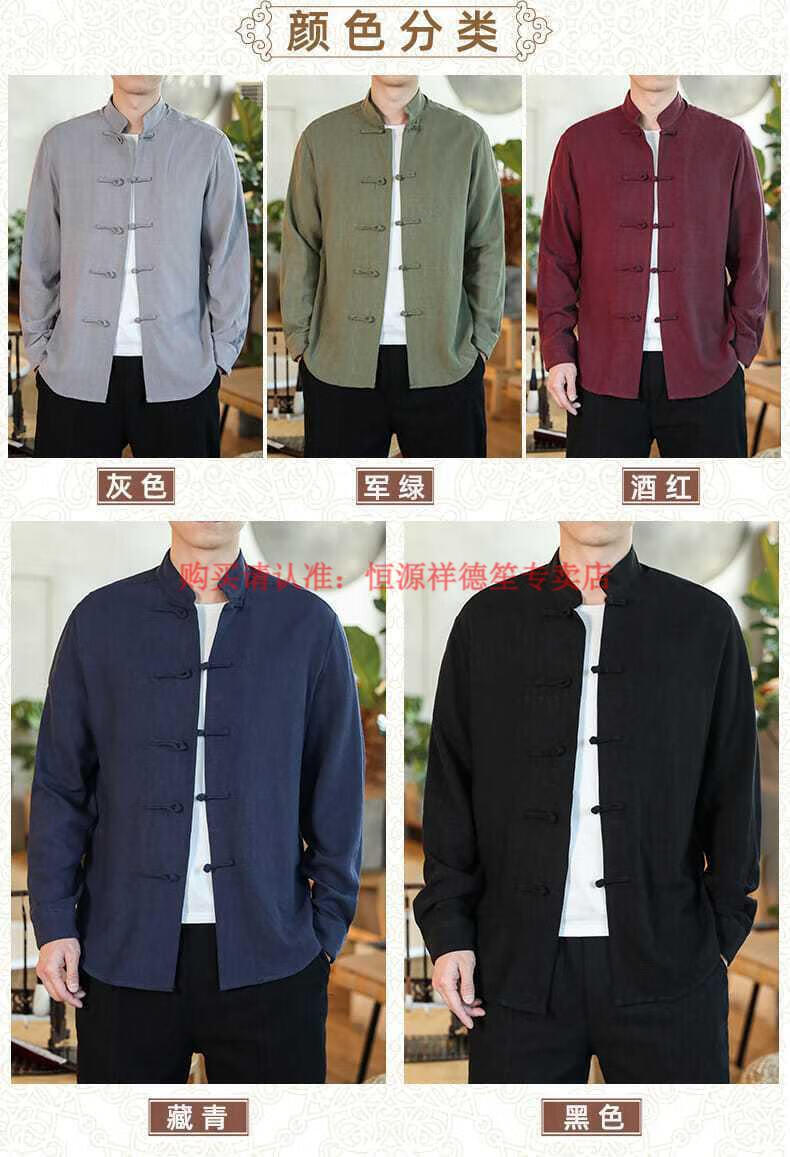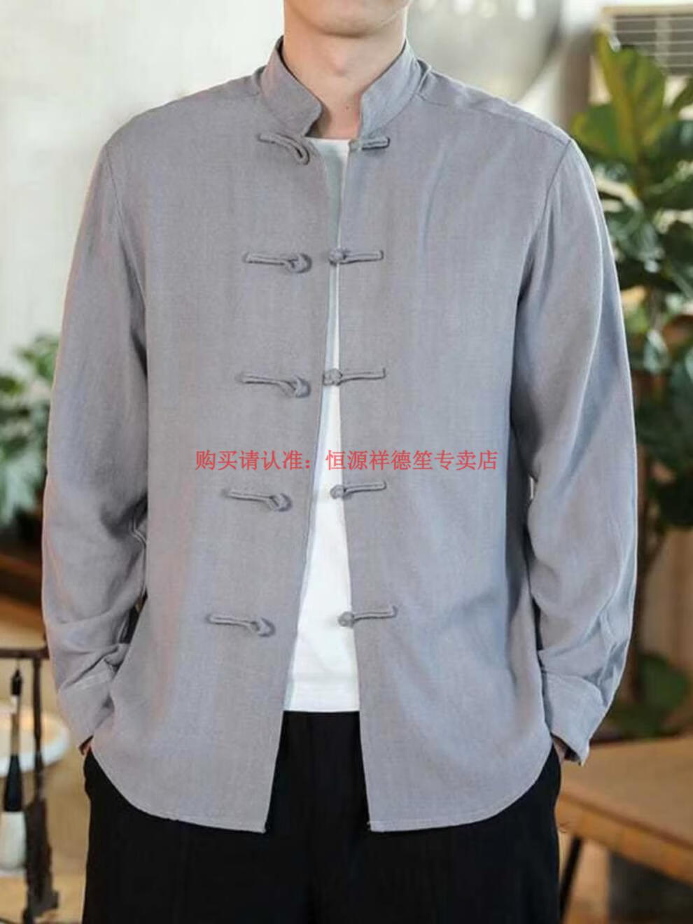 Hengyuanxiang 2024 Chinese Autumn Button Tang Suit Shirt Retro Casual Large Size Layman Suit Long Sleeve Chinese Style Men's Clothing Versatile Cotton and Linen - Navy Blue 3XL 140-155Jin Jin is equal to 0.5 kg
