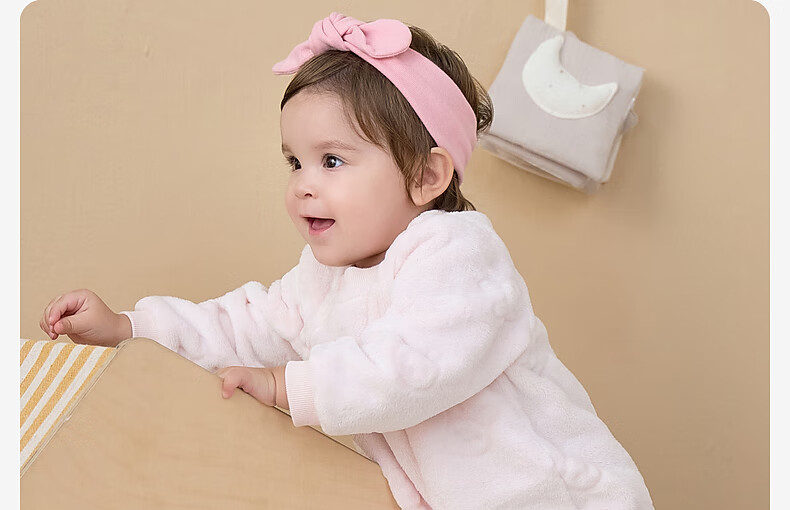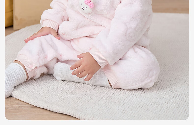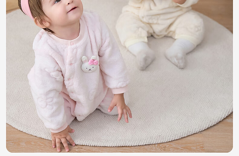 DAVE&BELLA winter new coral velvet baby jumpsuit newborn clothes children's rompers baby pajamas and robes pink ready in stock 80cm (recommended height 73-80cm)