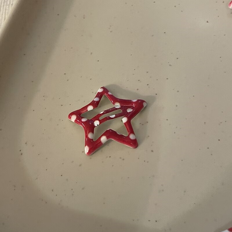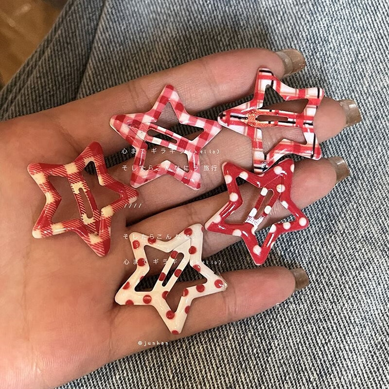 Ziggy Rabbit Strawberry Frappuccino Dopamine Star Hair Clip Women's Plaid Cute Side Bangs Broken Hair Clip Headdress White Background Red Plaid 3 Pieces