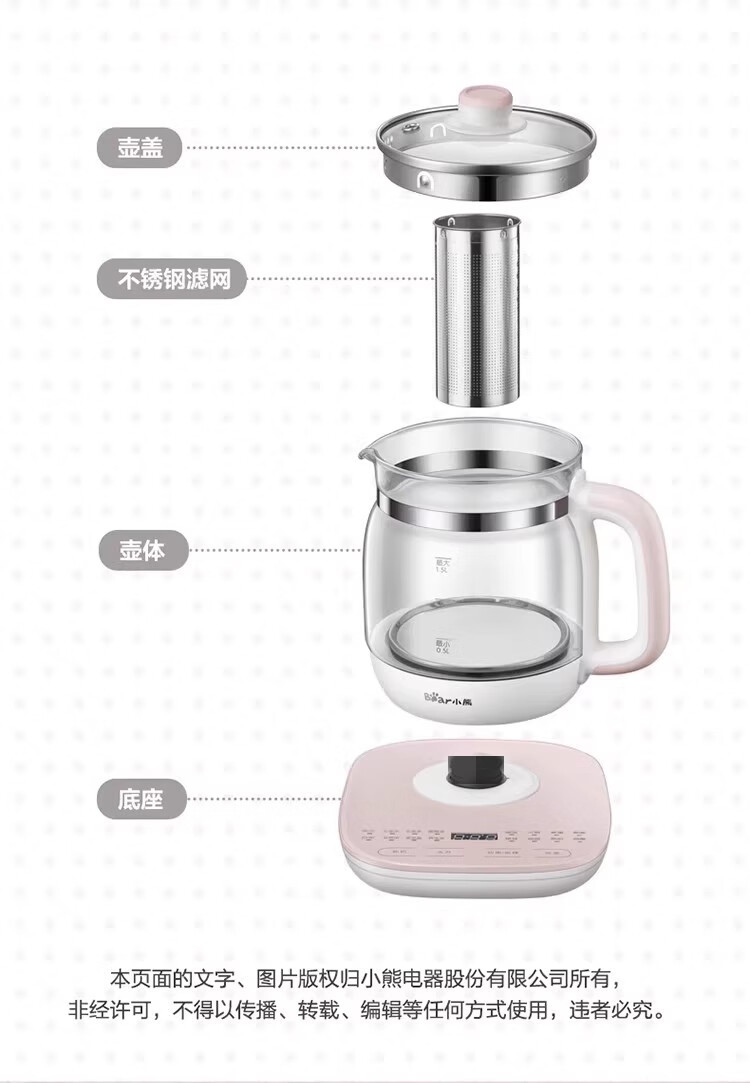 Bear YSH-A15Z8 health kettle electric kettle multi-function teapot glass panel decoction kettle 1.5L YSH-A15Z8+ 1.5L + filter