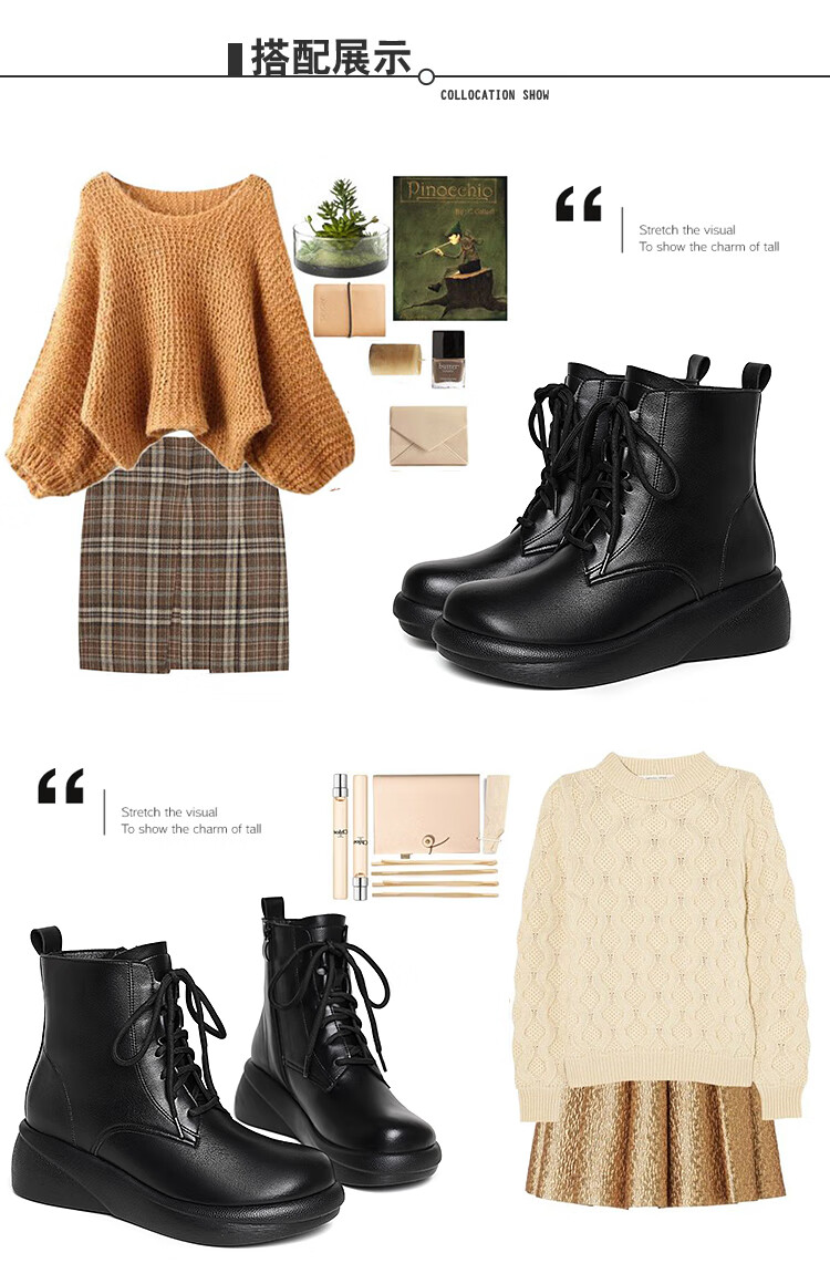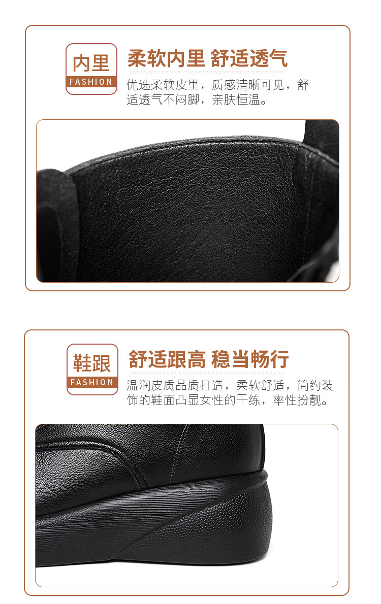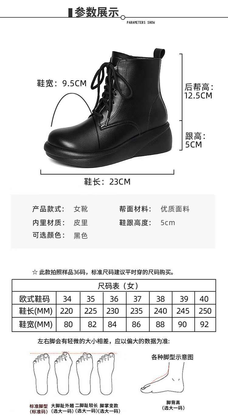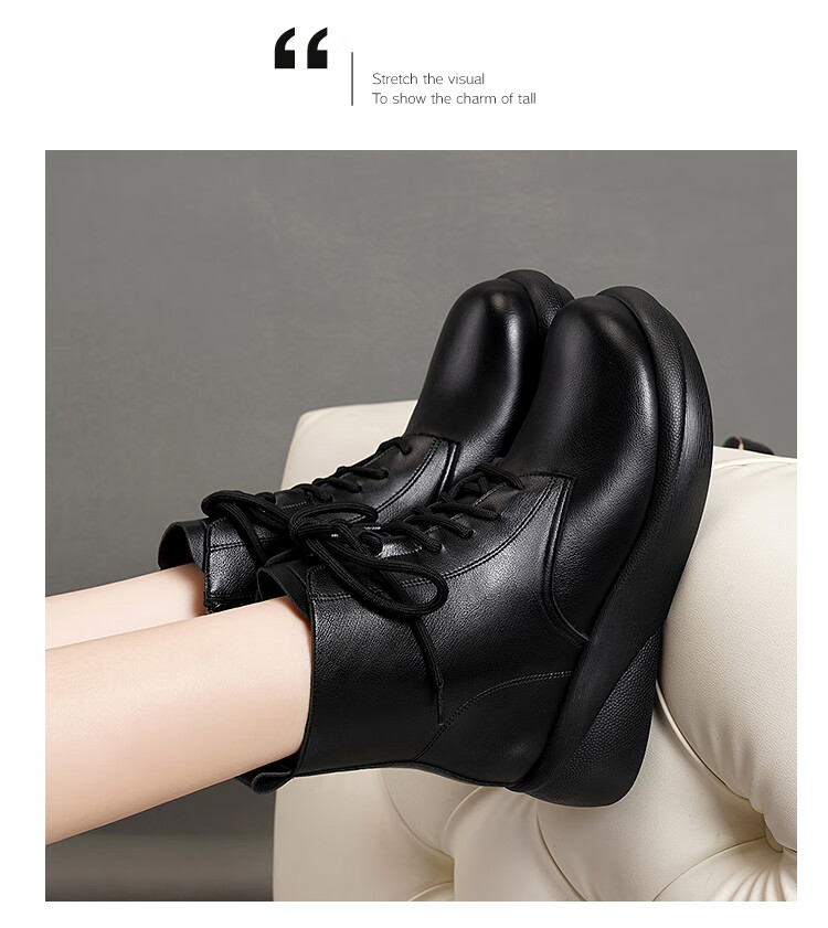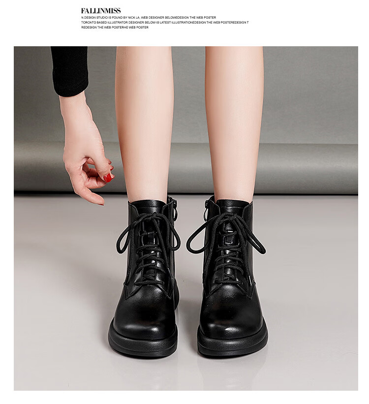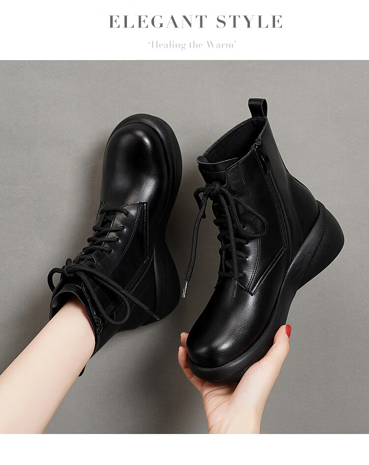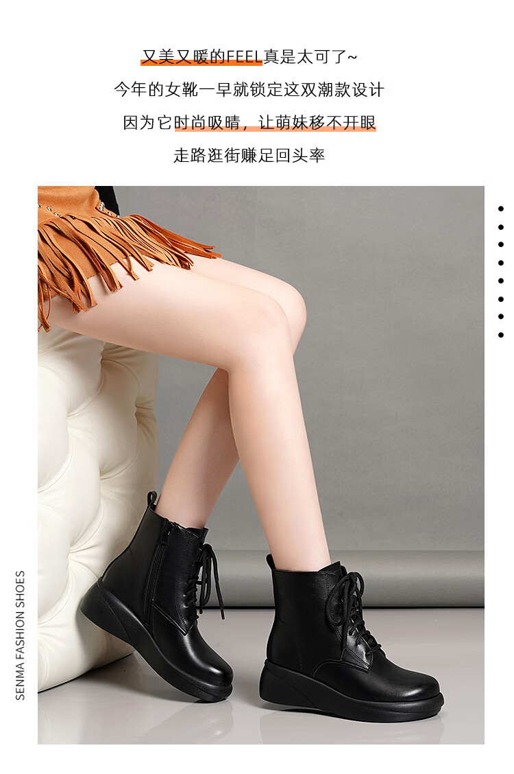 Woodpecker genuine leather women's shoes 2025 winter new Martin boots thick-soled wedge-heeled short boots flat-soled high-heeled single boots women's boots black warm velvet lining 38 standard size