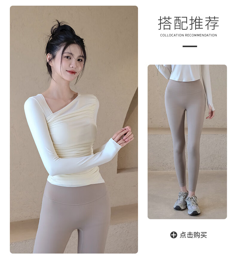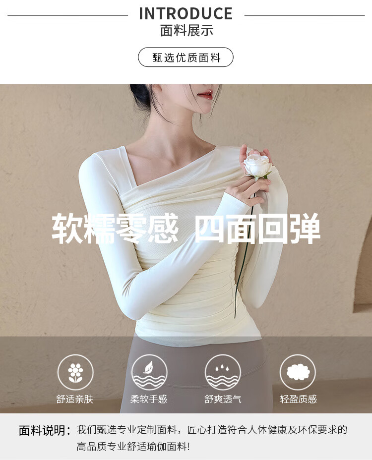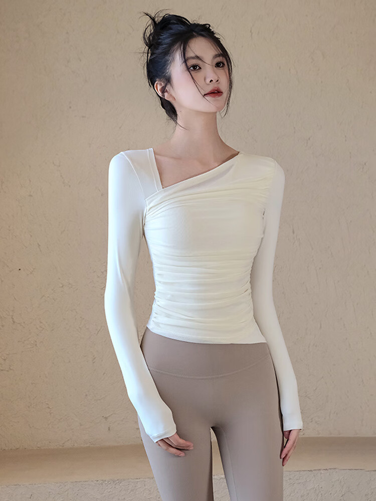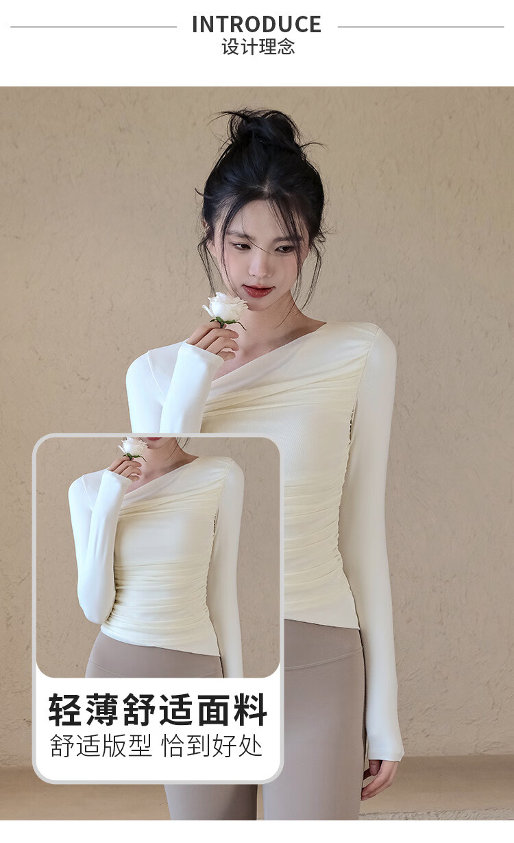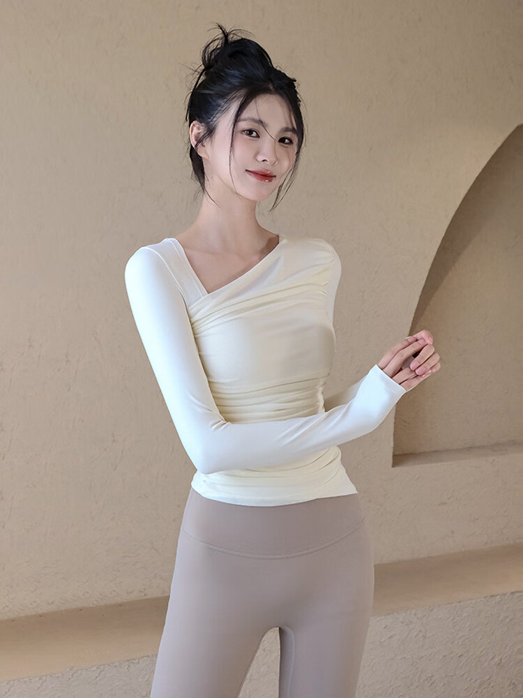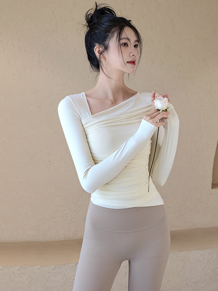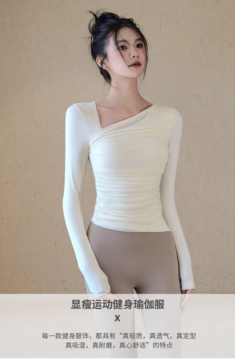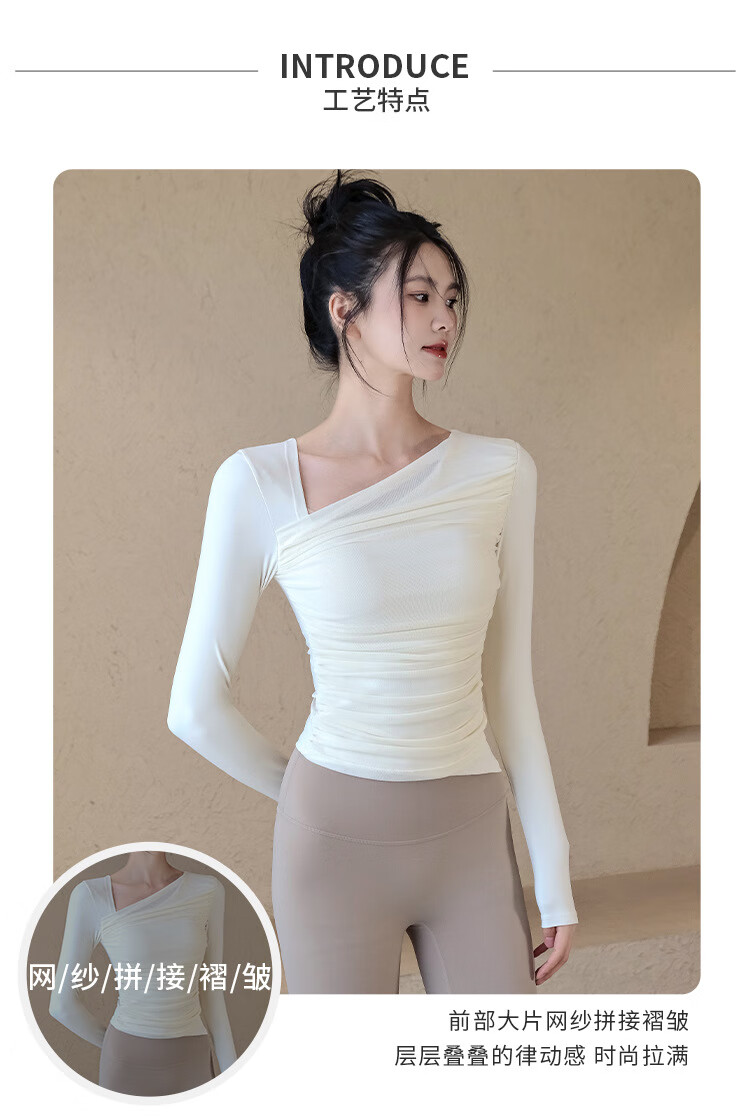 LULUUVTTOH Yoga Wear Women's Autumn and Winter Sports Tops with Breast Pads Slim Fit Long Sleeve Pilates Training Fitness Wear for Women Light Ivory Fixed Cup M