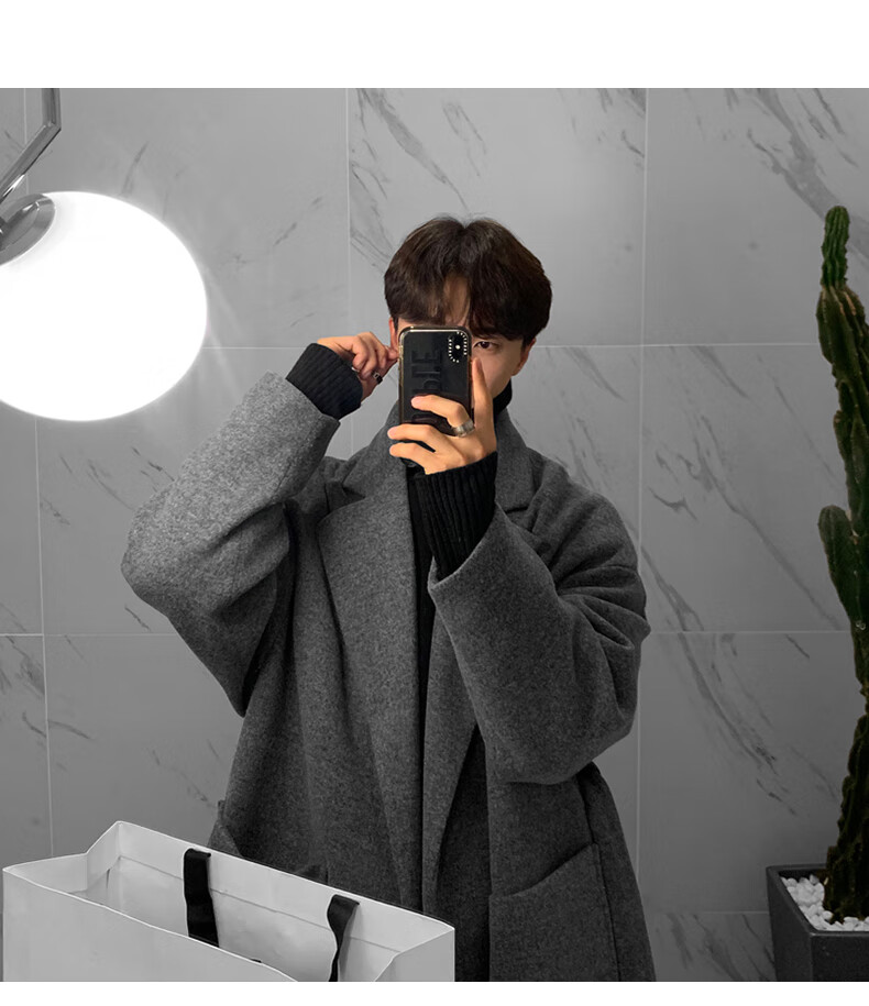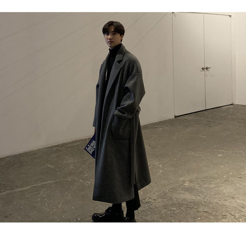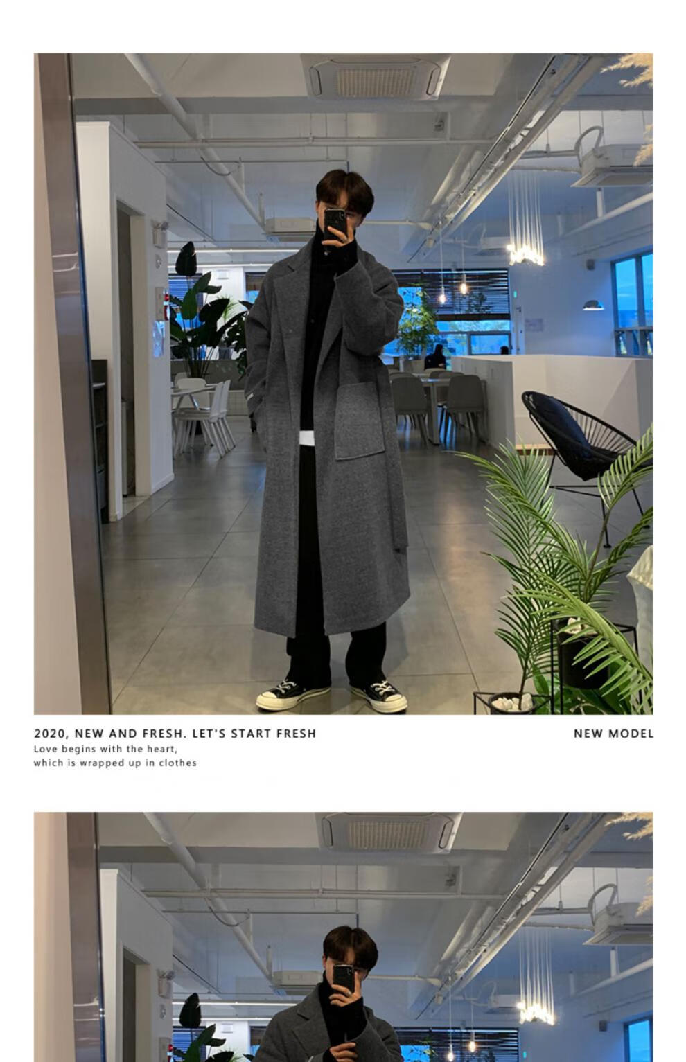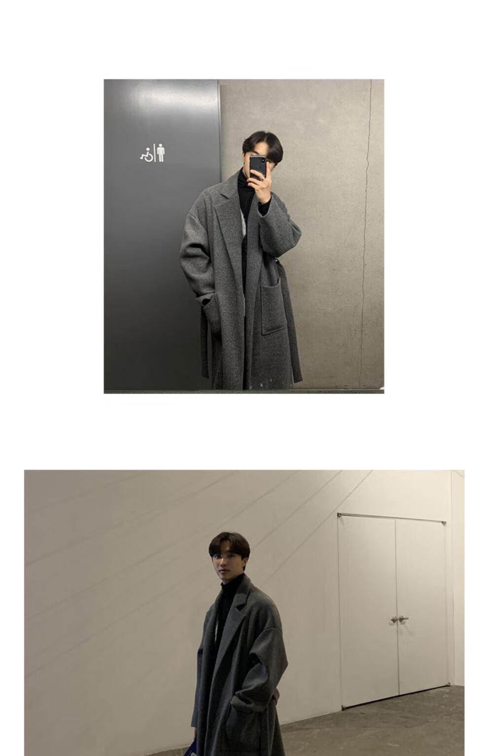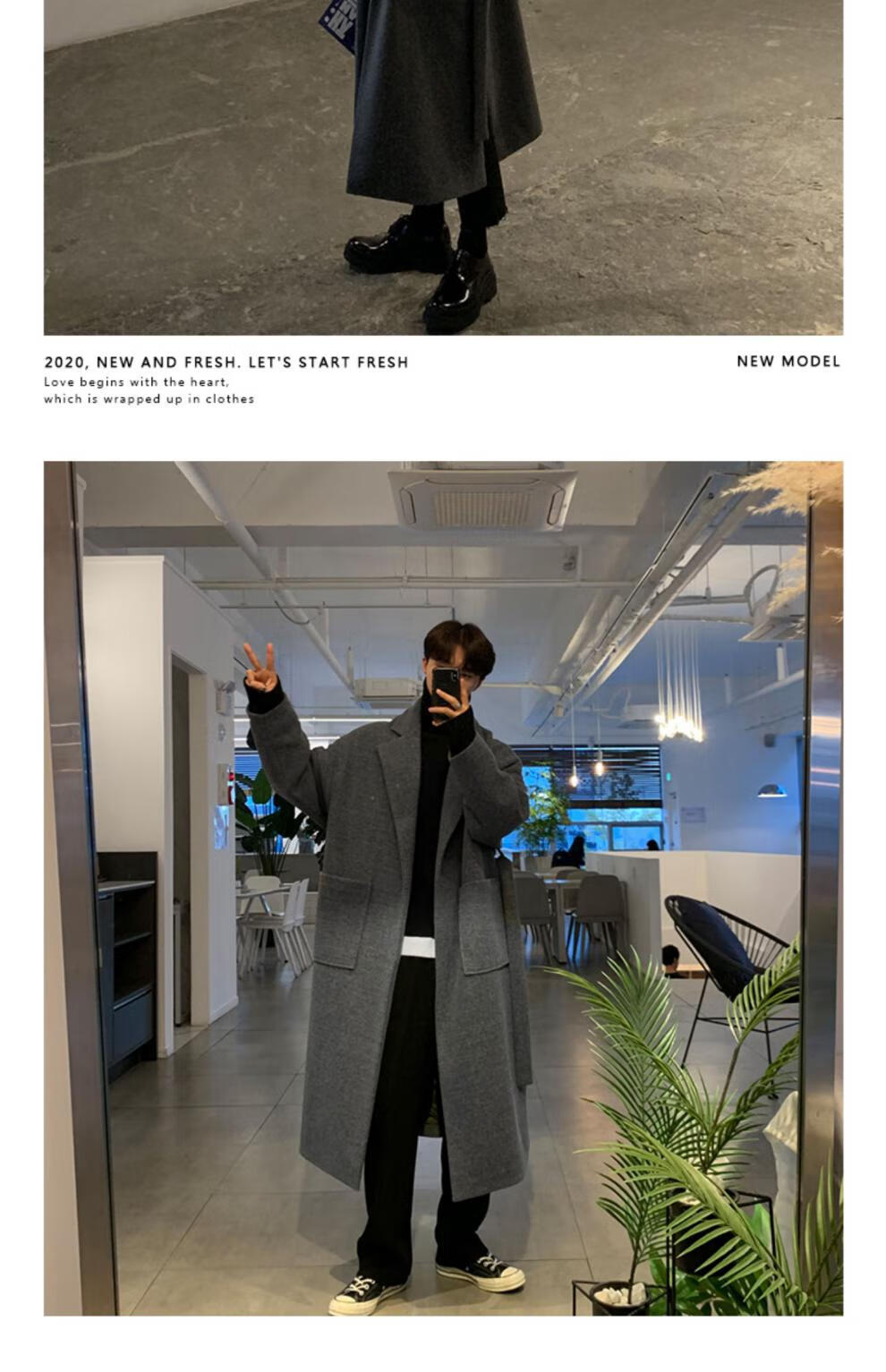 JEEP SPIRIT winter woolen coat men's thickened windbreaker mid-length knee-length Korean style double-sided cashmere woolen coat trend suit gray coat/sweater/suit pants S