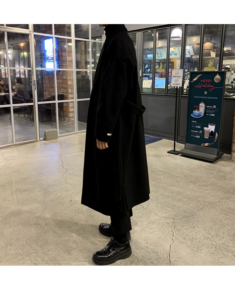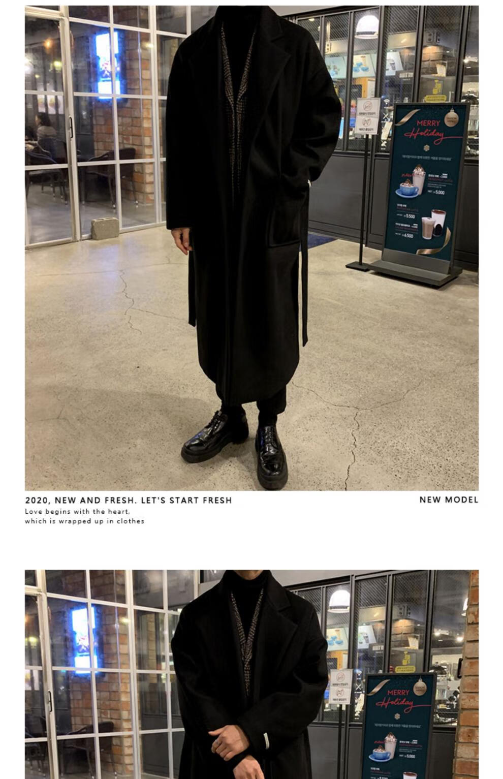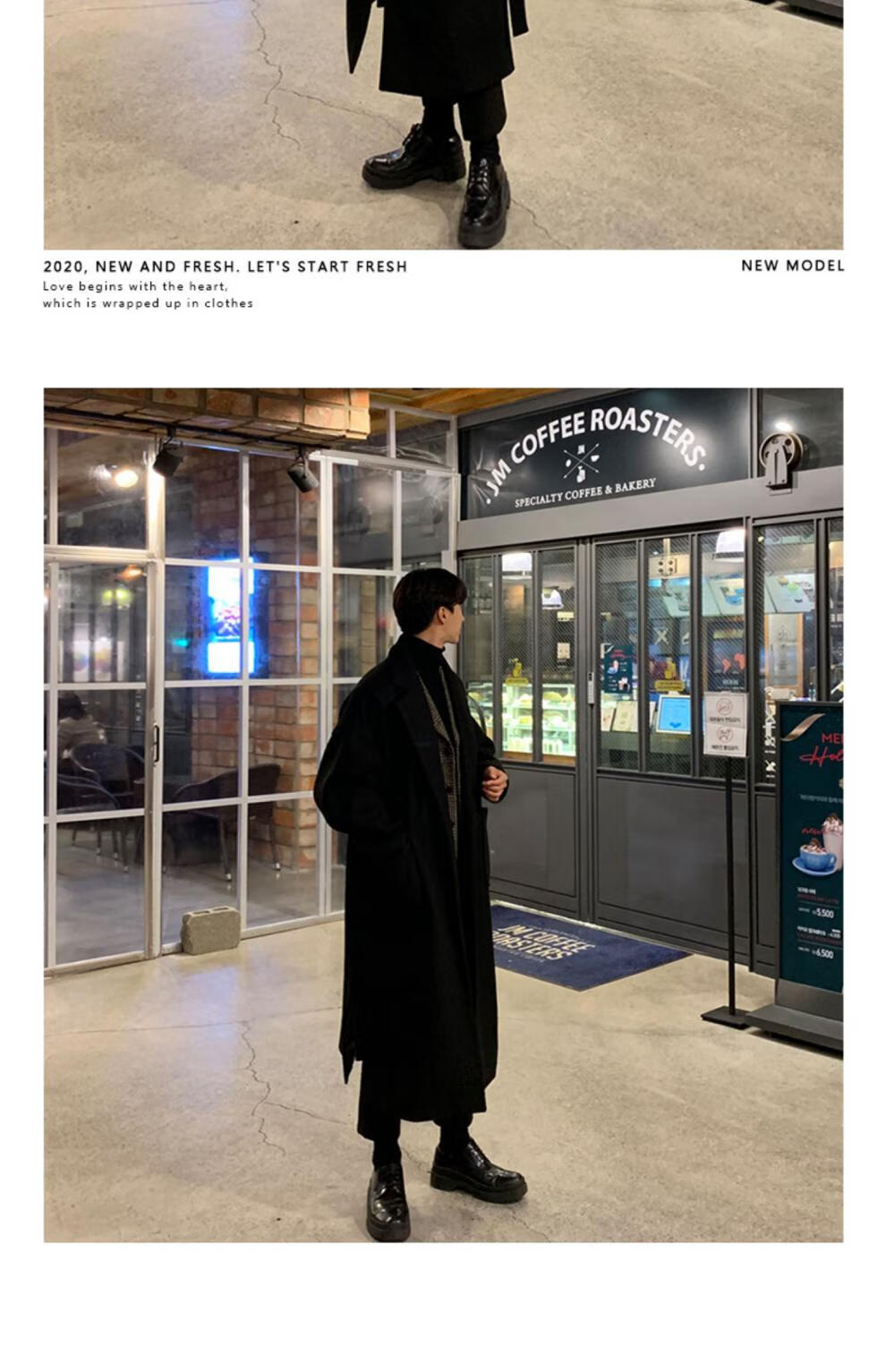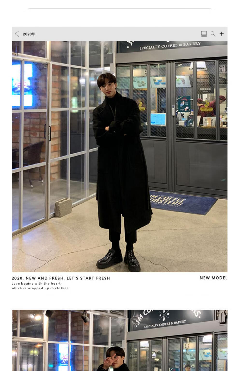 JEEP SPIRIT winter woolen coat men's thickened windbreaker mid-length knee-length Korean style double-sided cashmere woolen coat trend suit gray coat/sweater/suit pants S