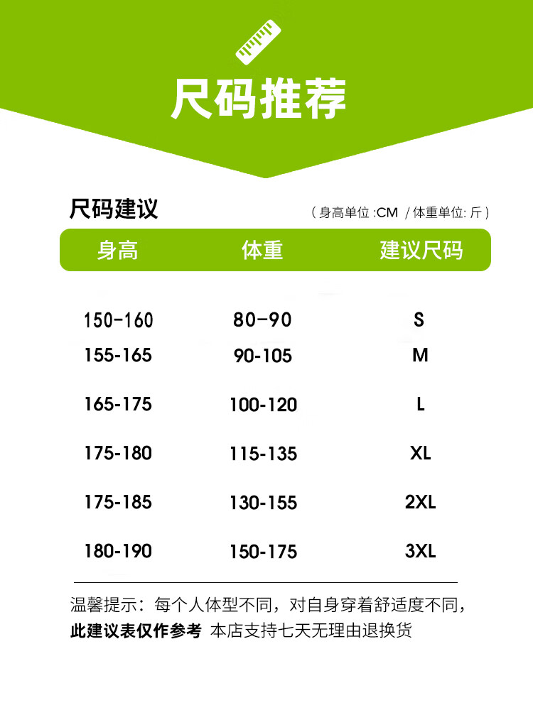 China (cm) 165 / 88-90 170 / 96-98 175 / 108-110 180 / 118-122 185 / 126-130