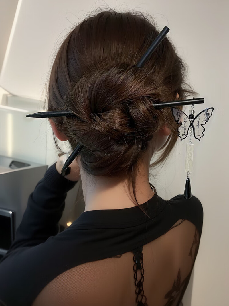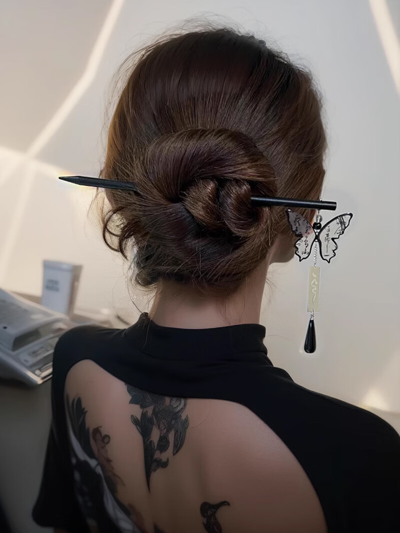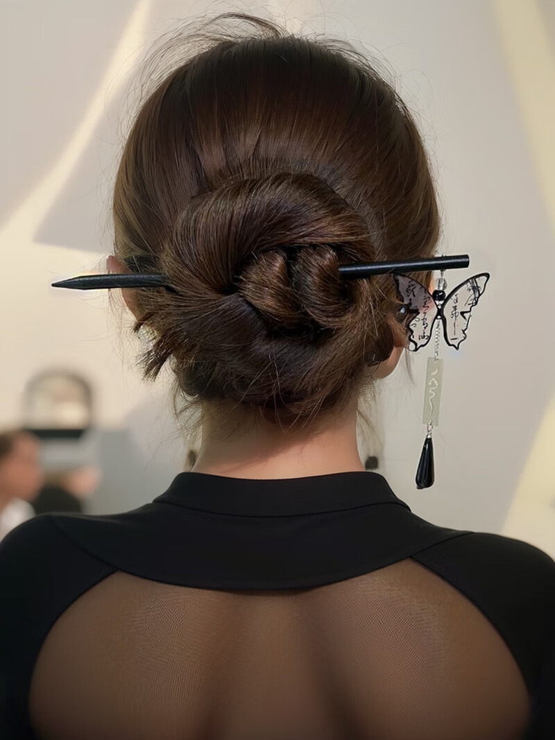 Butterfly tassel hairpin, new Chinese style wooden hairpin, ancient style hairpin, Hanfu headdress, simple and high-end hairpin cheongsam, safe buckle