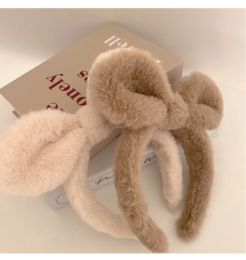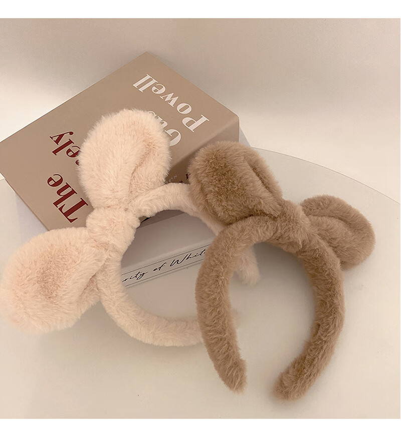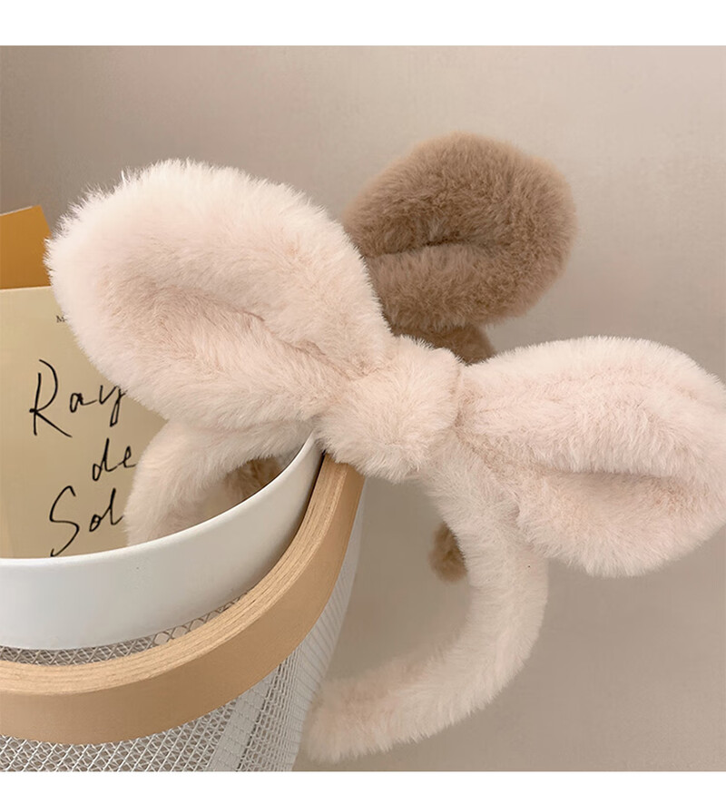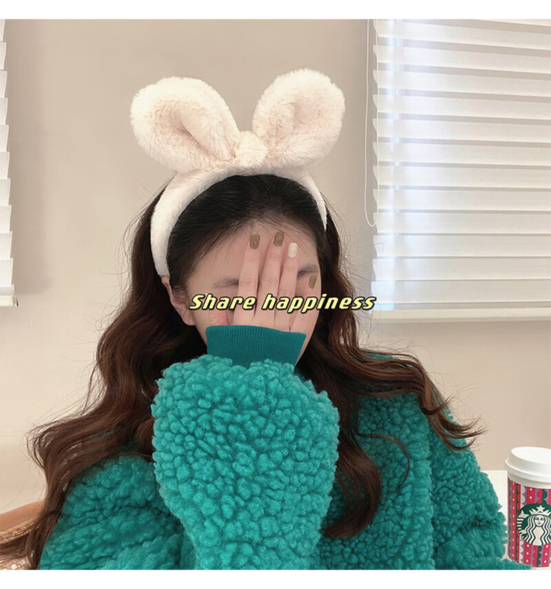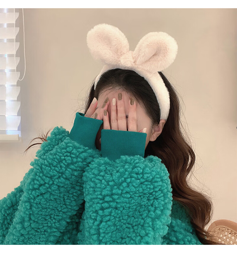Plush bunny ear headband for women, face wash headband, Internet celebrity hairpin, headband, high skull, cute and playful hair accessory, off-white