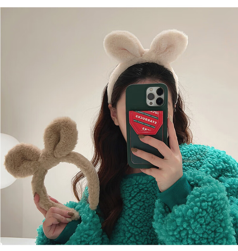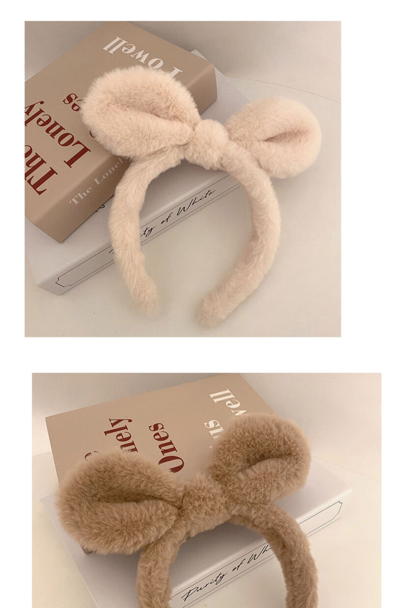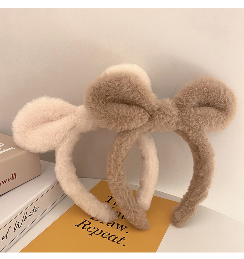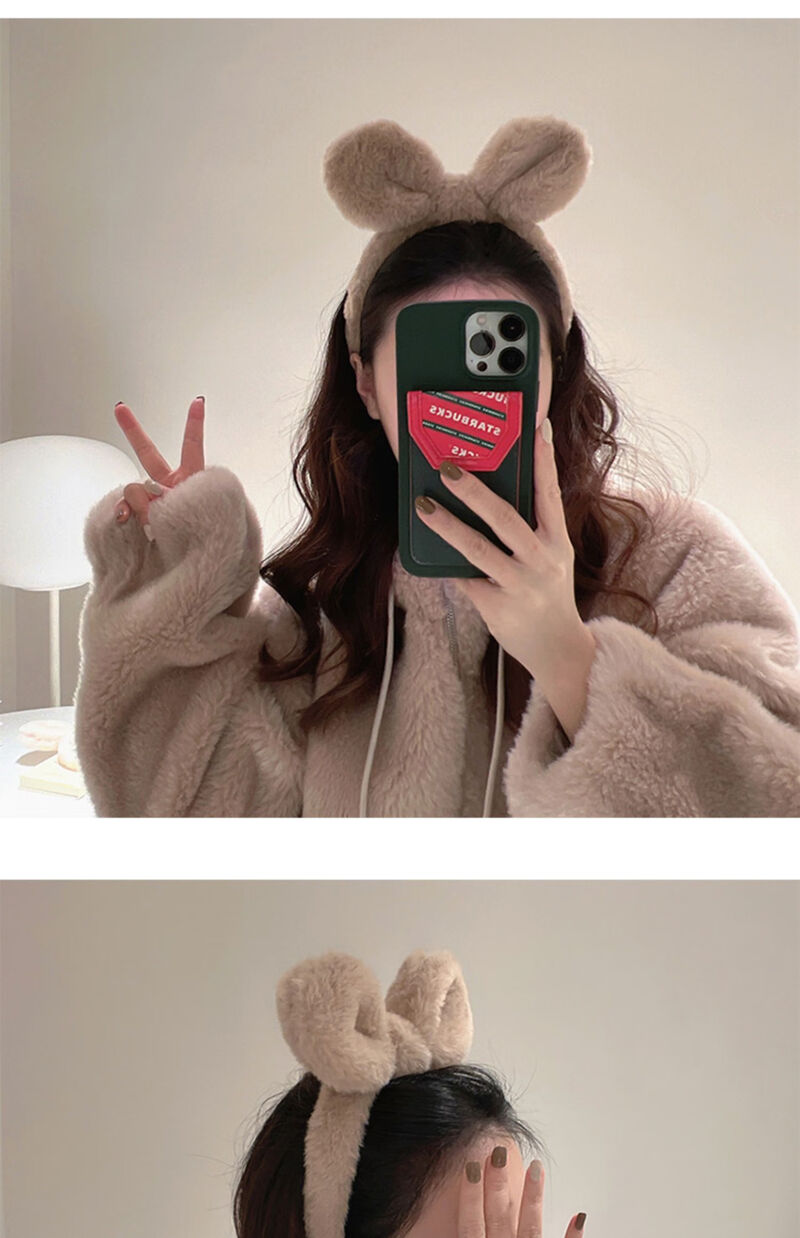 Plush bunny ear headband for women, face wash headband, Internet celebrity hairpin, headband, high skull, cute and playful hair accessory, off-white